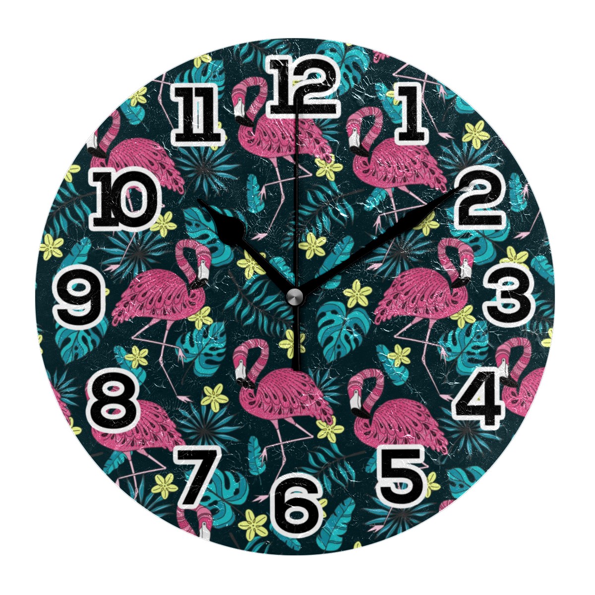 clock Flamingo Non Ticking Silent Wall Clocks Art for Living Room Kitchen Bedroom Office School(9.5 Inch,Arabic Numerals)