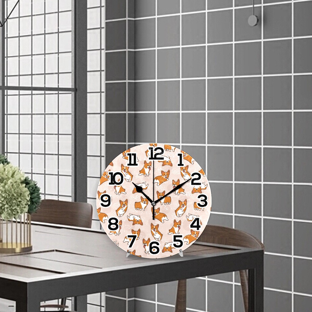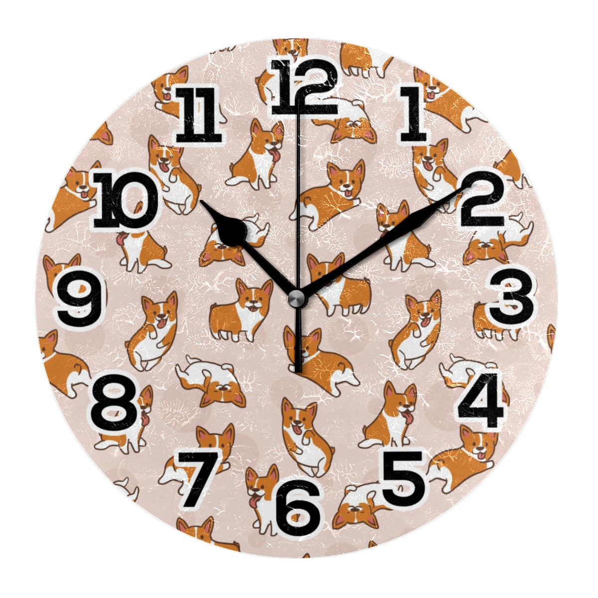 clock Cute Corgi Non Ticking Silent Wall Clocks Art for Living Room Kitchen Bedroom Office School(9.5 Inch,Arabic Numerals)