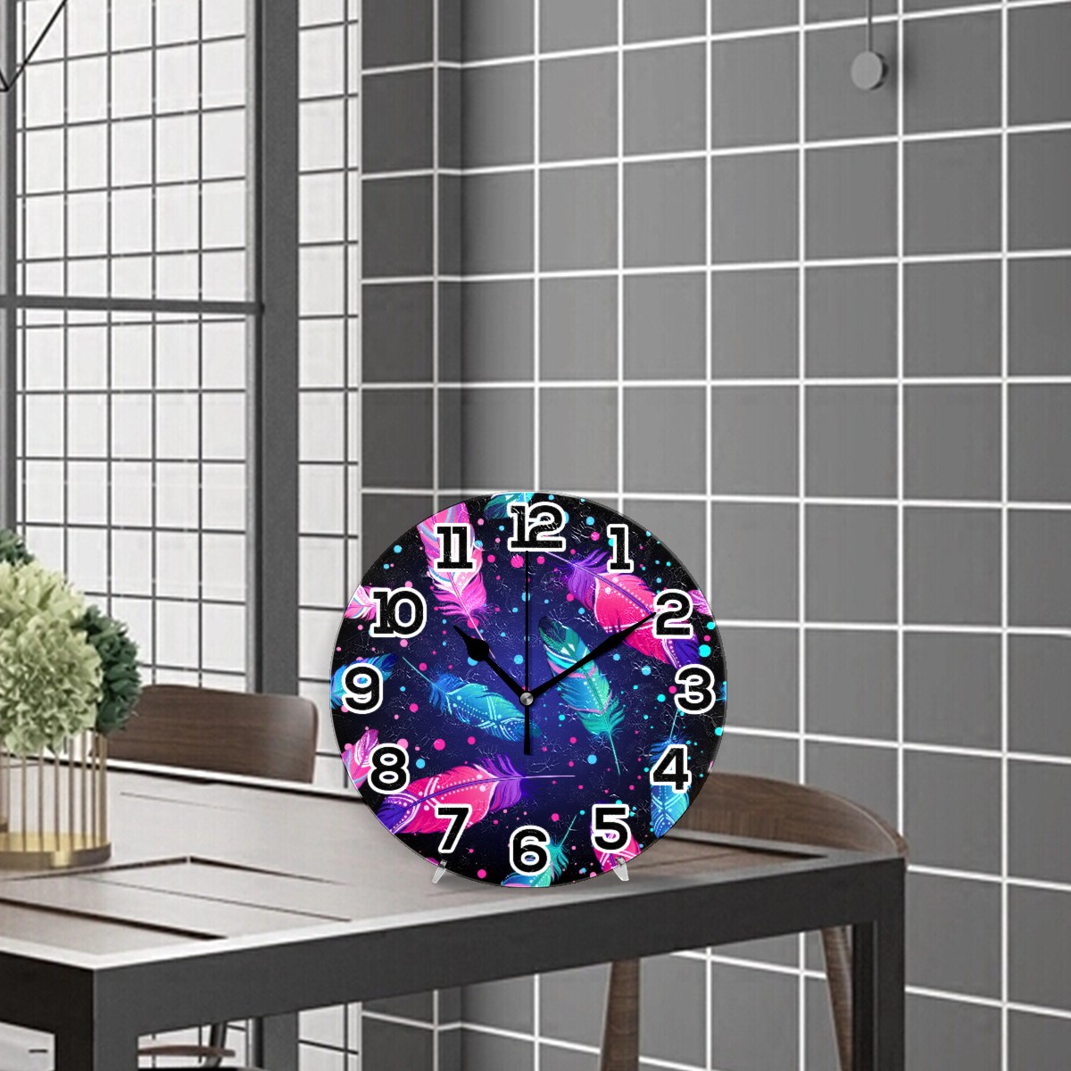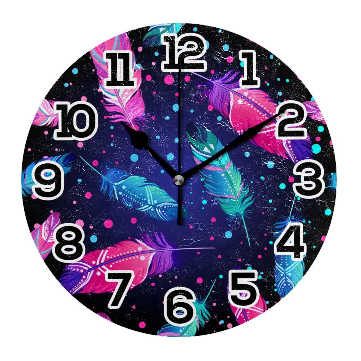 clock Colourful Feather Non Ticking Silent Wall Clocks Art for Living Room Kitchen Bedroom Office School(9.5 Inch,Arabic Numerals)