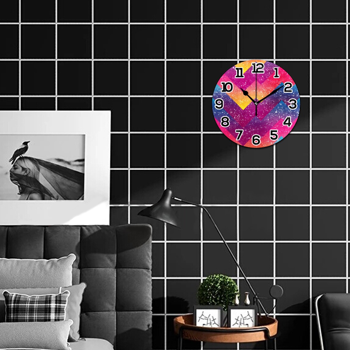 clock Colorful Broken Line Non Ticking Silent Wall Clocks Art for Living Room Kitchen Bedroom Office School(9.5 Inch,Arabic Numerals)