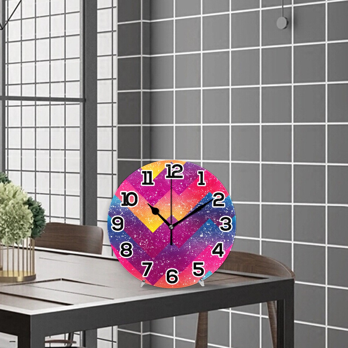 <p>Size: 9.8x0.2 inch (25x0.5 cm)</p> <p></p> <p></p> <p>Material: Acrylic, oil Painting Dial, no frame</p> <p></p> <p></p> <p>Design: Silent Non-ticking round wall clock(1 "AA" battery is required, not included)The vivid pattern is printed by proven printing technology which will keep pattern from fading.&nbsp;a good battery can be used for more than one year, energy saved;&nbsp;Easy to stand on the desk and with hook to hanging on the wall.</p> <p></p> <p></p> <p>Applicable Scene:High quality silent quartz movement, keeps accurate time. It is perfect for bedroom, living room, study room, bathroom, coffee shop, office, conference room farm house and even suitable for reading.</p> <p></p> <p></p> <p>Best Gift:A perfect choice for&nbsp;christmas&nbsp;gift,children's day gift,bridal gift, anniversary gift, mothers day gift,fathers day gift, birthday present, holiday gift etc.</p>