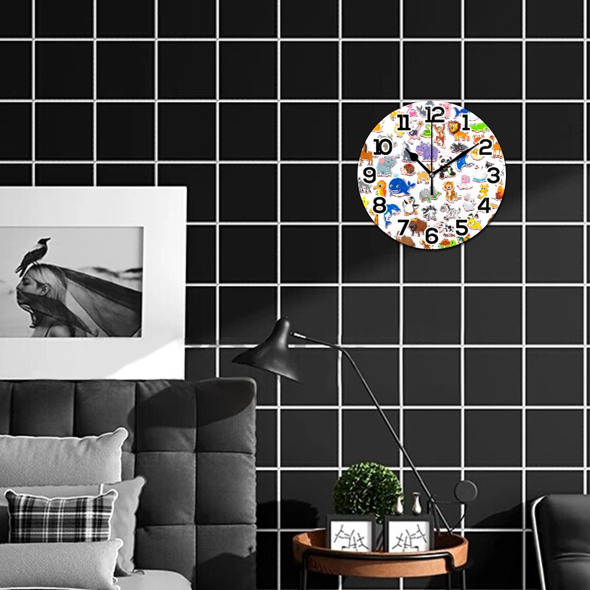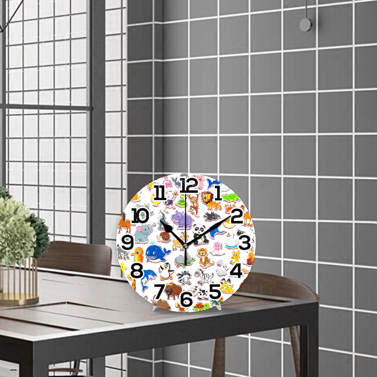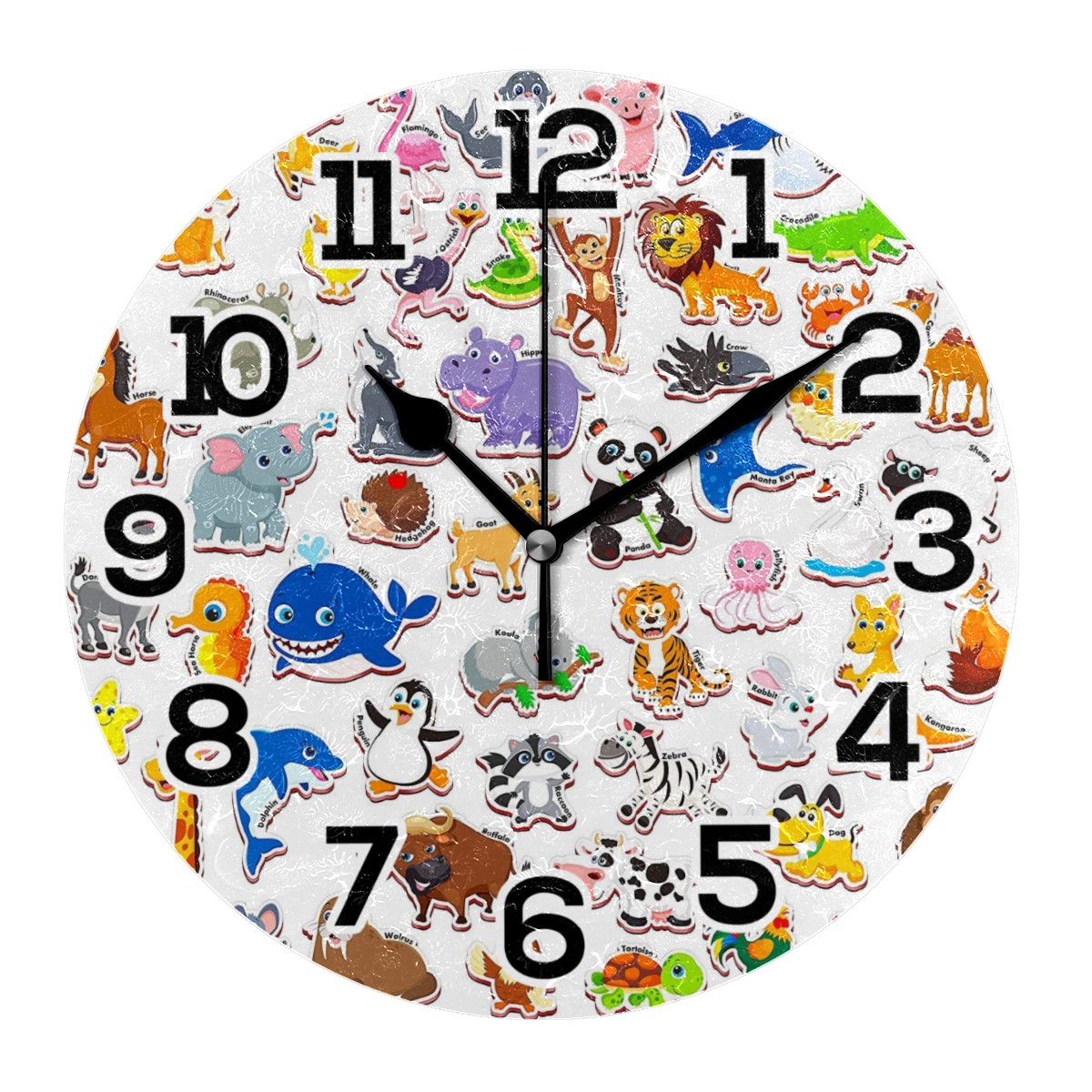 clock Cartoon Animal Pattern Non Ticking Silent Wall Clocks Art for Living Room Kitchen Bedroom Office School(9.5 Inch,Arabic Numerals)