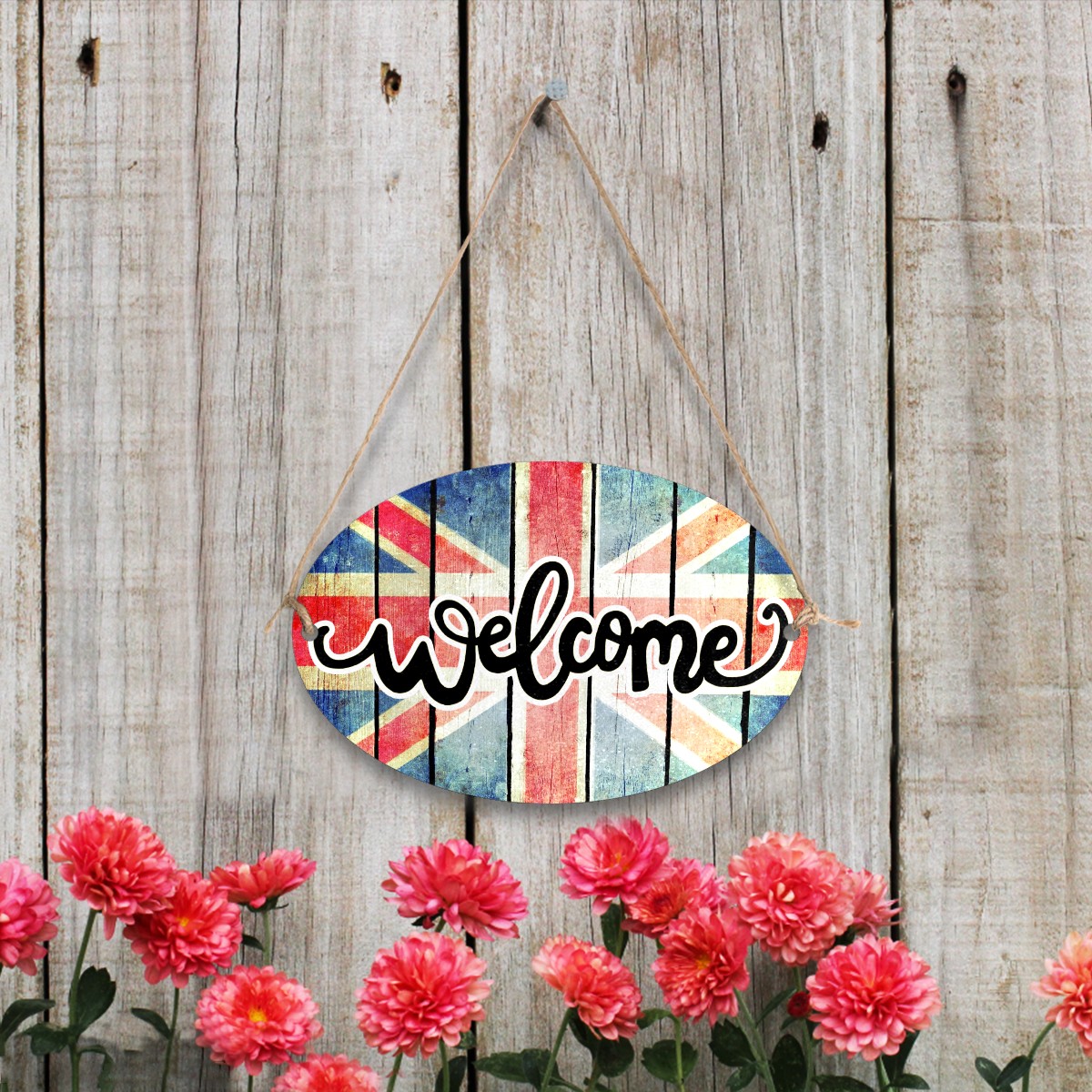 <b>FCZ Customized Welcome Sign Hanging Pendant Front Door Decor Door Hanging Sign Decorative Plaque Cafe Shop<br> Material:Environmental-friendly Fiber Wood PVC.Waterproof.Easy to clean,durable.<br> Print:One side Printed.We support customized picture,you can send us the picture or the sign on the board,we can produce it for you,customize your own welcome sign.The word "WELCOME"can be removed if you don't want it,just email us.<br> Size:12"(L) x 8"(W) x 0.2"(H).Rope Length:31.5in(80cm).Weight:170g.Porper welcome sign size for your home door,office,shop and garden.<br> Design:Two holes on the plaque for easy installation,includes two attached strong ropes to hang on your entryway<br> Perfect for home,indoor.outdoor,office,yard,garden,cafe shop,farmhouse,kitchen or any place.<br> Occasions:Suit for festival,Halloween,Christmas,Easter,Valentines,birthday party,anniversary party,wedding,New Year and etc.</b>