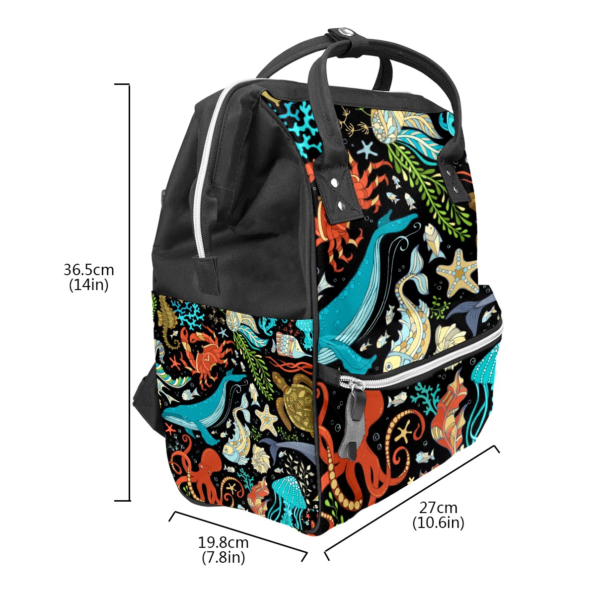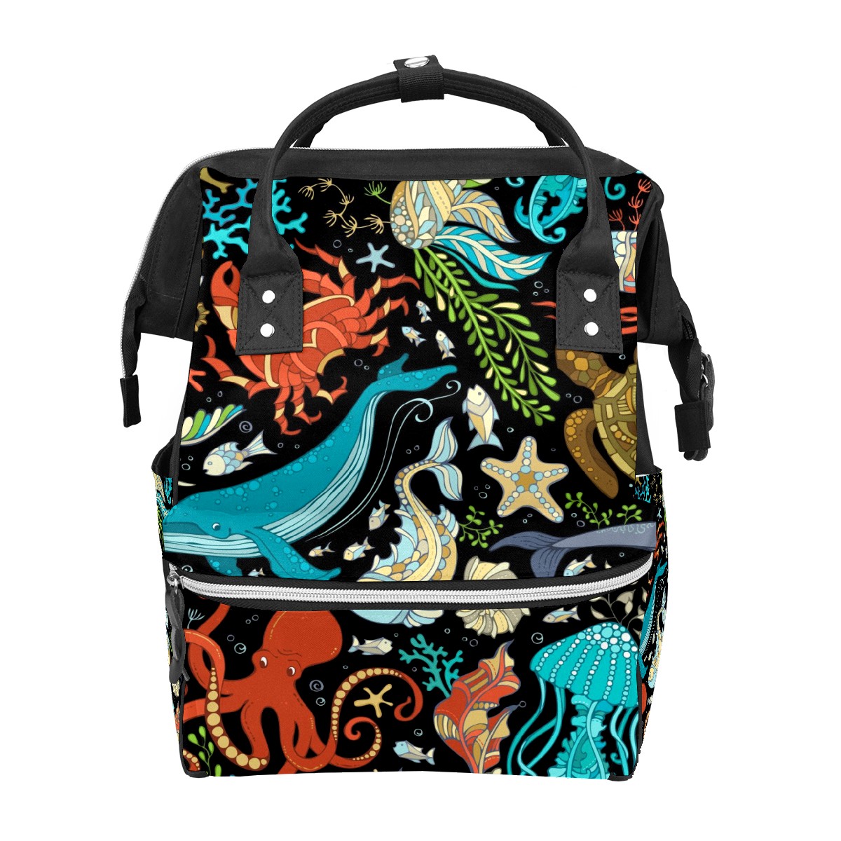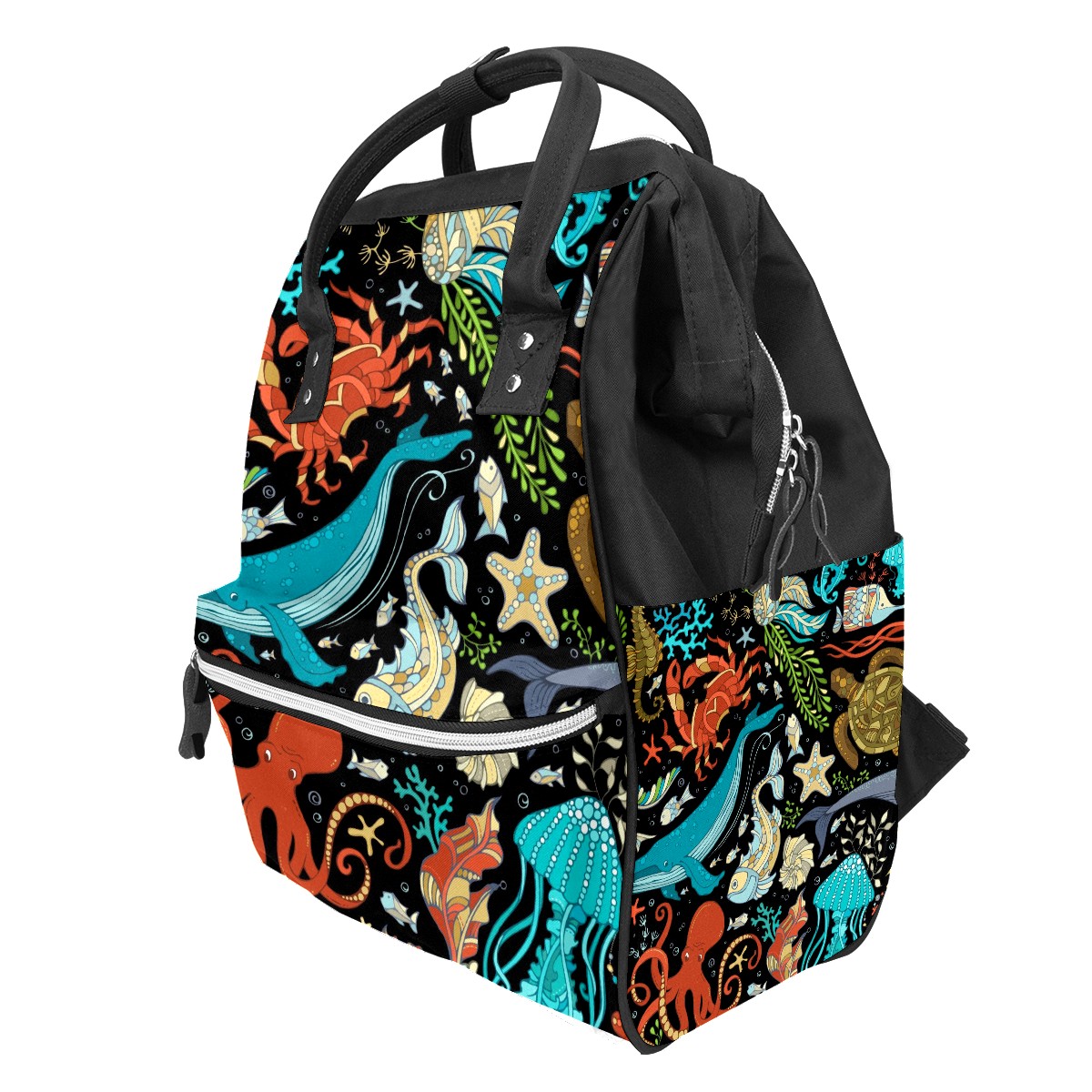 Large Capacity Diaper Bag Backpack Octopus Dolphin Jellyfish Unisex Multifunction Travel Backpack for Mom Dad Women and Girls