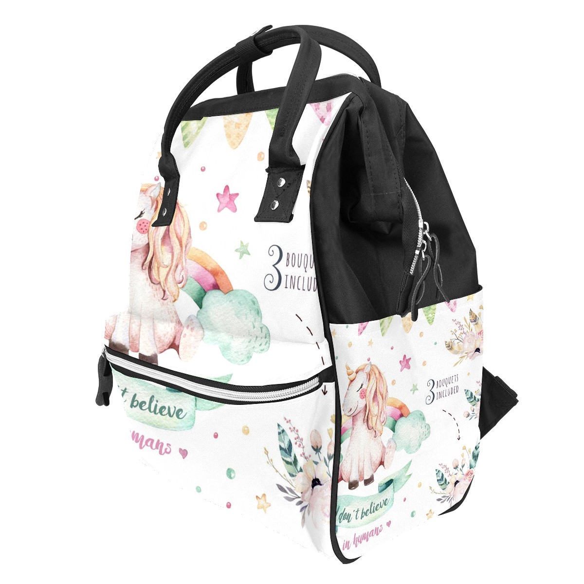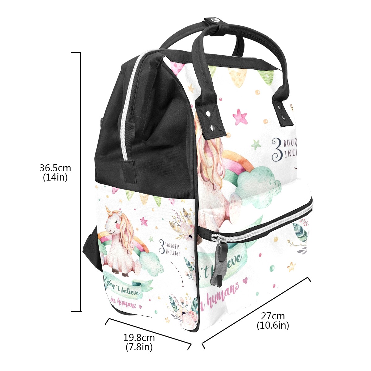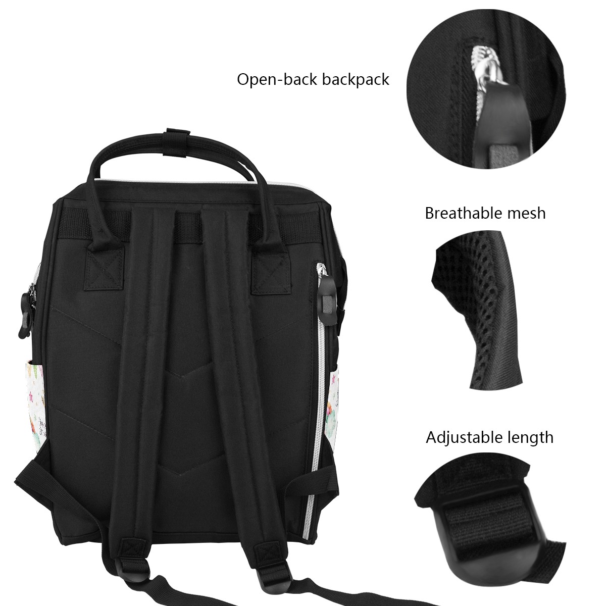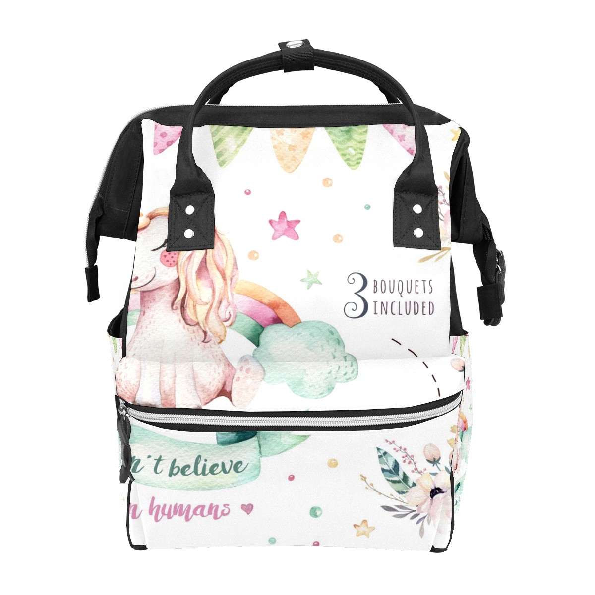 Large Capacity Diaper Bag Backpack Unicorn And Flora Unisex Multifunction Travel Backpack for Mom Dad Women and Girls