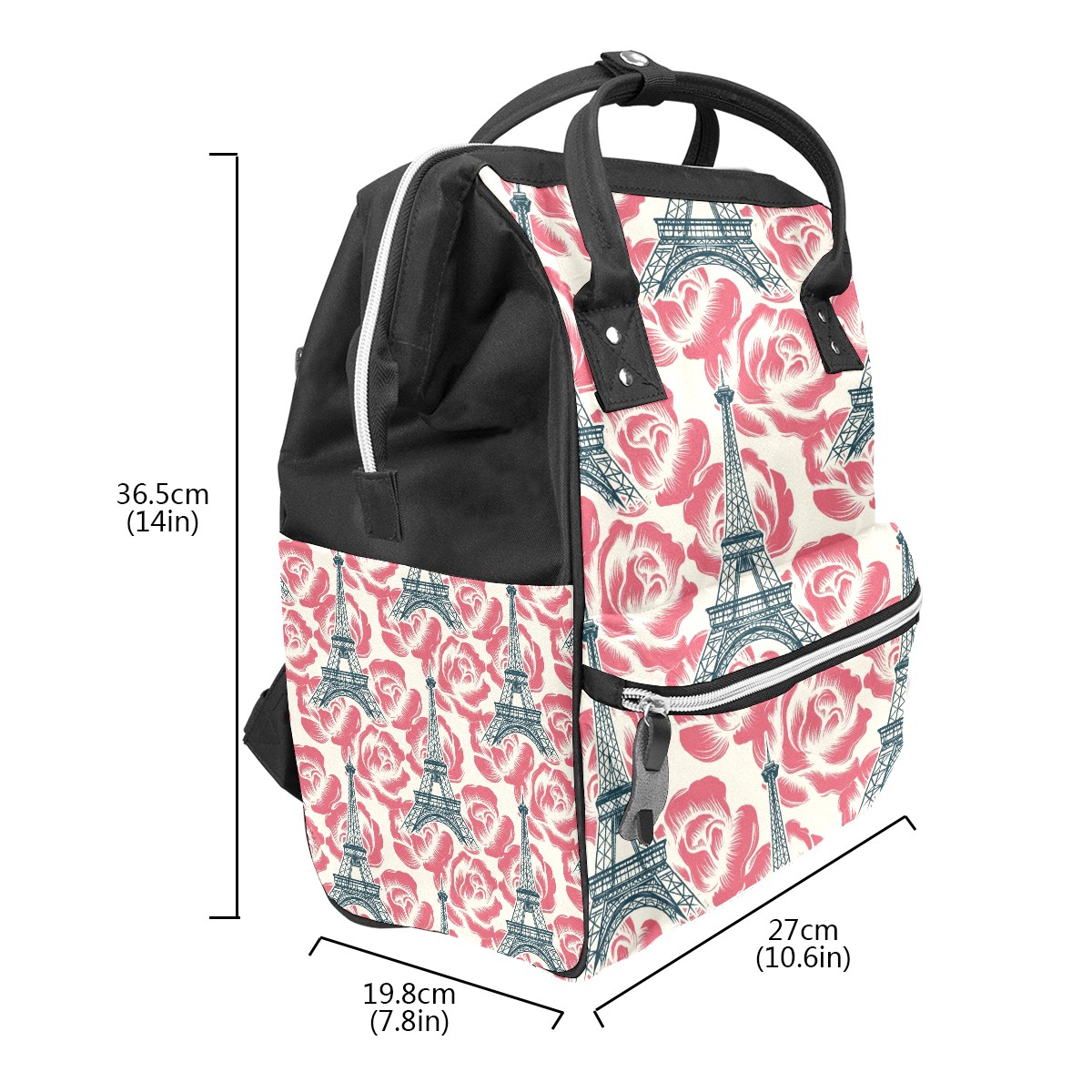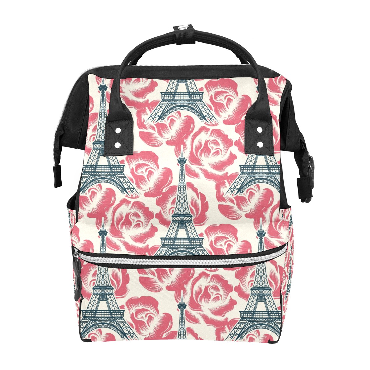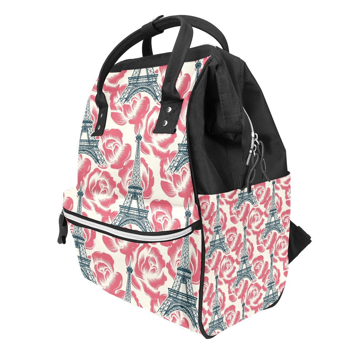 Large Capacity Diaper Bag Backpack Tower And Flower Unisex Multifunction Travel Backpack for Mom Dad Women and Girls