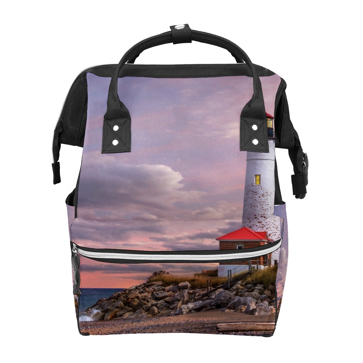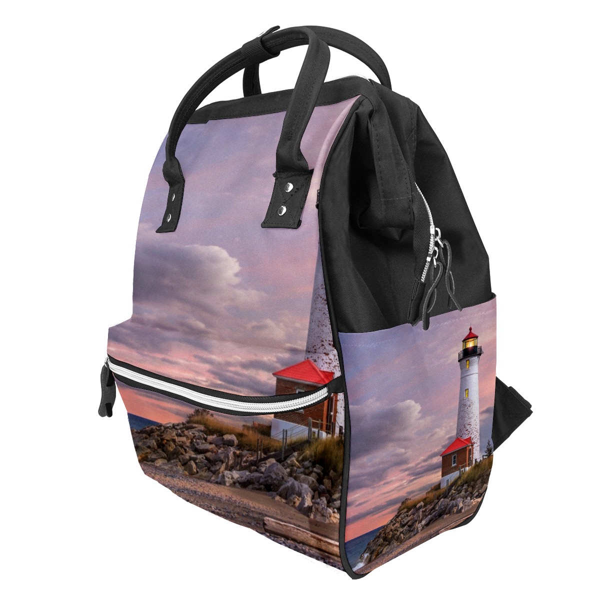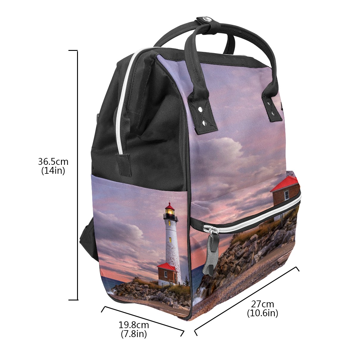 Large Capacity Diaper Bag Backpack Sunset Castle Unisex Multifunction Travel Backpack for Mom Dad Women and Girls
