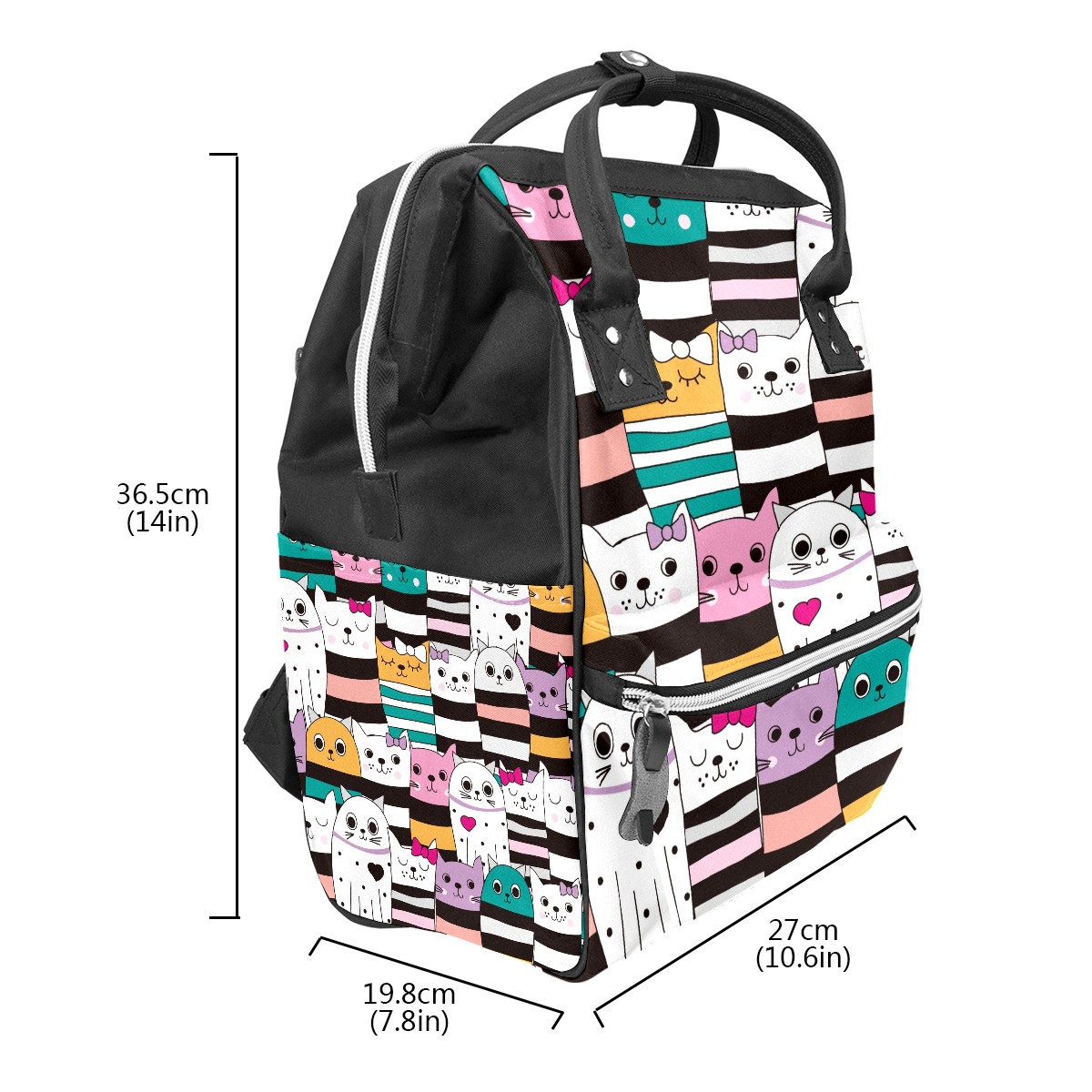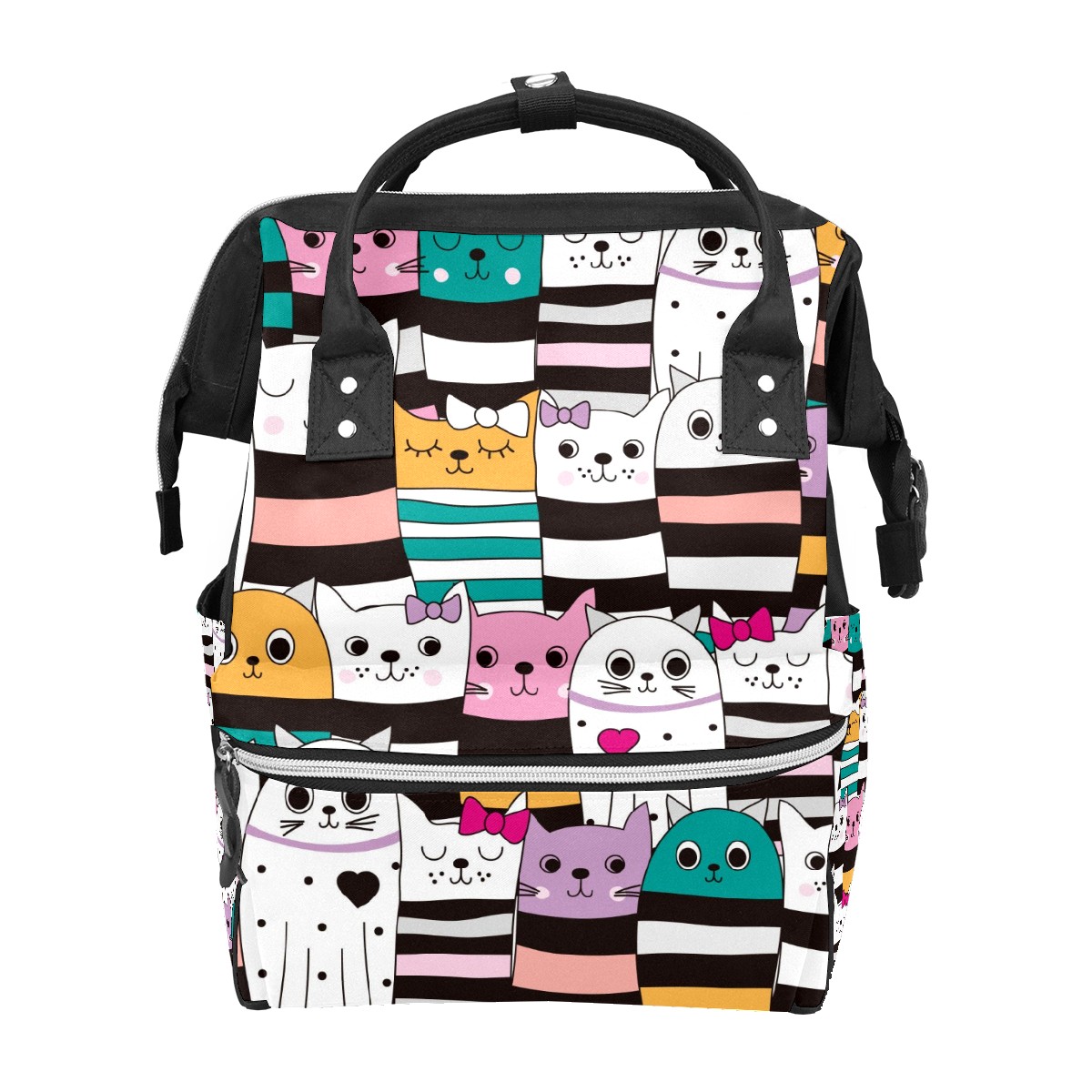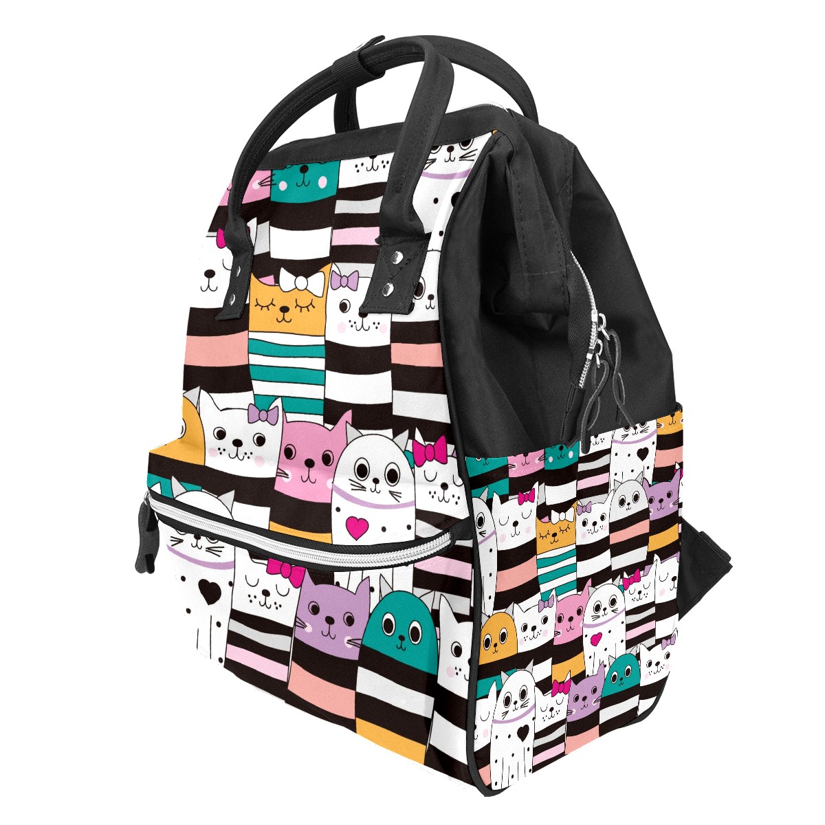 Large Capacity Diaper Bag Backpack Stripes Heart Cats Unisex Multifunction Travel Backpack for Mom Dad Women and Girls