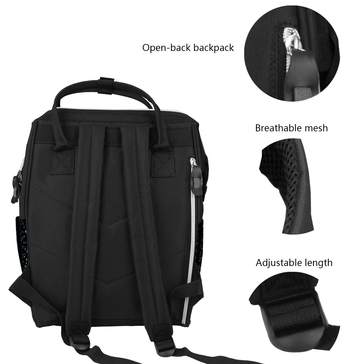 <p><b>Be a Dad or mom with style</b></p><p>With this beautiful baby changing bag backpack, you can look fashionable and carefree, safe in the knowledge that everything you need is within reach and in its rightful place.</p><p>&nbsp;</p><p><b>Large Capacity</b></p><p>Large capacity to keep everything including baby outfits, snacks, toys organized orderly.</p><p>&nbsp;</p><p><b>Stylish and Versatile</b></p><p>Not only diaper bag, it also can be used as laptop backpack, tablet bags, college student bookbag, weekend equipment, traveling &amp; hiking backpack, casual daypack.</p>
