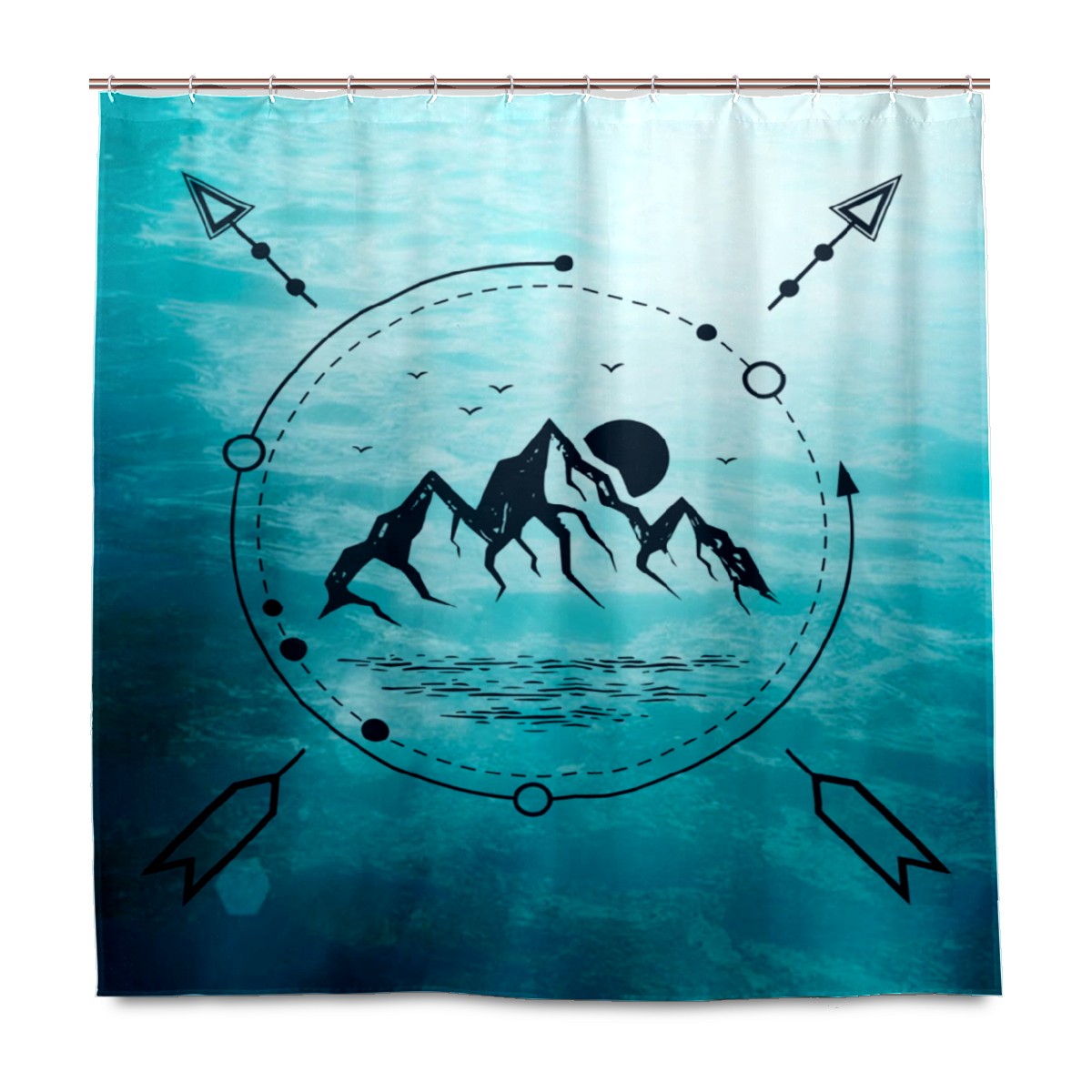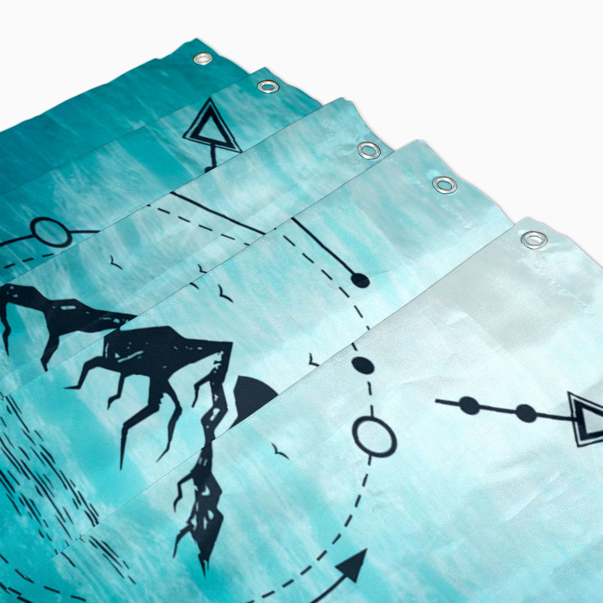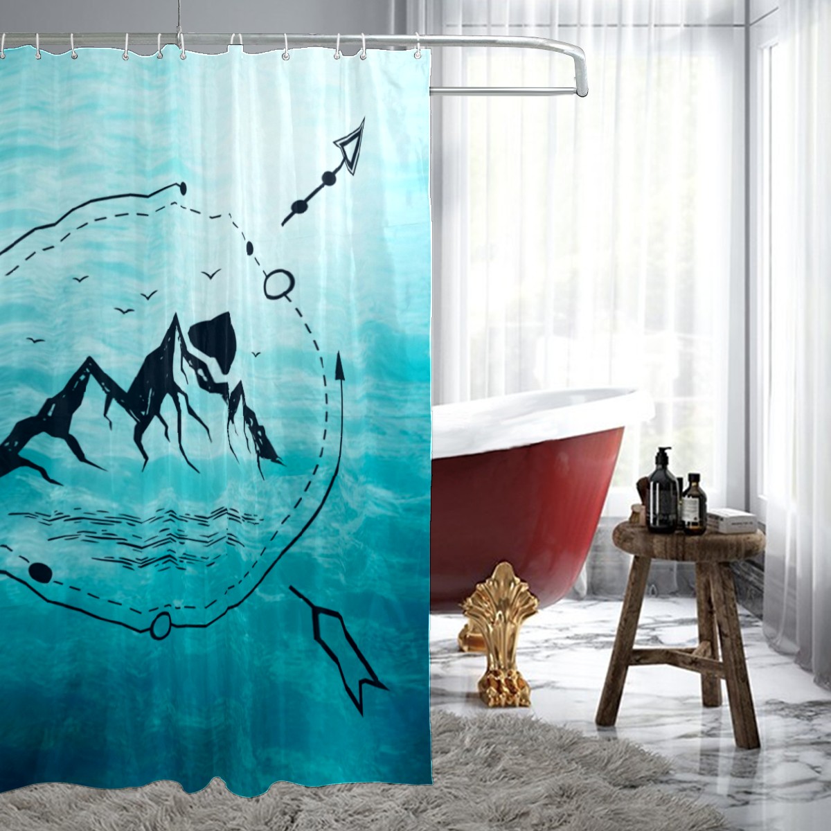 Ocean Fabric Shower Curtain, Waterproof Design and Polyester, Quick-Drying, Shower Curtains Set for Bathroom 60x72, Durable and Washable with 12 Hooks