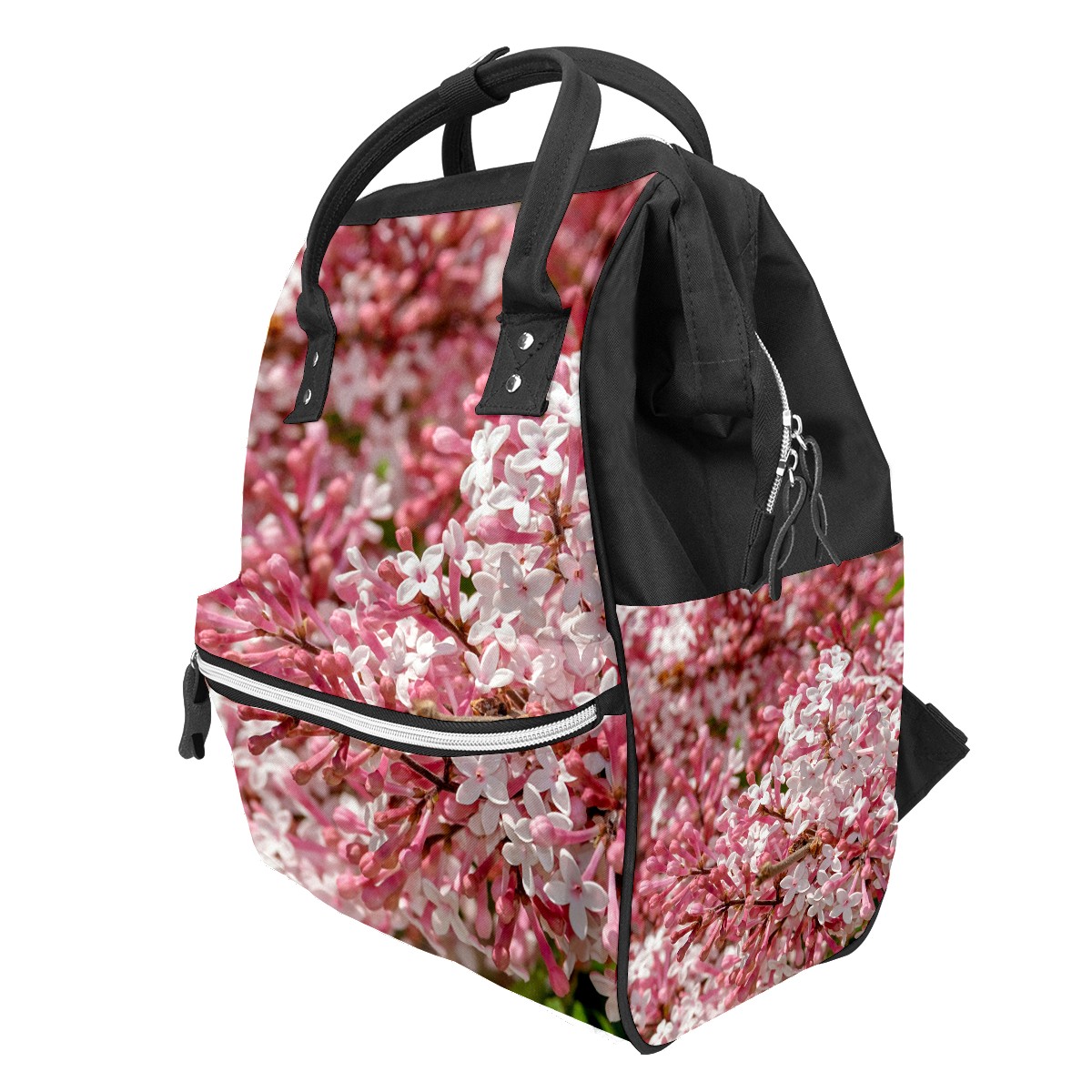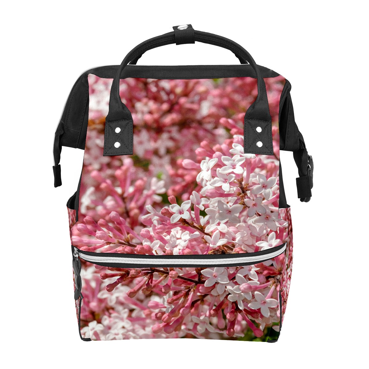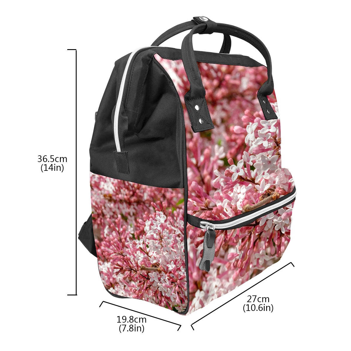 Large Capacity Diaper Bag Backpack Small Red Lilac Flowers Unisex Multifunction Travel Backpack for Mom Dad Women and Girls