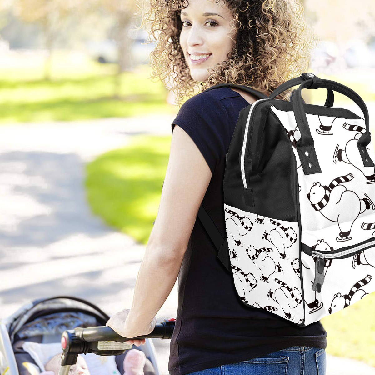 Large Capacity Diaper Bag Backpack Skiing Bear Unisex Multifunction Travel Backpack for Mom Dad Women and Girls