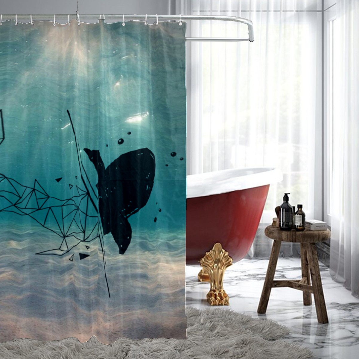 Ocean Shark (1) Fabric Shower Curtain, Waterproof Design and Polyester, Quick-Drying, Shower Curtains Set for Bathroom 60x72, Durable and Washable with 12 Hooks