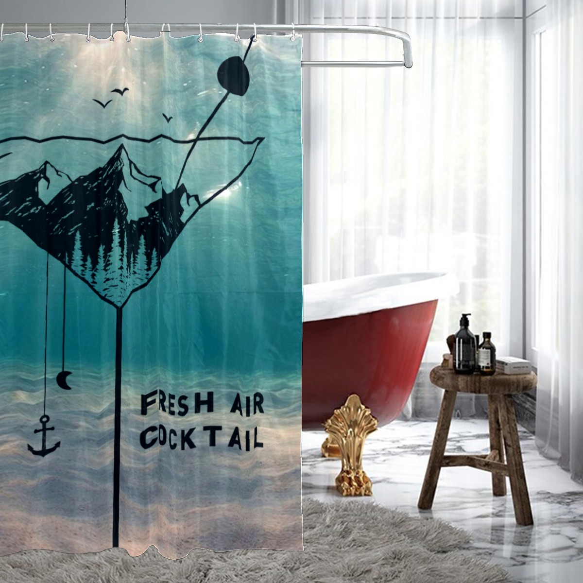 Ocean (2) Fabric Shower Curtain, Waterproof Design and Polyester, Quick-Drying, Shower Curtains Set for Bathroom 60x72, Durable and Washable with 12 Hooks
