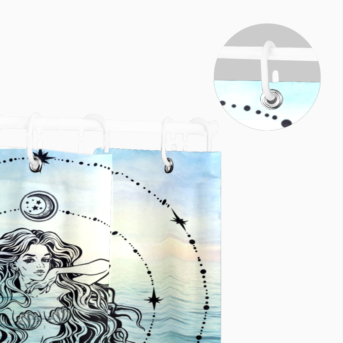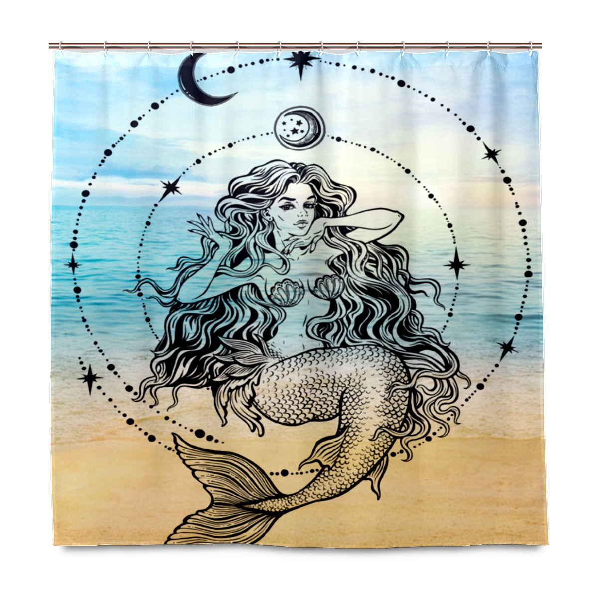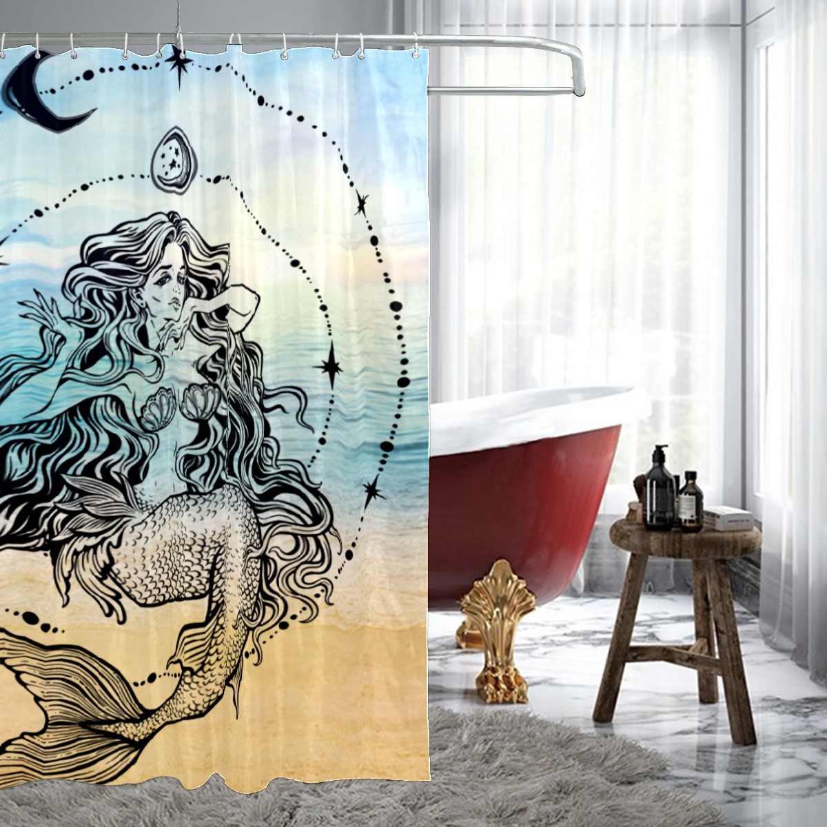 Mermaid (1) Fabric Shower Curtain, Waterproof Design and Polyester, Quick-Drying, Shower Curtains Set for Bathroom 60x72, Durable and Washable with 12 Hooks