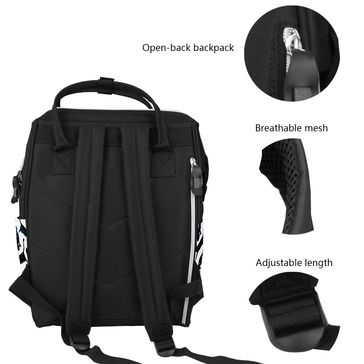 <p><b>Be a Dad or mom with style</b></p><p>With this beautiful baby changing bag backpack, you can look fashionable and carefree, safe in the knowledge that everything you need is within reach and in its rightful place.</p><p>&nbsp;</p><p><b>Large Capacity</b></p><p>Large capacity to keep everything including baby outfits, snacks, toys organized orderly.</p><p>&nbsp;</p><p><b>Stylish and Versatile</b></p><p>Not only diaper bag, it also can be used as laptop backpack, tablet bags, college student bookbag, weekend equipment, traveling &amp; hiking backpack, casual daypack.</p>