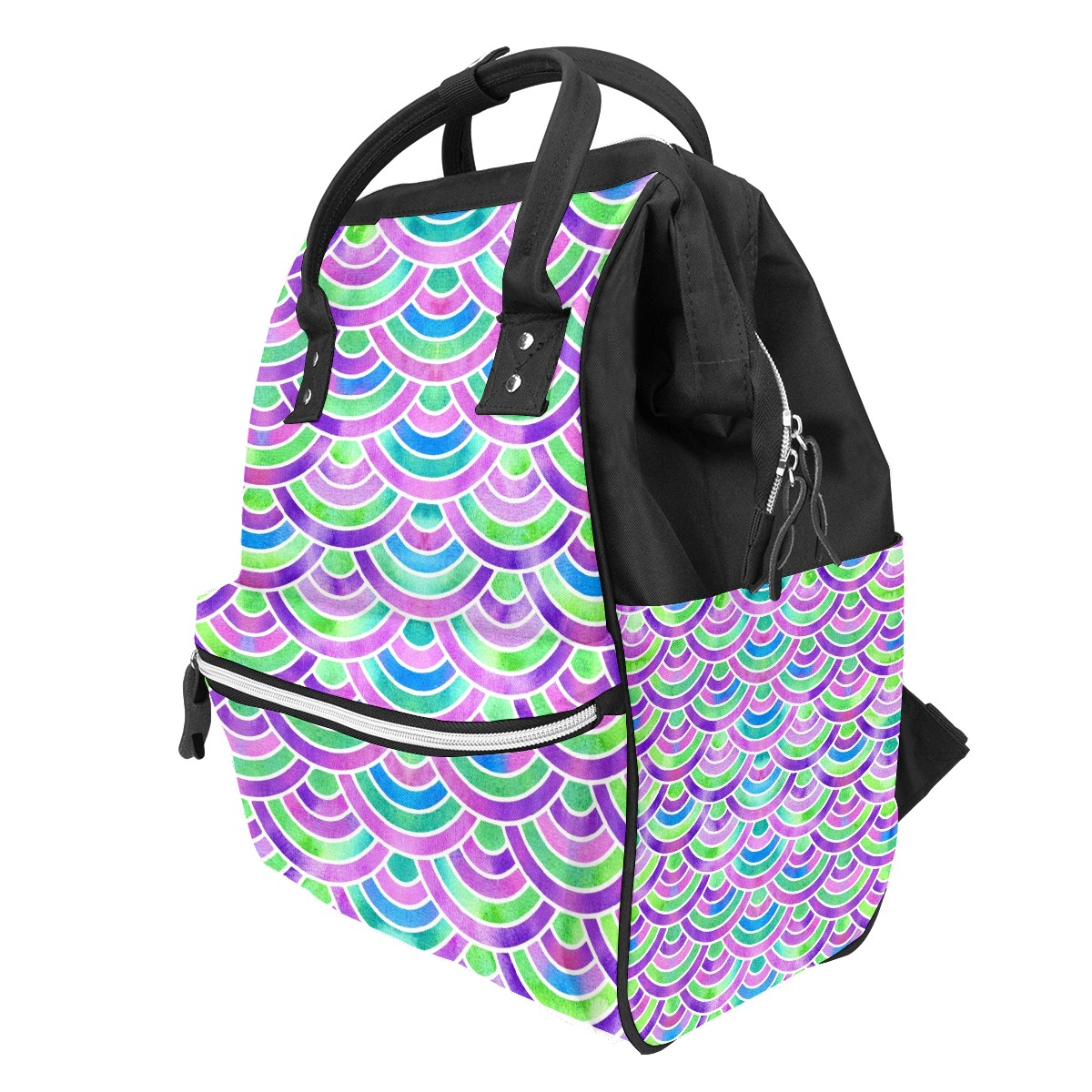 Large Capacity Diaper Bag Backpack Shining Mermaid Scales Unisex Multifunction Travel Backpack for Mom Dad Women and Girls