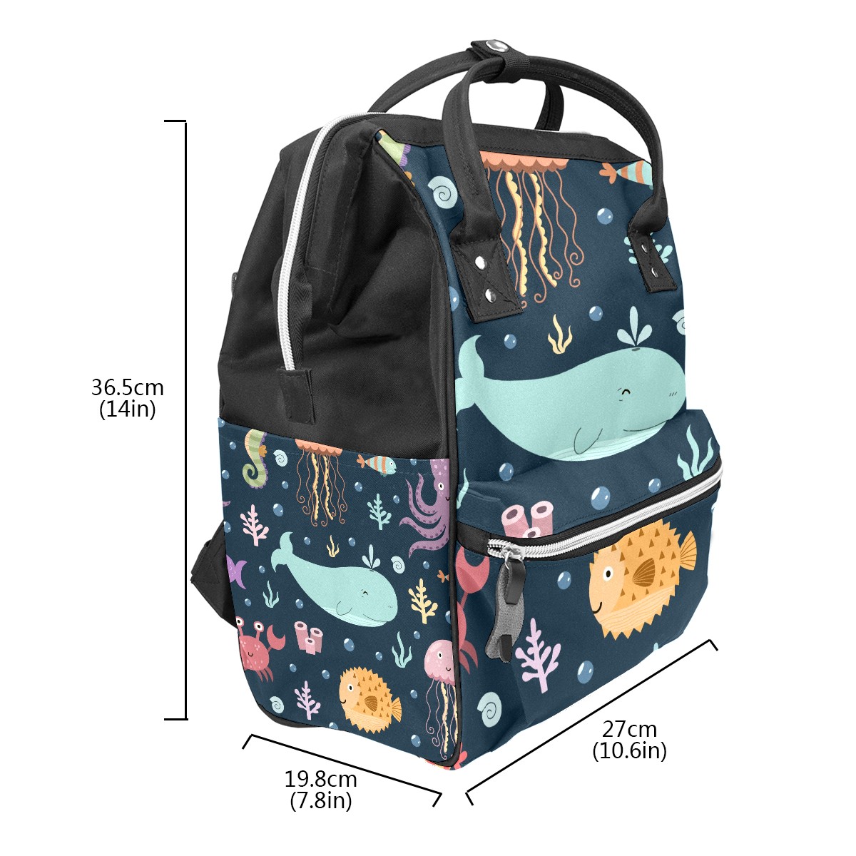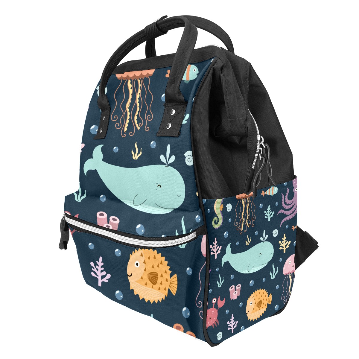 Large Capacity Diaper Bag Backpack Octopus Dolphin Unisex Multifunction Travel Backpack for Mom Dad Women and Girls