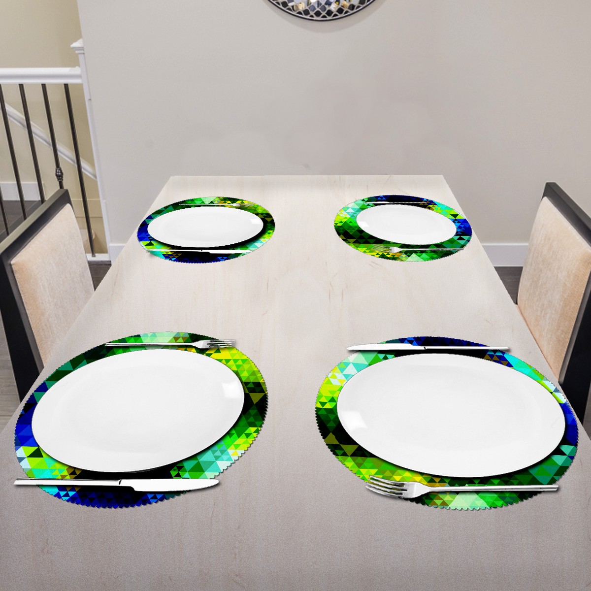 • <p><b>The fashionable design with this table placemat will makes your table look more outstanding and pretty.</b></p> <p><b>Diameter:</b> 15.4 In / 39 cm.</p> <p><b>Packing:</b> 1 PCS/4 PCS/6 PCS.</p> <p><b>Care Instructions:</b></p> <p>1.Wash with water and dry in a cool place. If there are stains on the placemat, you can wipe it with a damp sponge or damp cloth.</p> <p>2.Do not machine wash or sterilize in a microwave oven.</p> <p>3.Note: The package has been rolled up. If you encounter crease problems, please immerse it in warm water and take it out and place a flat object on the mat. The crease will disappear.</p> <p><b>Quality you can trust:</b></p> <p><b>1.Material:High Quality Polyester.</b></p> <p>2.Environmental protection material, no pollution, can be cleaned directly, non-slip, heat-resistant.</p> <p>3.Durable, no deformation,not fade,wrinkle resistant,wear resistant,easy to clean.</p> <p>4.Personalized design. One-Side High Quality Printing Technology.Vivid color and clear images.&nbsp;</p> <p><b>Home Decoration: Suitable for kitchen table,dinner hall,restaurant,hotel,business office,cafe,BBQ,picnic,party,etc.Both practical and decorative.</b></p> <p><b>Best Birthday/Christmas/Halloween/easter/thanksgiving/wedding/engagement anniversary gift to your baby/children/kids/family/boys/girls/parents/friends/girlfriend/boyfriend/wife, etc.</b></p>