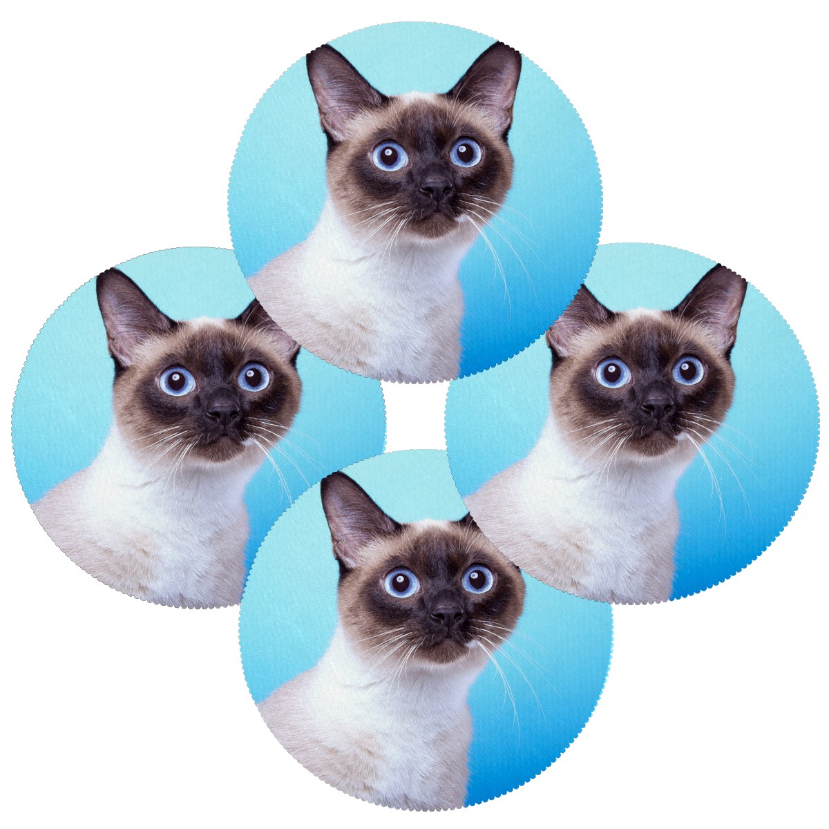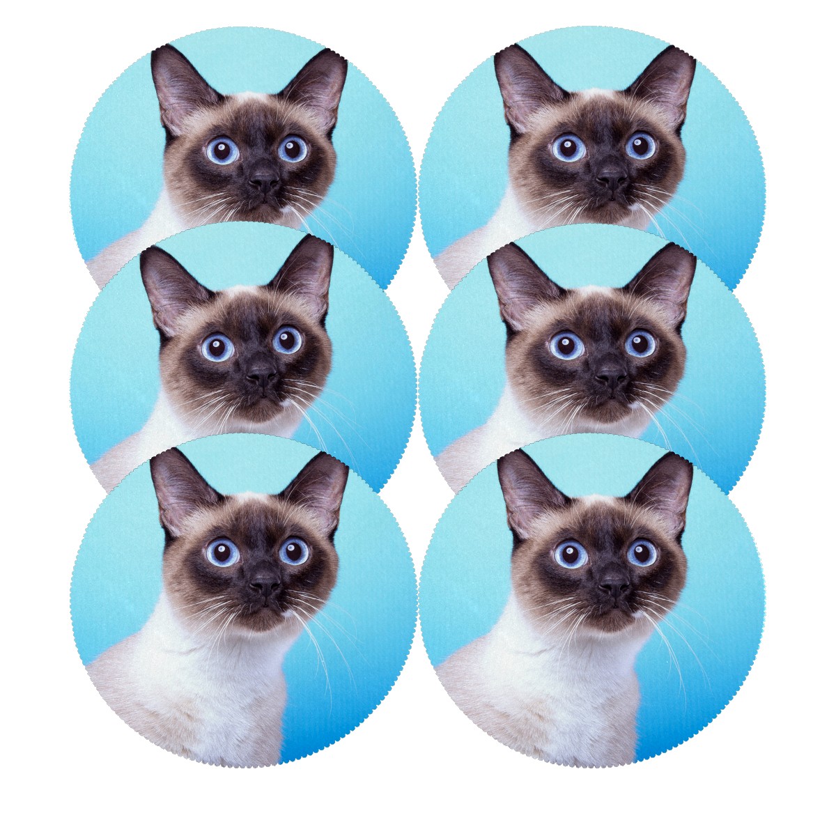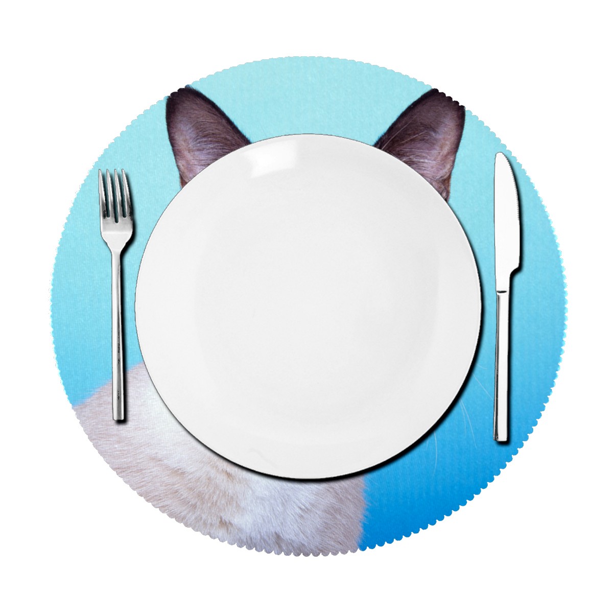 Round Placemats Set of 1 Siamese Cat Dining Table Mats Kitchen Waterproof Washable Place Mats Wipeable Boho Tablemats for Home Decor