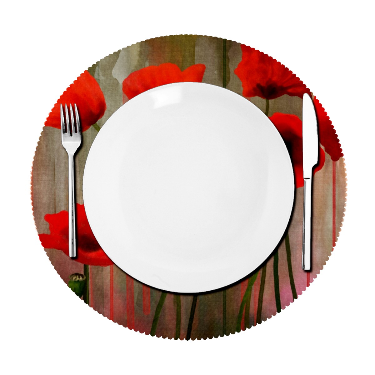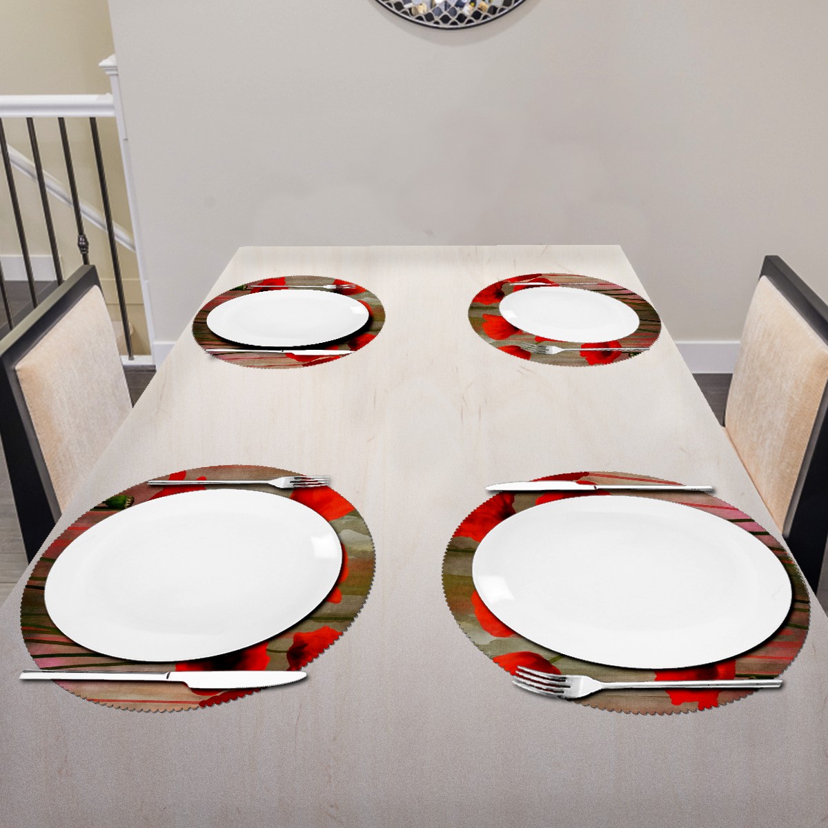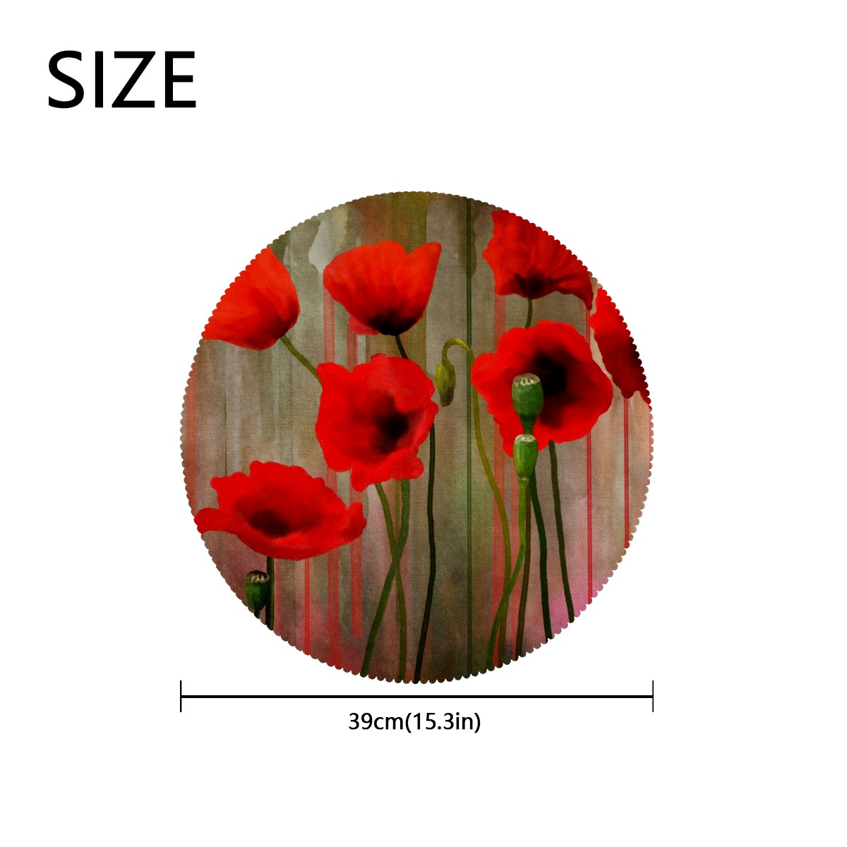 Round Placemats Set of 1 Red Poppy Flower Dining Table Mats Kitchen Waterproof Washable Place Mats Wipeable Boho Tablemats for Home Decor