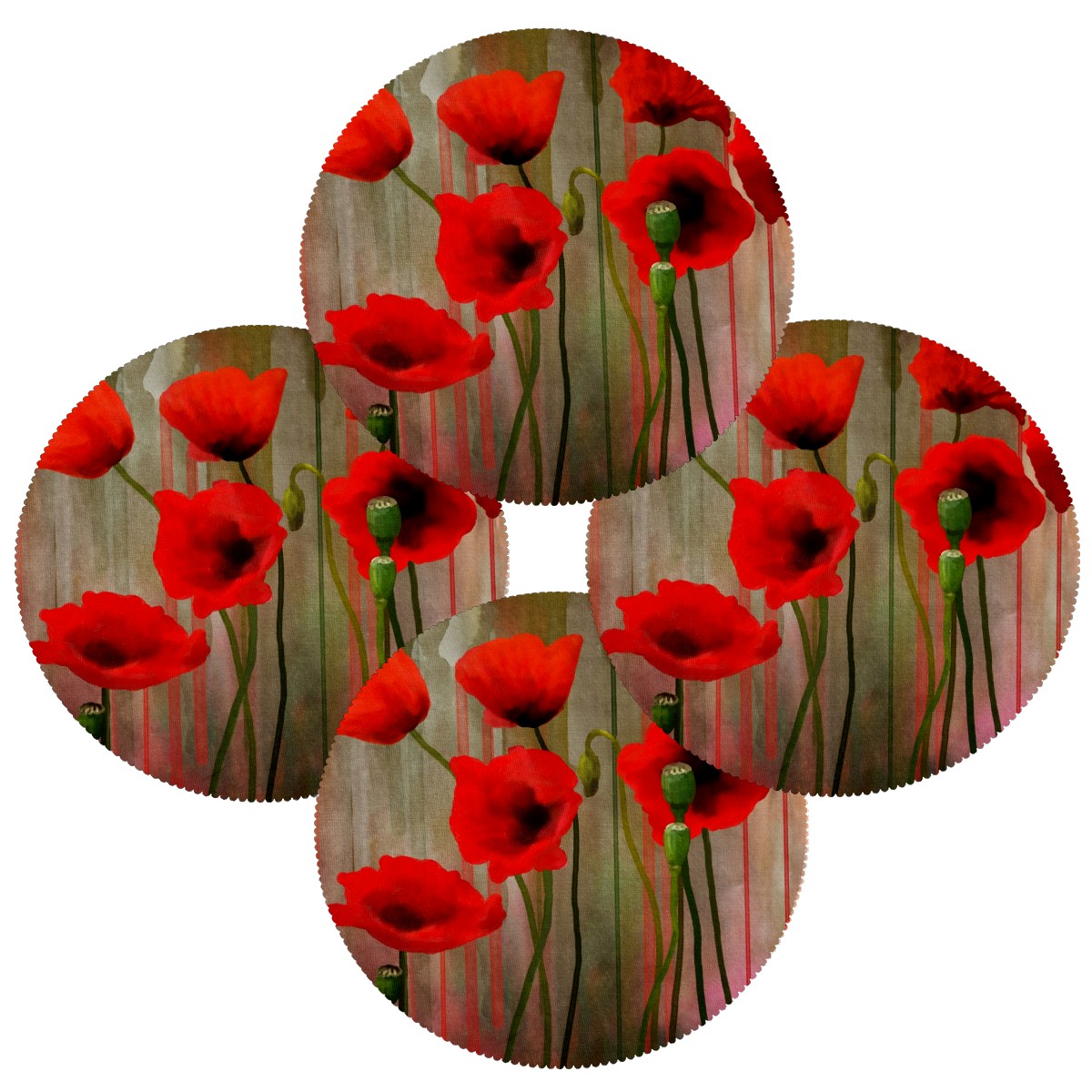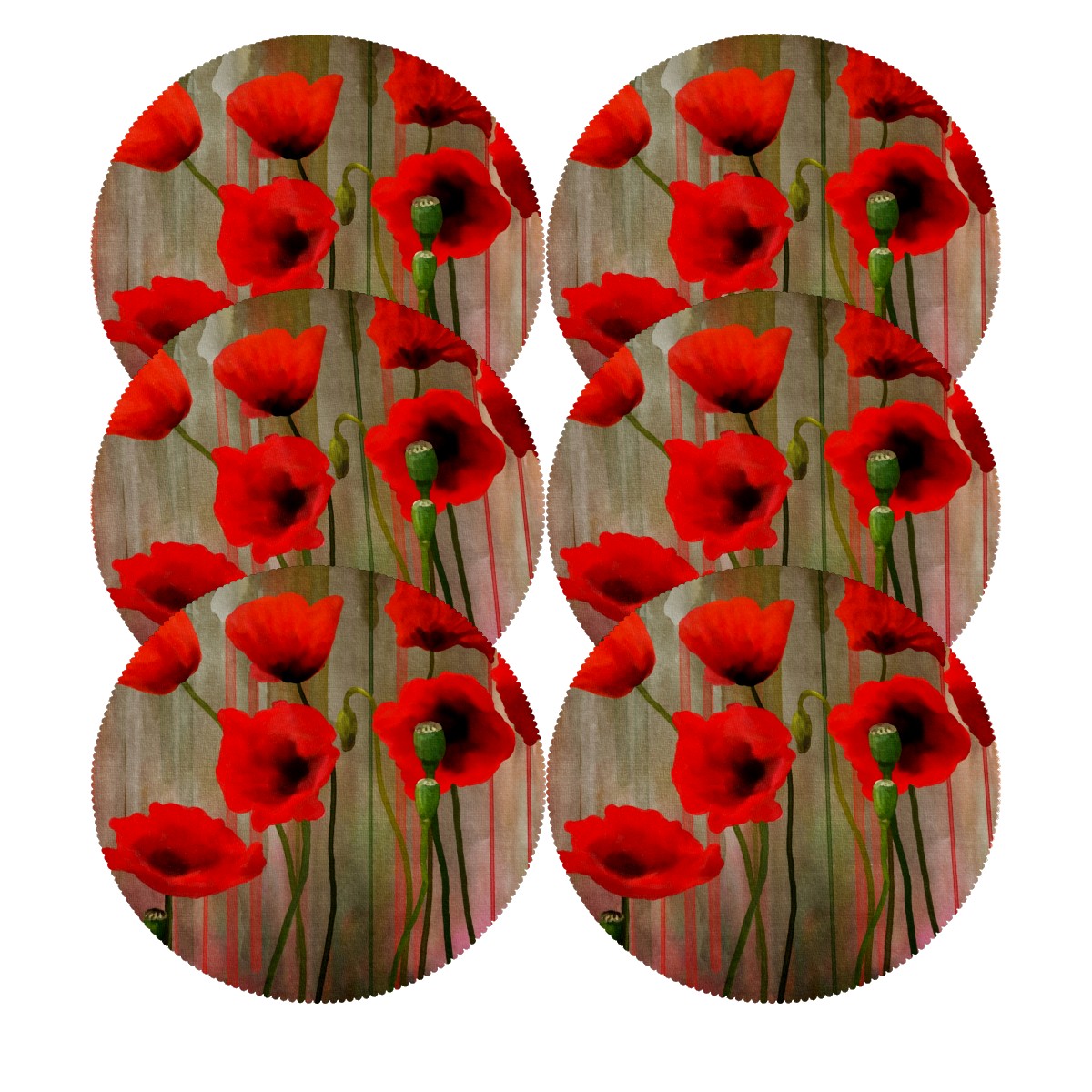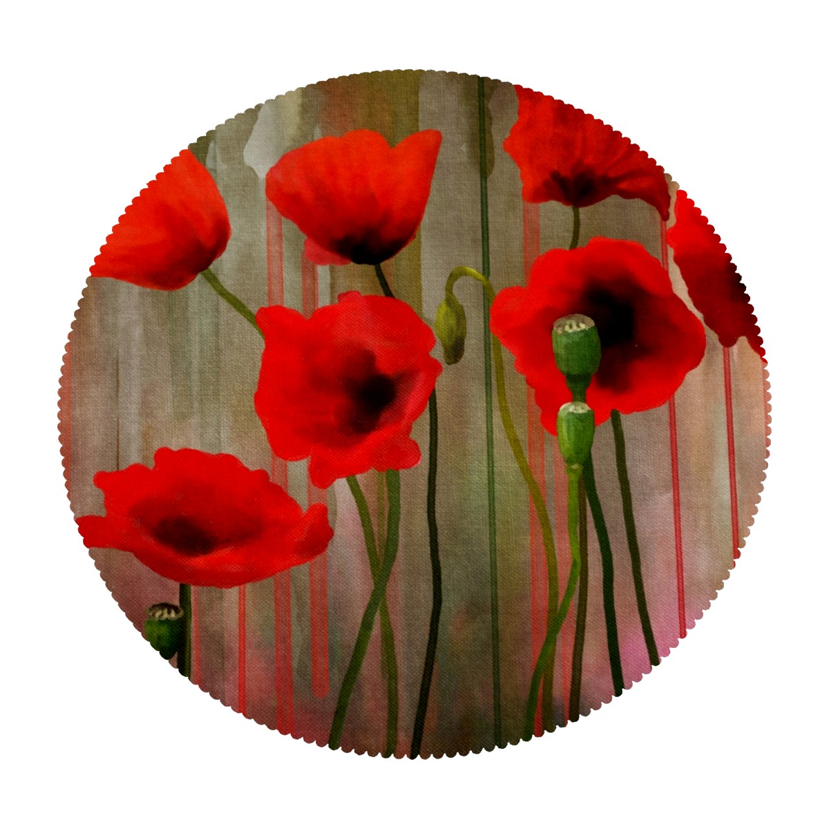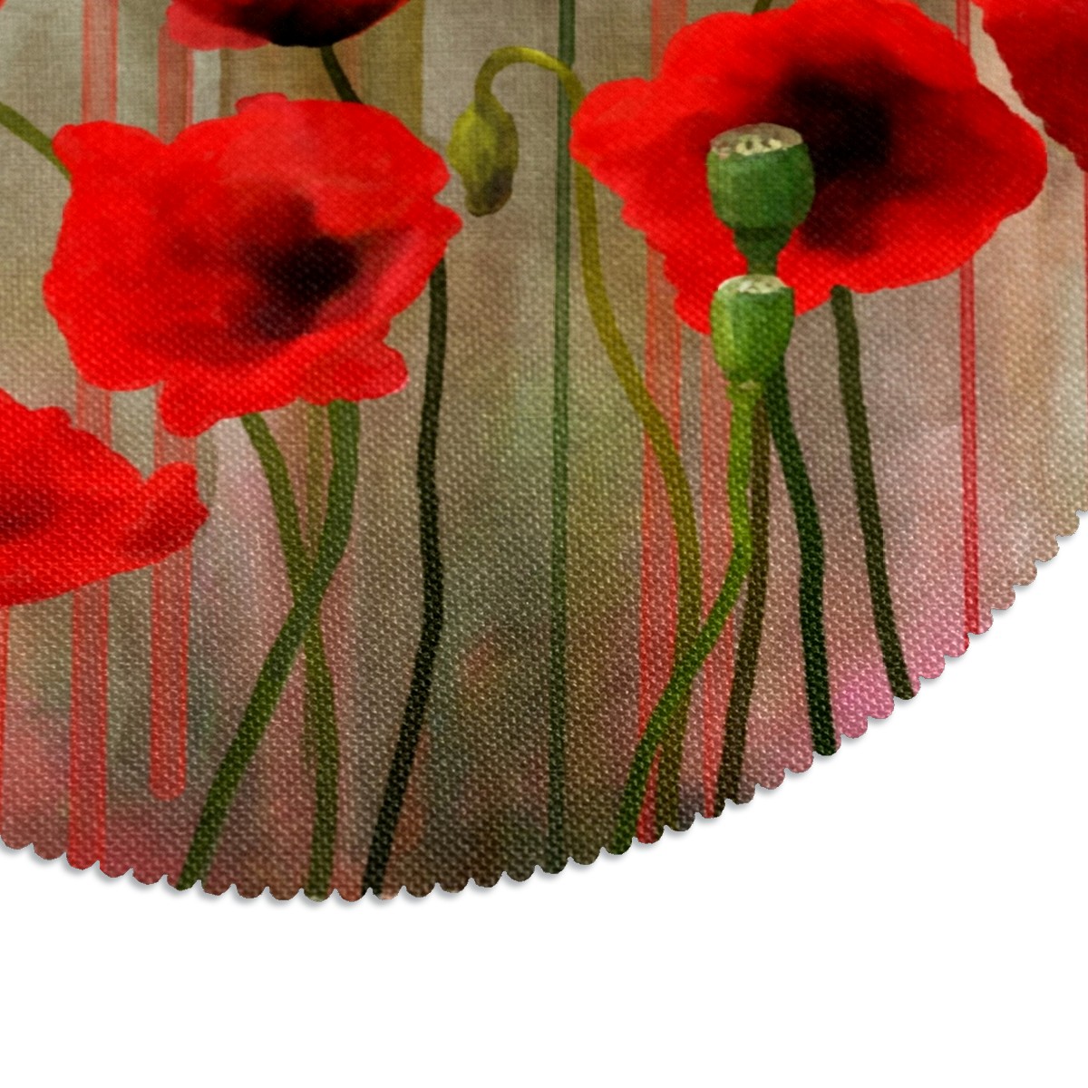 Round Placemats Set of 1 Red Poppy Flower Dining Table Mats Kitchen Waterproof Washable Place Mats Wipeable Boho Tablemats for Home Decor