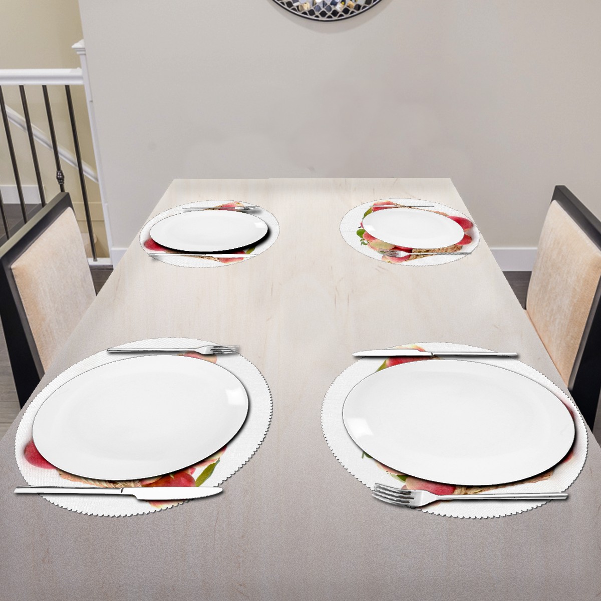 • <p><b>The fashionable design with this table placemat will makes your table look more outstanding and pretty.</b></p> <p><b>Diameter:</b> 15.4 In / 39 cm.</p> <p><b>Packing:</b> 1 PCS/4 PCS/6 PCS.</p> <p><b>Care Instructions:</b></p> <p>1.Wash with water and dry in a cool place. If there are stains on the placemat, you can wipe it with a damp sponge or damp cloth.</p> <p>2.Do not machine wash or sterilize in a microwave oven.</p> <p>3.Note: The package has been rolled up. If you encounter crease problems, please immerse it in warm water and take it out and place a flat object on the mat. The crease will disappear.</p> <p><b>Quality you can trust:</b></p> <p><b>1.Material:High Quality Polyester.</b></p> <p>2.Environmental protection material, no pollution, can be cleaned directly, non-slip, heat-resistant.</p> <p>3.Durable, no deformation,not fade,wrinkle resistant,wear resistant,easy to clean.</p> <p>4.Personalized design. One-Side High Quality Printing Technology.Vivid color and clear images.&nbsp;</p> <p><b>Home Decoration: Suitable for kitchen table,dinner hall,restaurant,hotel,business office,cafe,BBQ,picnic,party,etc.Both practical and decorative.</b></p> <p><b>Best Birthday/Christmas/Halloween/easter/thanksgiving/wedding/engagement anniversary gift to your baby/children/kids/family/boys/girls/parents/friends/girlfriend/boyfriend/wife, etc.</b></p>