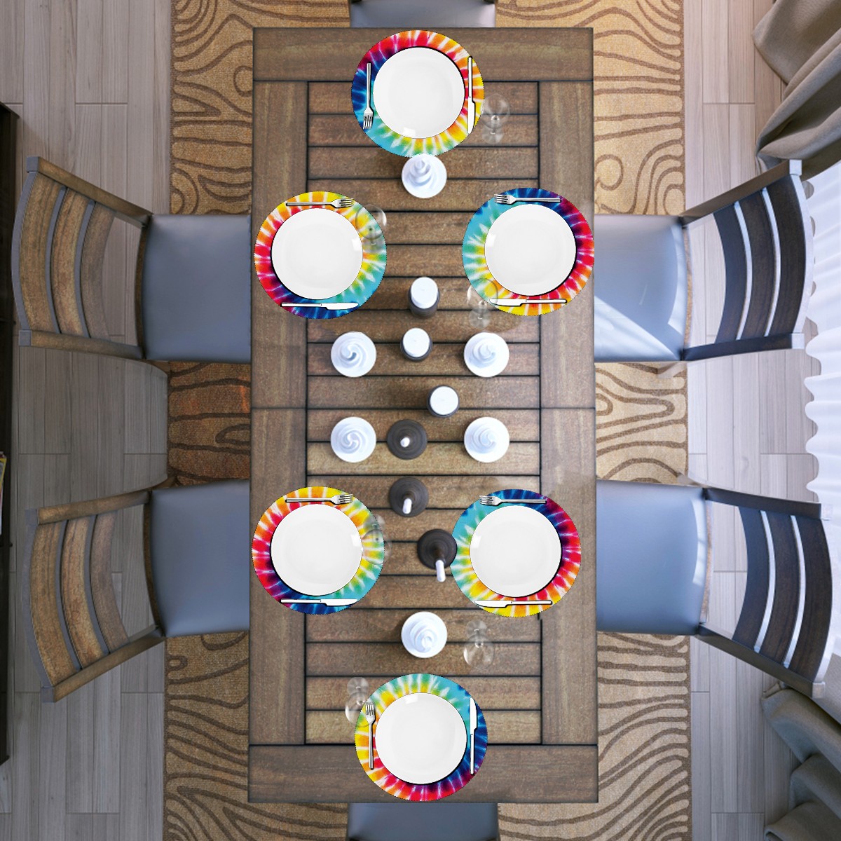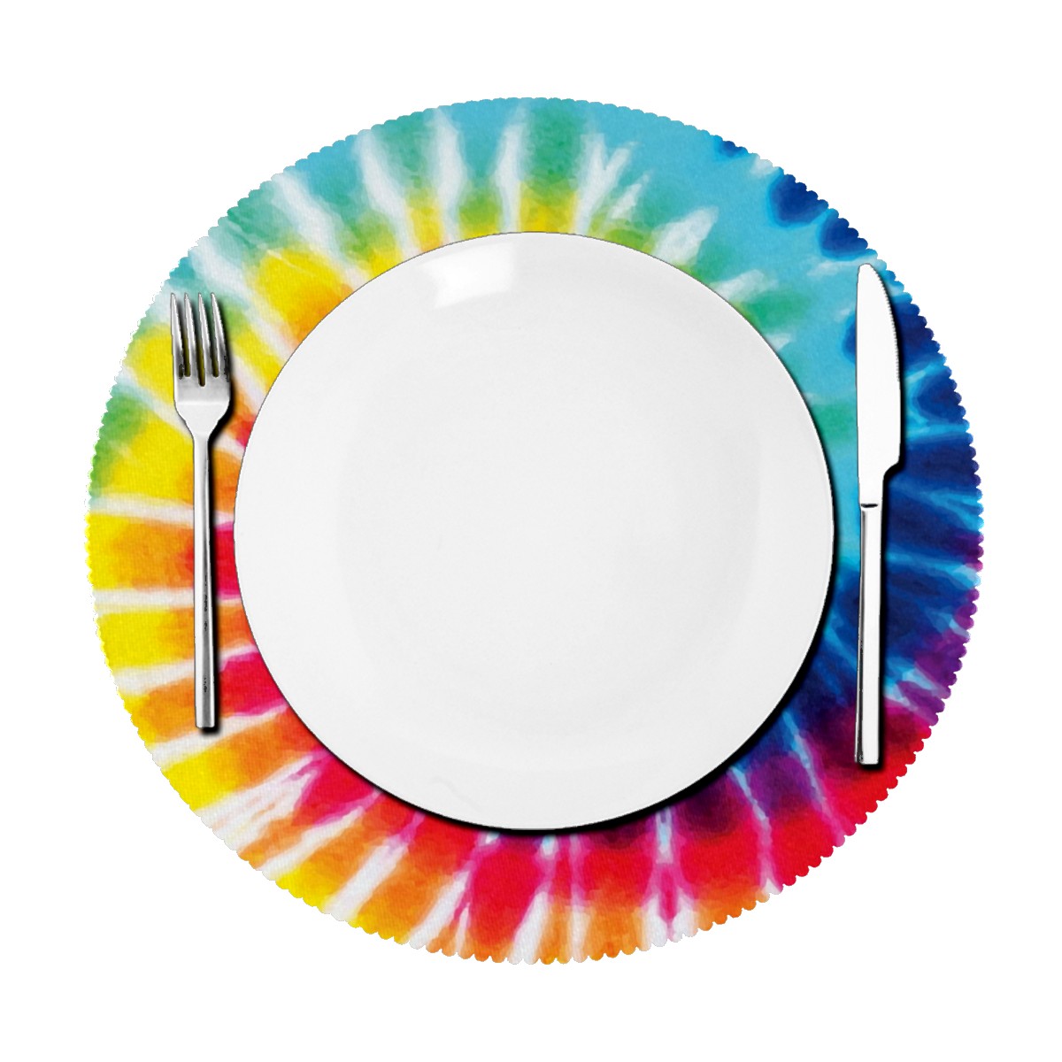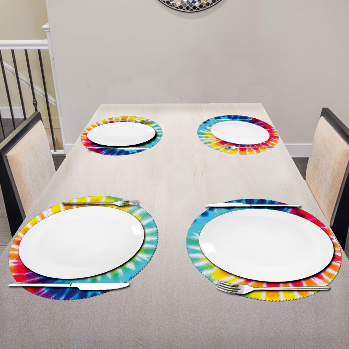 Round Placemats Set of 1 Rainbow Tie Dye Dining Table Mats Kitchen Waterproof Washable Place Mats Wipeable Boho Tablemats for Home Decor