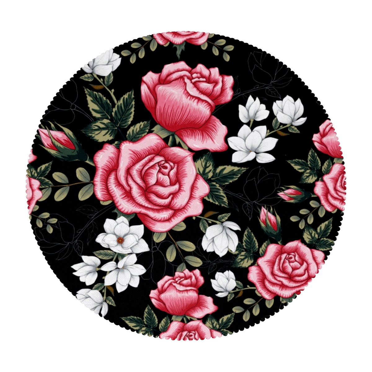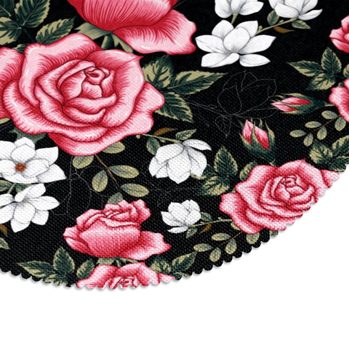 Round Placemats Set of 1 Pink White Roses Flowers Dining Table Mats Kitchen Waterproof Washable Place Mats Wipeable Boho Tablemats for Home Decor