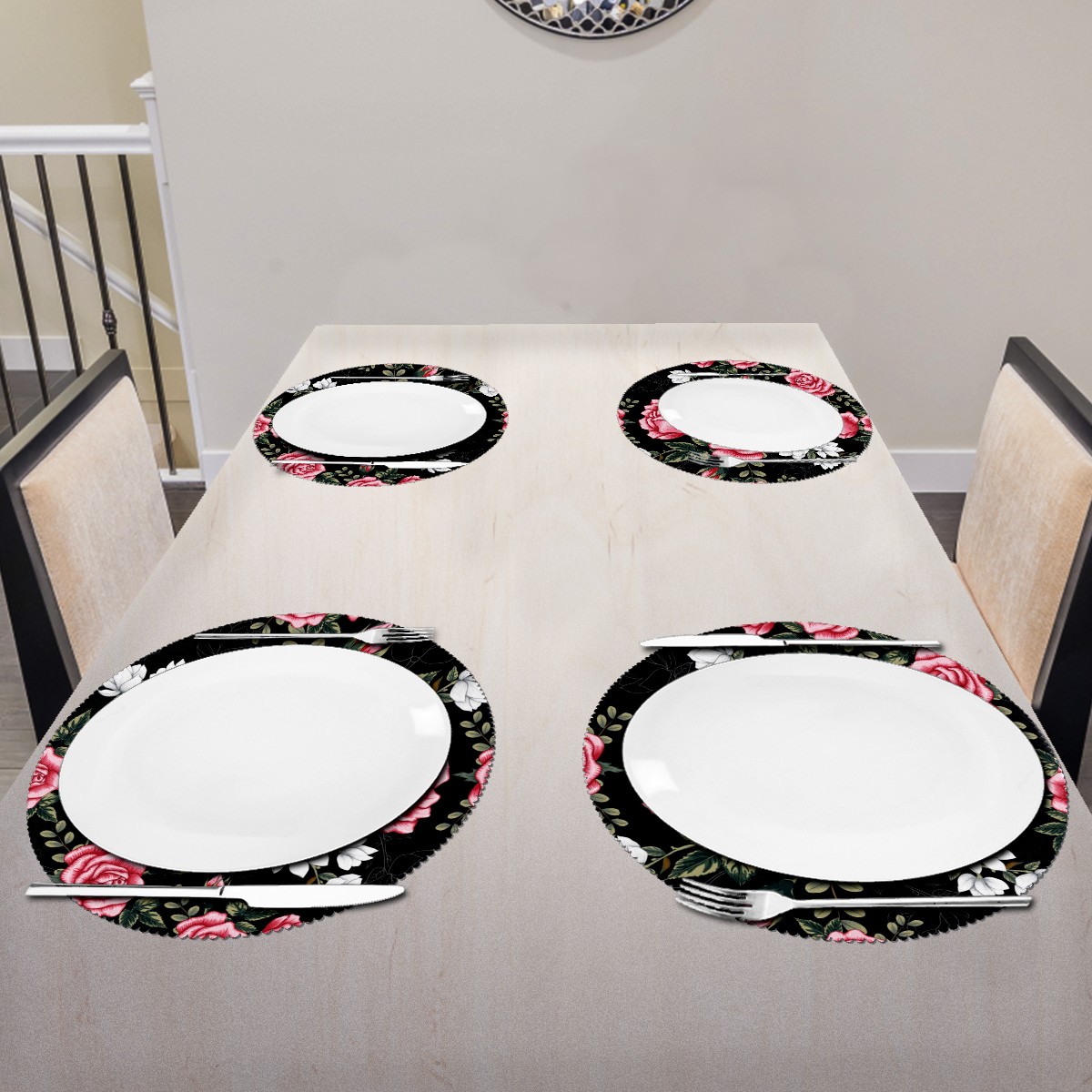 • <p><b>The fashionable design with this table placemat will makes your table look more outstanding and pretty.</b></p> <p><b>Diameter:</b> 15.4 In / 39 cm.</p> <p><b>Packing:</b> 1 PCS/4 PCS/6 PCS.</p> <p><b>Care Instructions:</b></p> <p>1.Wash with water and dry in a cool place. If there are stains on the placemat, you can wipe it with a damp sponge or damp cloth.</p> <p>2.Do not machine wash or sterilize in a microwave oven.</p> <p>3.Note: The package has been rolled up. If you encounter crease problems, please immerse it in warm water and take it out and place a flat object on the mat. The crease will disappear.</p> <p><b>Quality you can trust:</b></p> <p><b>1.Material:High Quality Polyester.</b></p> <p>2.Environmental protection material, no pollution, can be cleaned directly, non-slip, heat-resistant.</p> <p>3.Durable, no deformation,not fade,wrinkle resistant,wear resistant,easy to clean.</p> <p>4.Personalized design. One-Side High Quality Printing Technology.Vivid color and clear images.&nbsp;</p> <p><b>Home Decoration: Suitable for kitchen table,dinner hall,restaurant,hotel,business office,cafe,BBQ,picnic,party,etc.Both practical and decorative.</b></p> <p><b>Best Birthday/Christmas/Halloween/easter/thanksgiving/wedding/engagement anniversary gift to your baby/children/kids/family/boys/girls/parents/friends/girlfriend/boyfriend/wife, etc.</b></p>