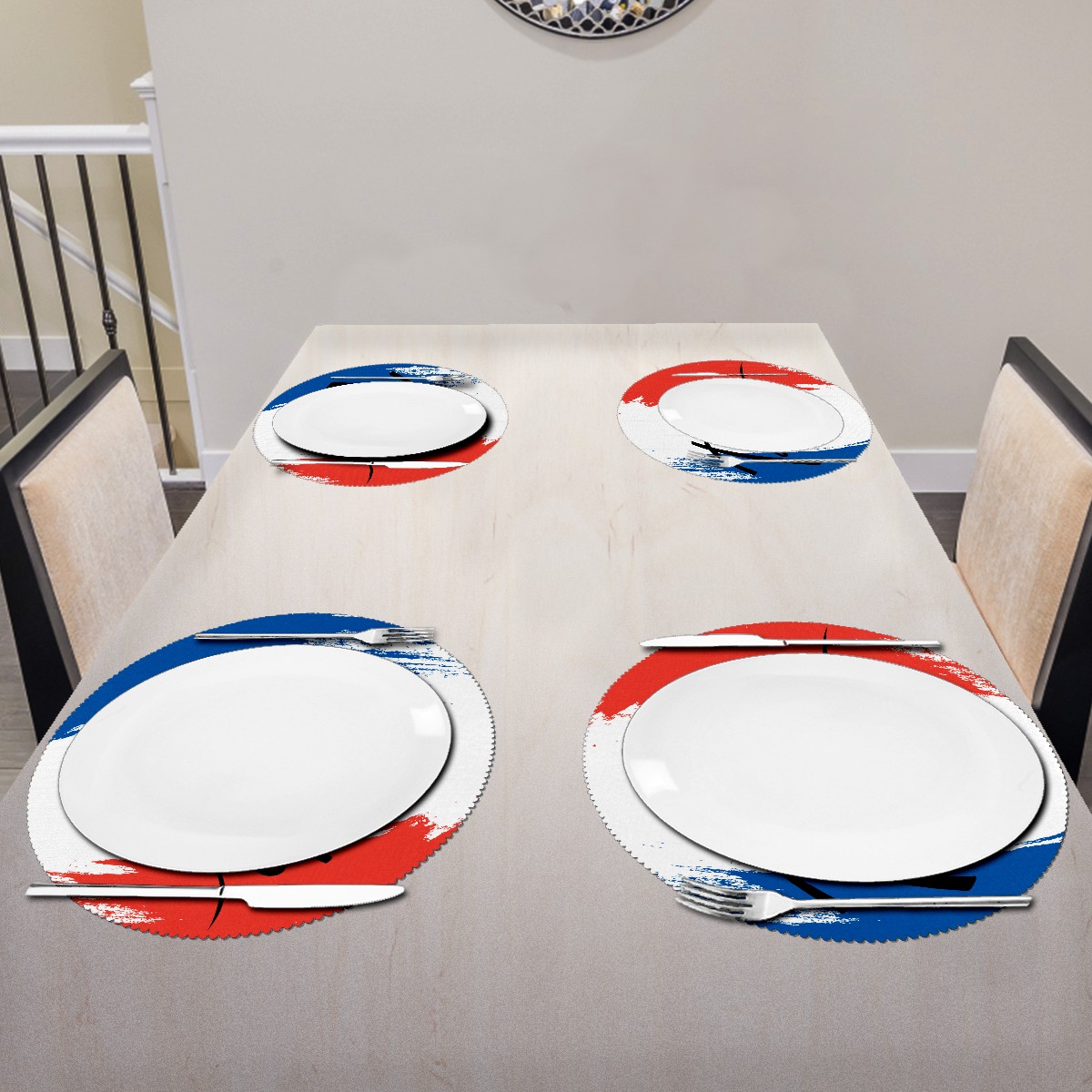 • <p><b>The fashionable design with this table placemat will makes your table look more outstanding and pretty.</b></p> <p><b>Diameter:</b> 15.4 In / 39 cm.</p> <p><b>Packing:</b> 1 PCS/4 PCS/6 PCS.</p> <p><b>Care Instructions:</b></p> <p>1.Wash with water and dry in a cool place. If there are stains on the placemat, you can wipe it with a damp sponge or damp cloth.</p> <p>2.Do not machine wash or sterilize in a microwave oven.</p> <p>3.Note: The package has been rolled up. If you encounter crease problems, please immerse it in warm water and take it out and place a flat object on the mat. The crease will disappear.</p> <p><b>Quality you can trust:</b></p> <p><b>1.Material:High Quality Polyester.</b></p> <p>2.Environmental protection material, no pollution, can be cleaned directly, non-slip, heat-resistant.</p> <p>3.Durable, no deformation,not fade,wrinkle resistant,wear resistant,easy to clean.</p> <p>4.Personalized design. One-Side High Quality Printing Technology.Vivid color and clear images.&nbsp;</p> <p><b>Home Decoration: Suitable for kitchen table,dinner hall,restaurant,hotel,business office,cafe,BBQ,picnic,party,etc.Both practical and decorative.</b></p> <p><b>Best Birthday/Christmas/Halloween/easter/thanksgiving/wedding/engagement anniversary gift to your baby/children/kids/family/boys/girls/parents/friends/girlfriend/boyfriend/wife, etc.</b></p>