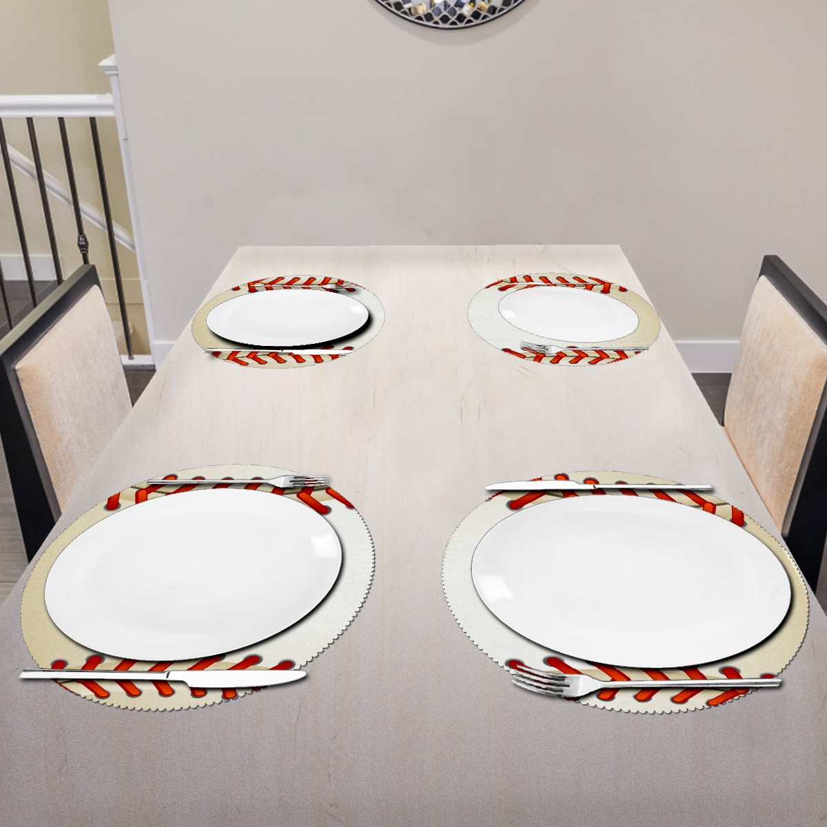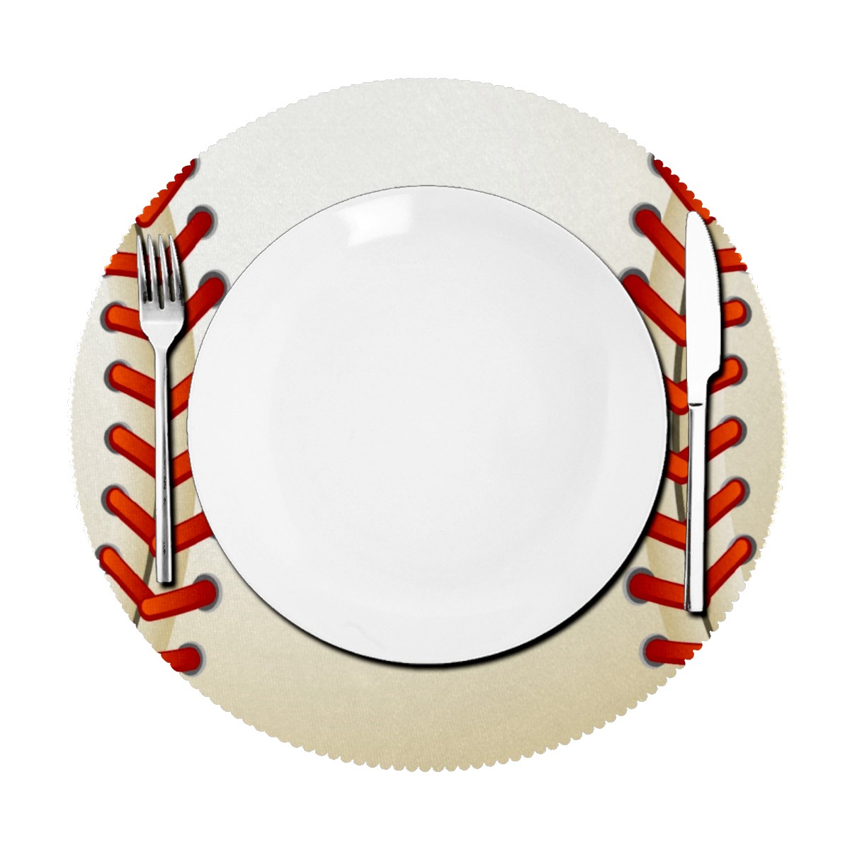 Round Placemats Set of 1 Modern Baseball Texture Dining Table Mats Kitchen Waterproof Washable Place Mats Wipeable Boho Tablemats for Home Decor