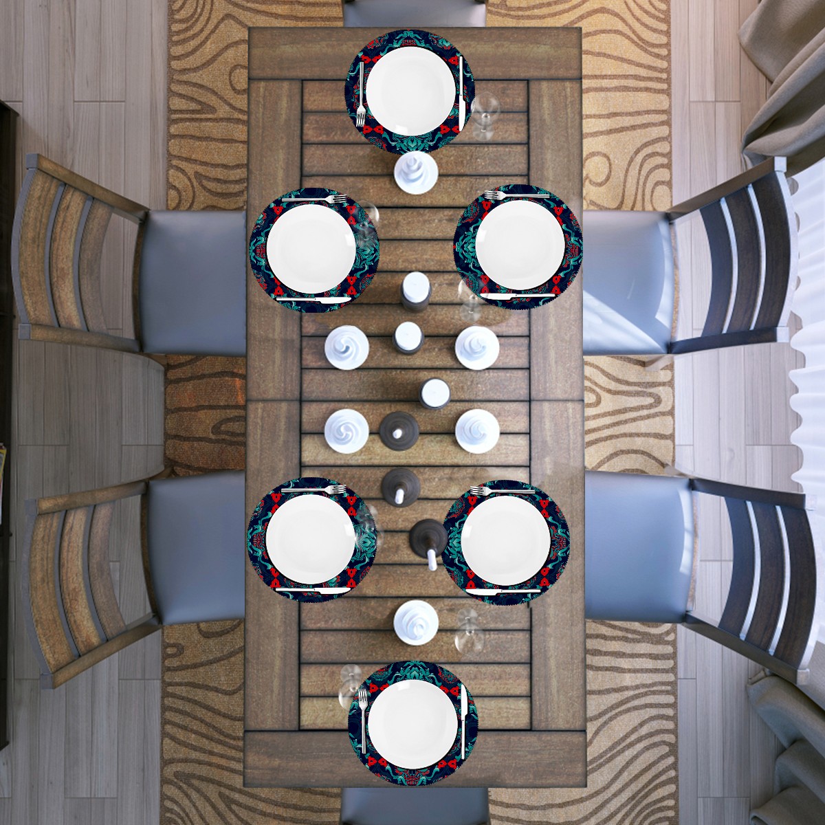 • <p><b>The fashionable design with this table placemat will makes your table look more outstanding and pretty.</b></p> <p><b>Diameter:</b> 15.4 In / 39 cm.</p> <p><b>Packing:</b> 1 PCS/4 PCS/6 PCS.</p> <p><b>Care Instructions:</b></p> <p>1.Wash with water and dry in a cool place. If there are stains on the placemat, you can wipe it with a damp sponge or damp cloth.</p> <p>2.Do not machine wash or sterilize in a microwave oven.</p> <p>3.Note: The package has been rolled up. If you encounter crease problems, please immerse it in warm water and take it out and place a flat object on the mat. The crease will disappear.</p> <p><b>Quality you can trust:</b></p> <p><b>1.Material:High Quality Polyester.</b></p> <p>2.Environmental protection material, no pollution, can be cleaned directly, non-slip, heat-resistant.</p> <p>3.Durable, no deformation,not fade,wrinkle resistant,wear resistant,easy to clean.</p> <p>4.Personalized design. One-Side High Quality Printing Technology.Vivid color and clear images.&nbsp;</p> <p><b>Home Decoration: Suitable for kitchen table,dinner hall,restaurant,hotel,business office,cafe,BBQ,picnic,party,etc.Both practical and decorative.</b></p> <p><b>Best Birthday/Christmas/Halloween/easter/thanksgiving/wedding/engagement anniversary gift to your baby/children/kids/family/boys/girls/parents/friends/girlfriend/boyfriend/wife, etc.</b></p>