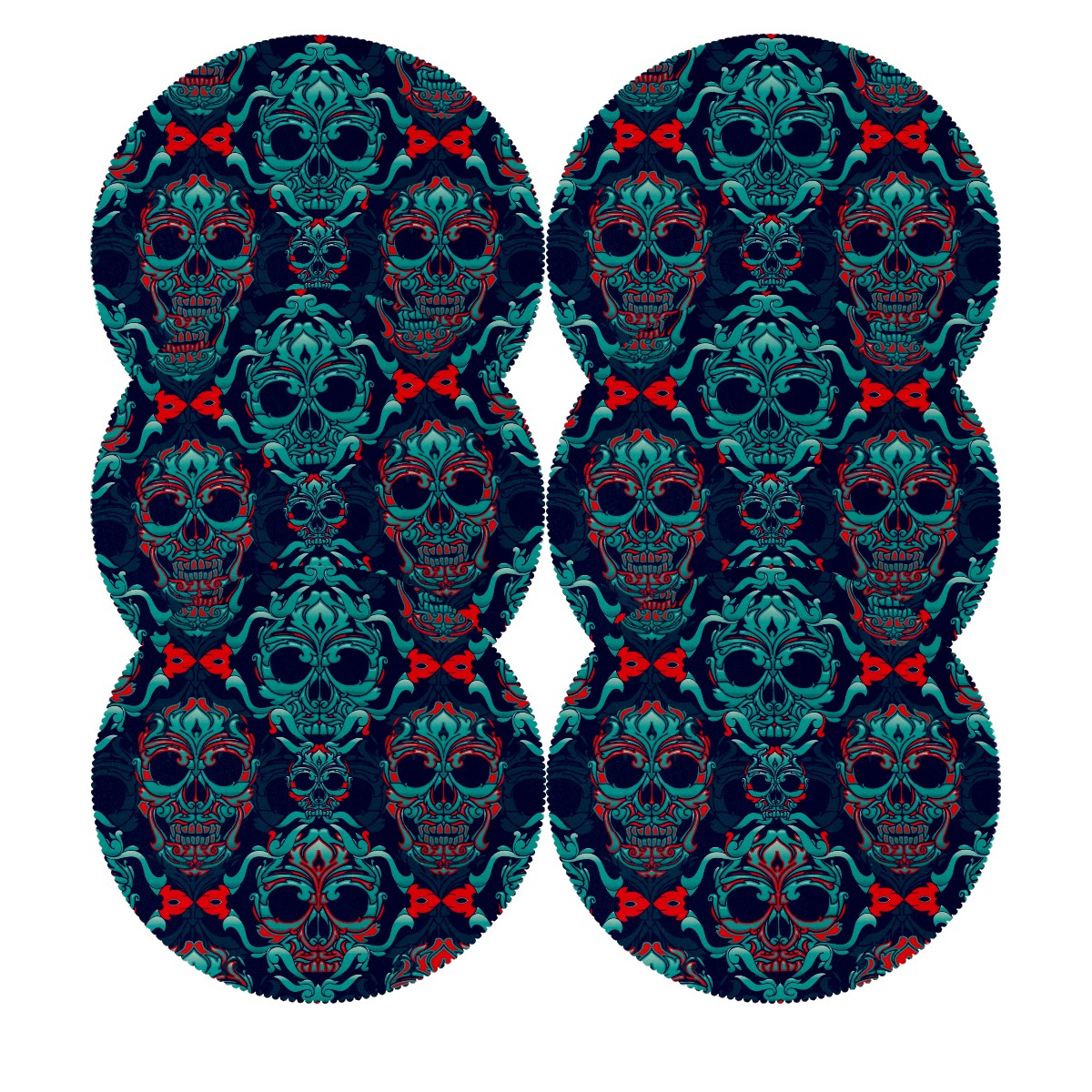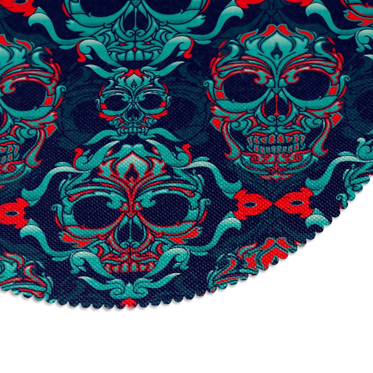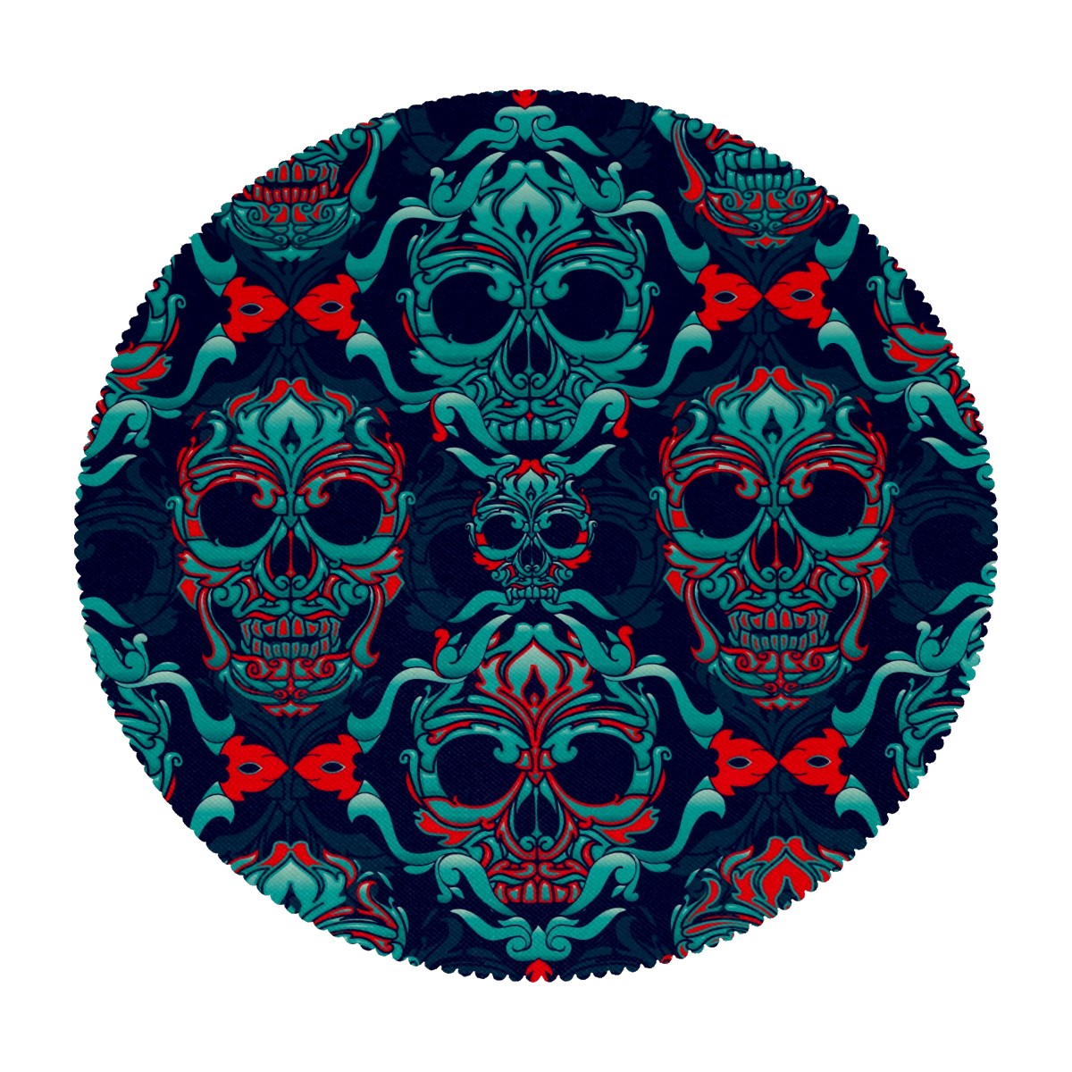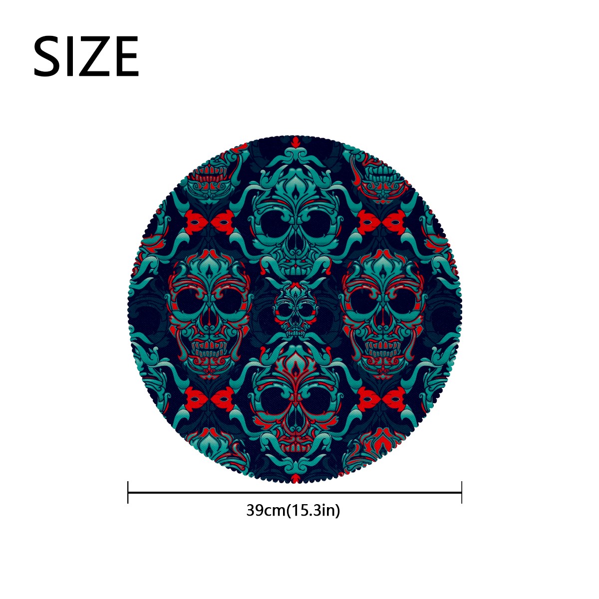 Round Placemats Set of 1 Mexico Sugar Skull Dark Green Dining Table Mats Kitchen Waterproof Washable Place Mats Wipeable Boho Tablemats for Home Decor