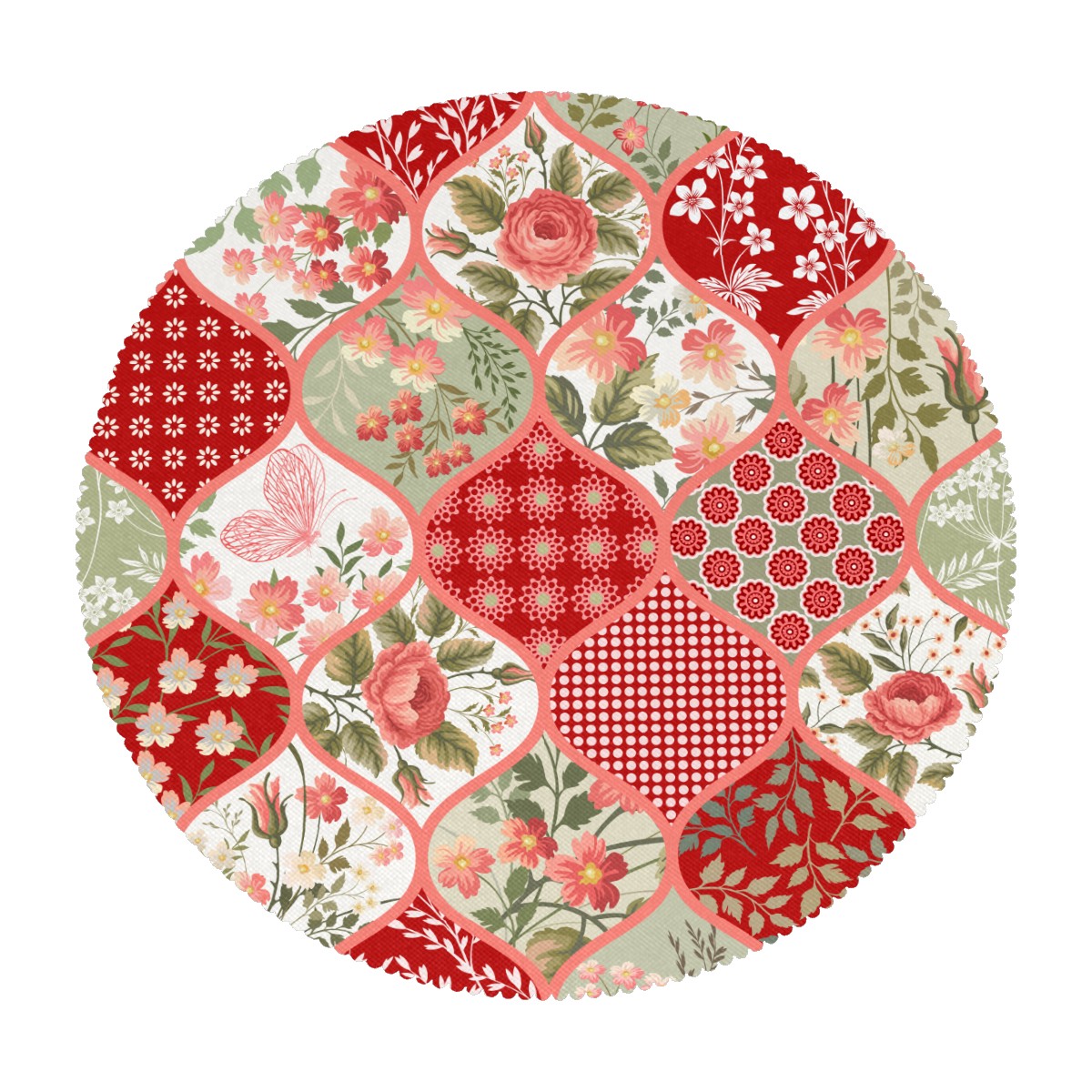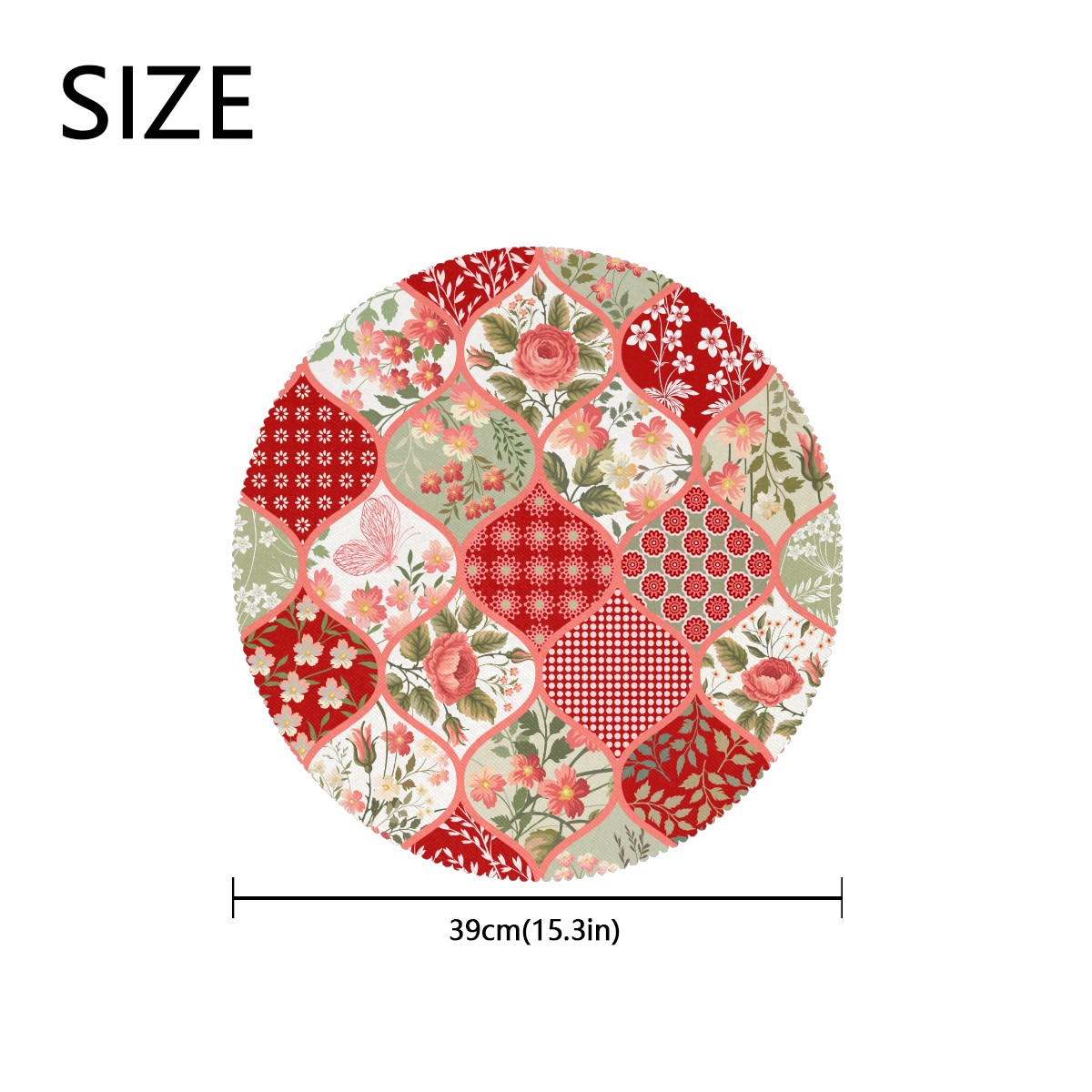 Round Placemats Set of 1 Japanese Flower Color Pattern Dining Table Mats Kitchen Waterproof Washable Place Mats Wipeable Boho Tablemats for Home Decor