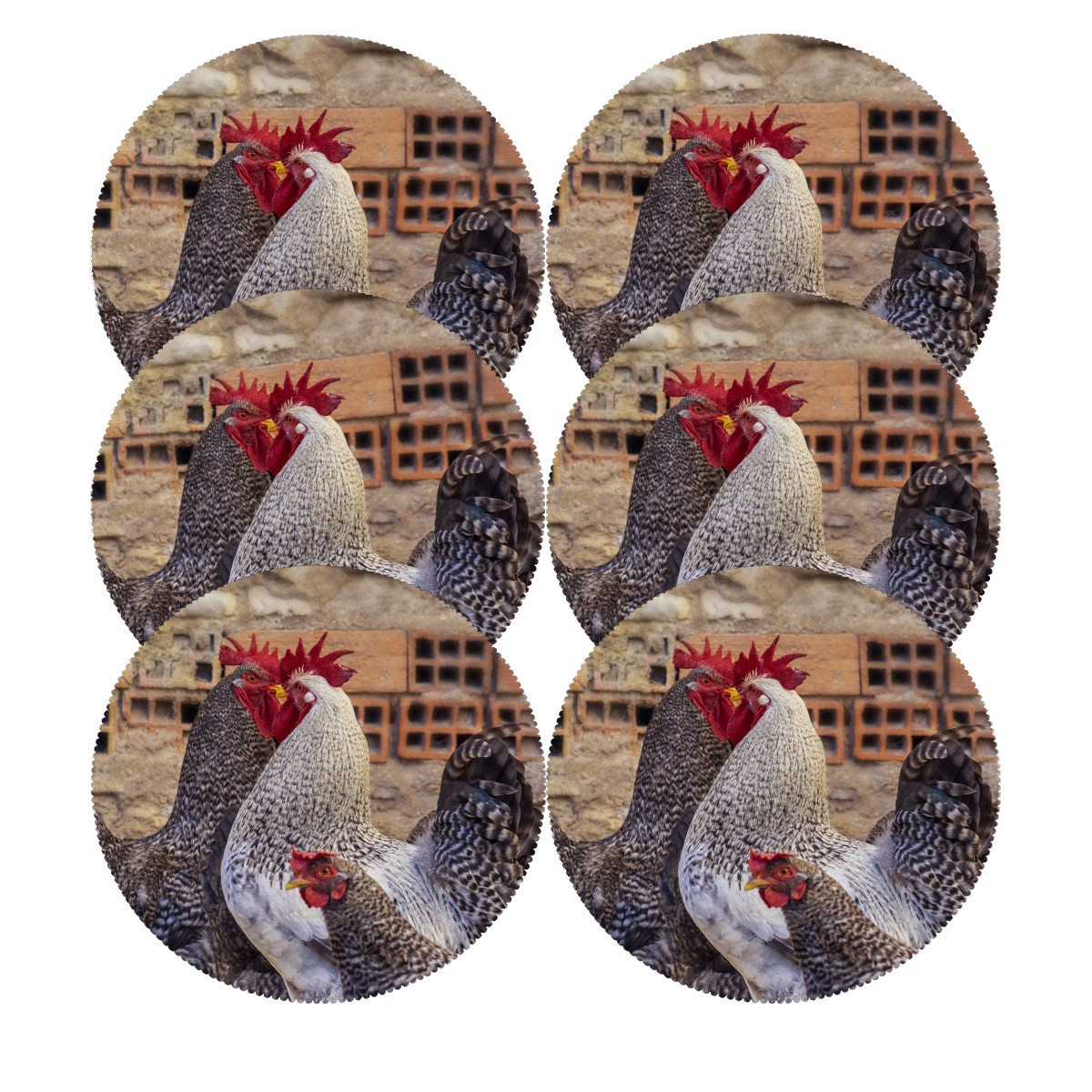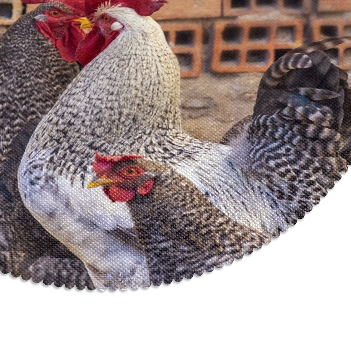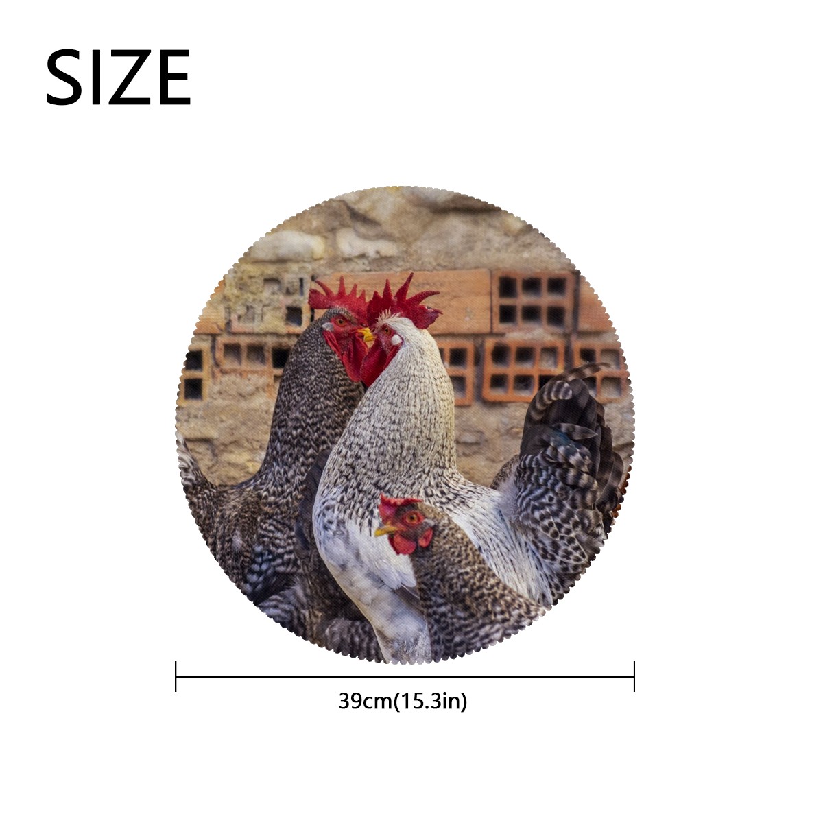 Round Placemats Set of 1 Hens Rooster Dining Table Mats Kitchen Waterproof Washable Place Mats Wipeable Boho Tablemats for Home Decor