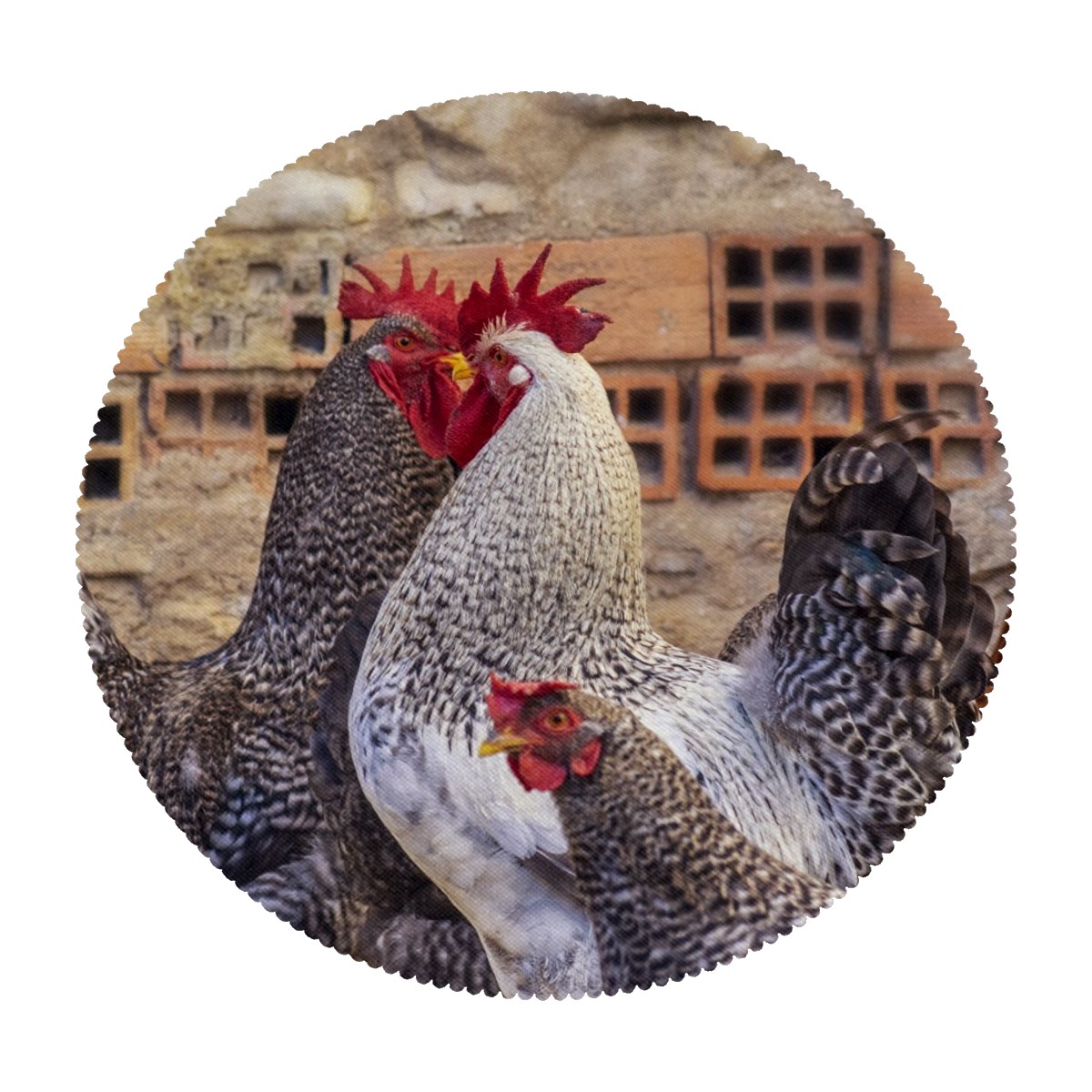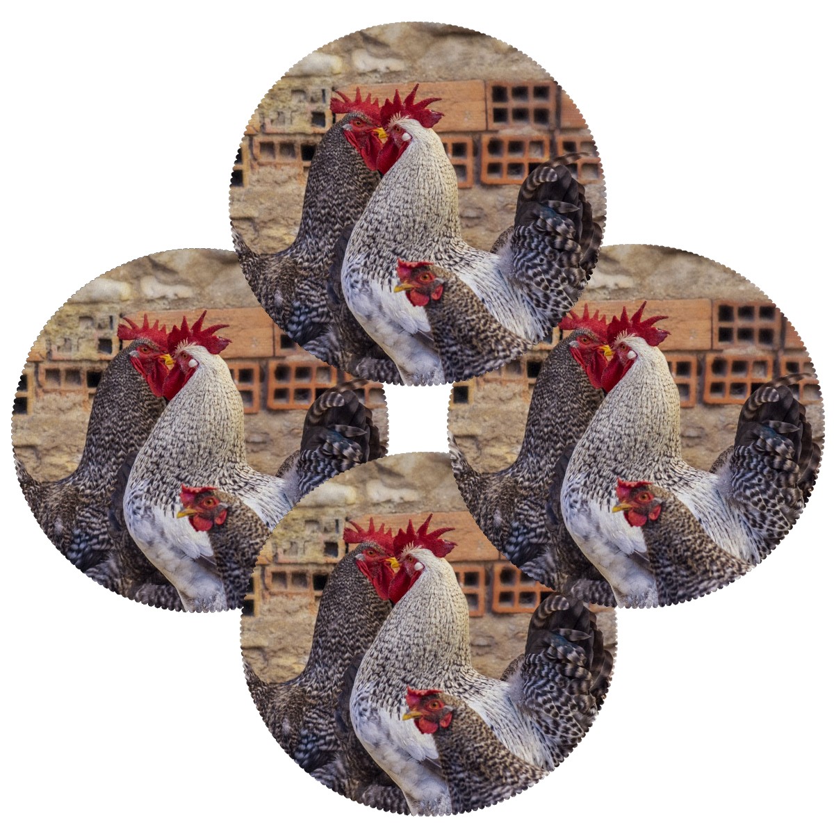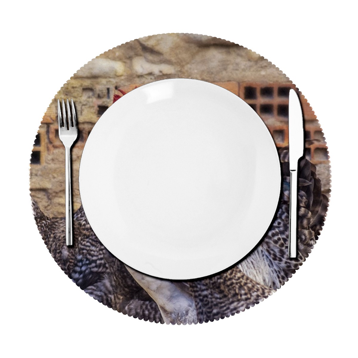 Round Placemats Set of 1 Hens Rooster Dining Table Mats Kitchen Waterproof Washable Place Mats Wipeable Boho Tablemats for Home Decor