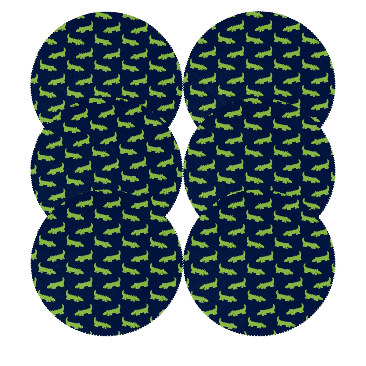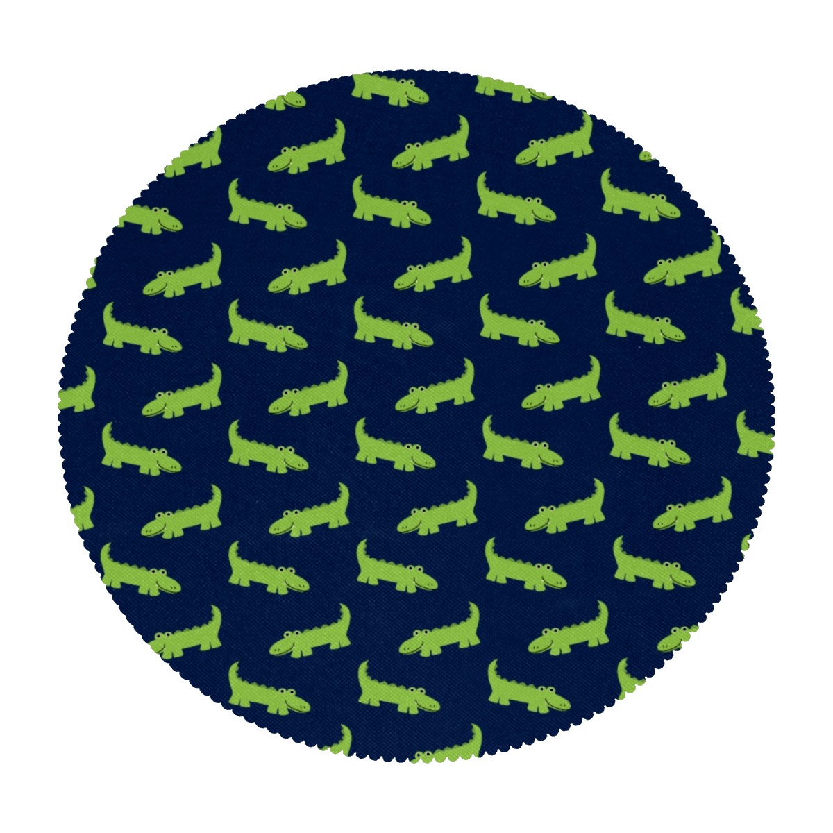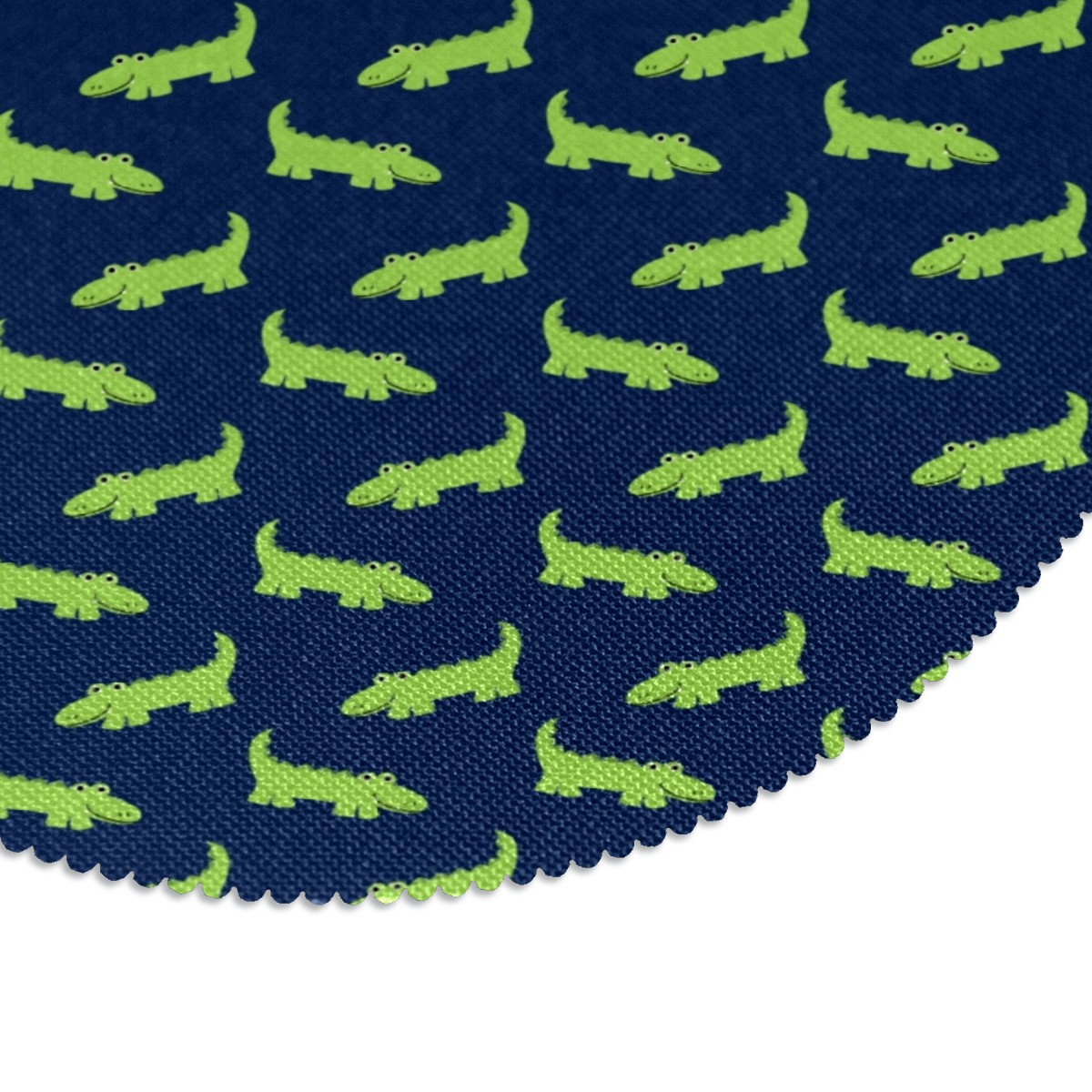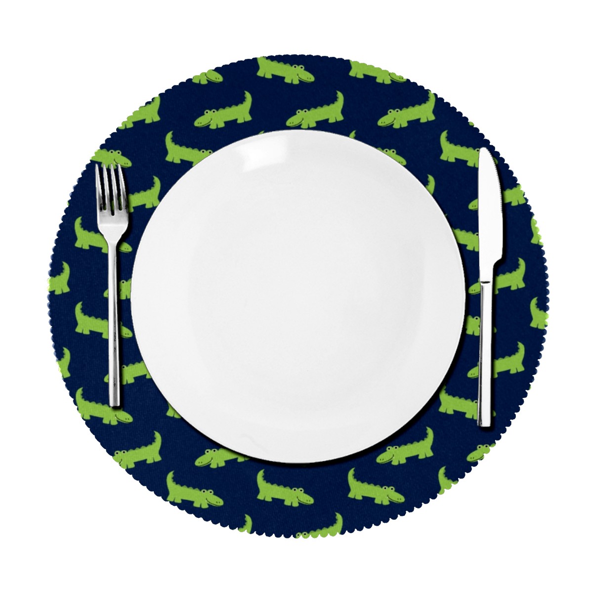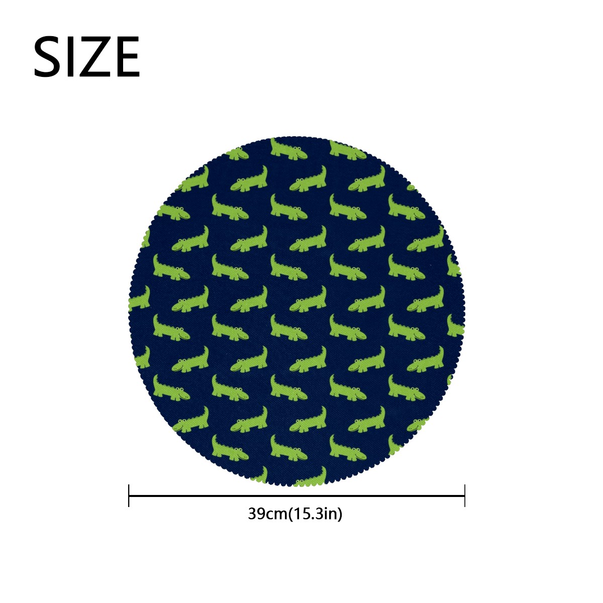 Round Placemats Set of 1 Green Smiling Alligators Pattern Dining Table Mats Kitchen Waterproof Washable Place Mats Wipeable Boho Tablemats for Home Decor
