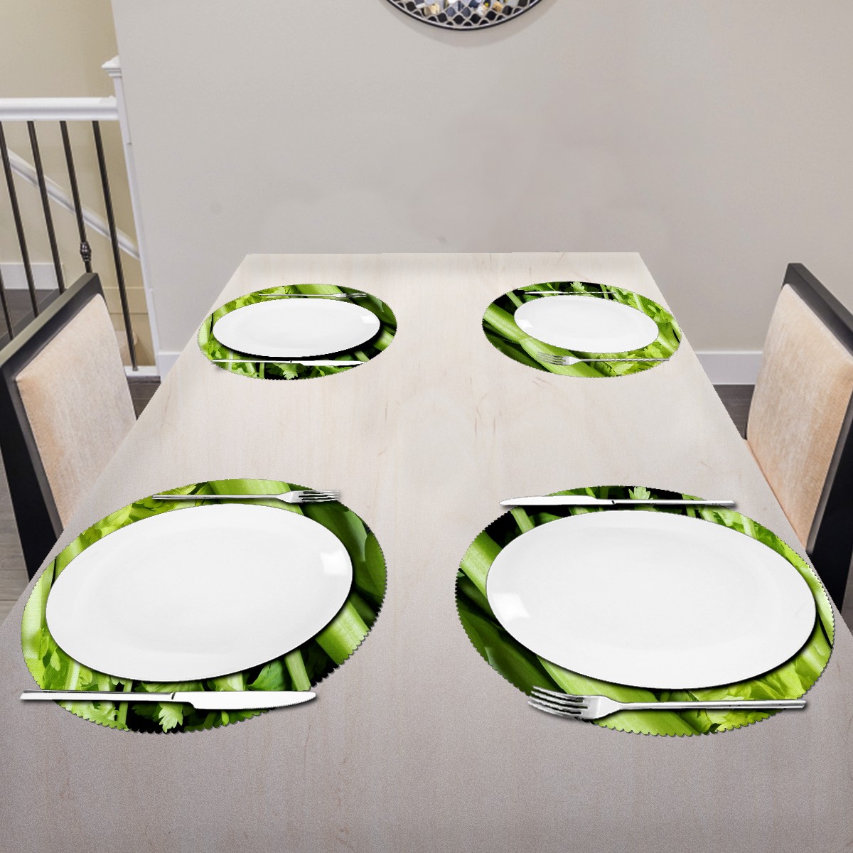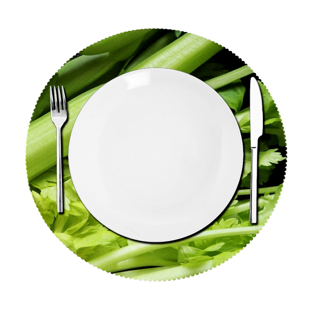Round Placemats Set of 1 Green Celery Vegetable Dining Table Mats Kitchen Waterproof Washable Place Mats Wipeable Boho Tablemats for Home Decor