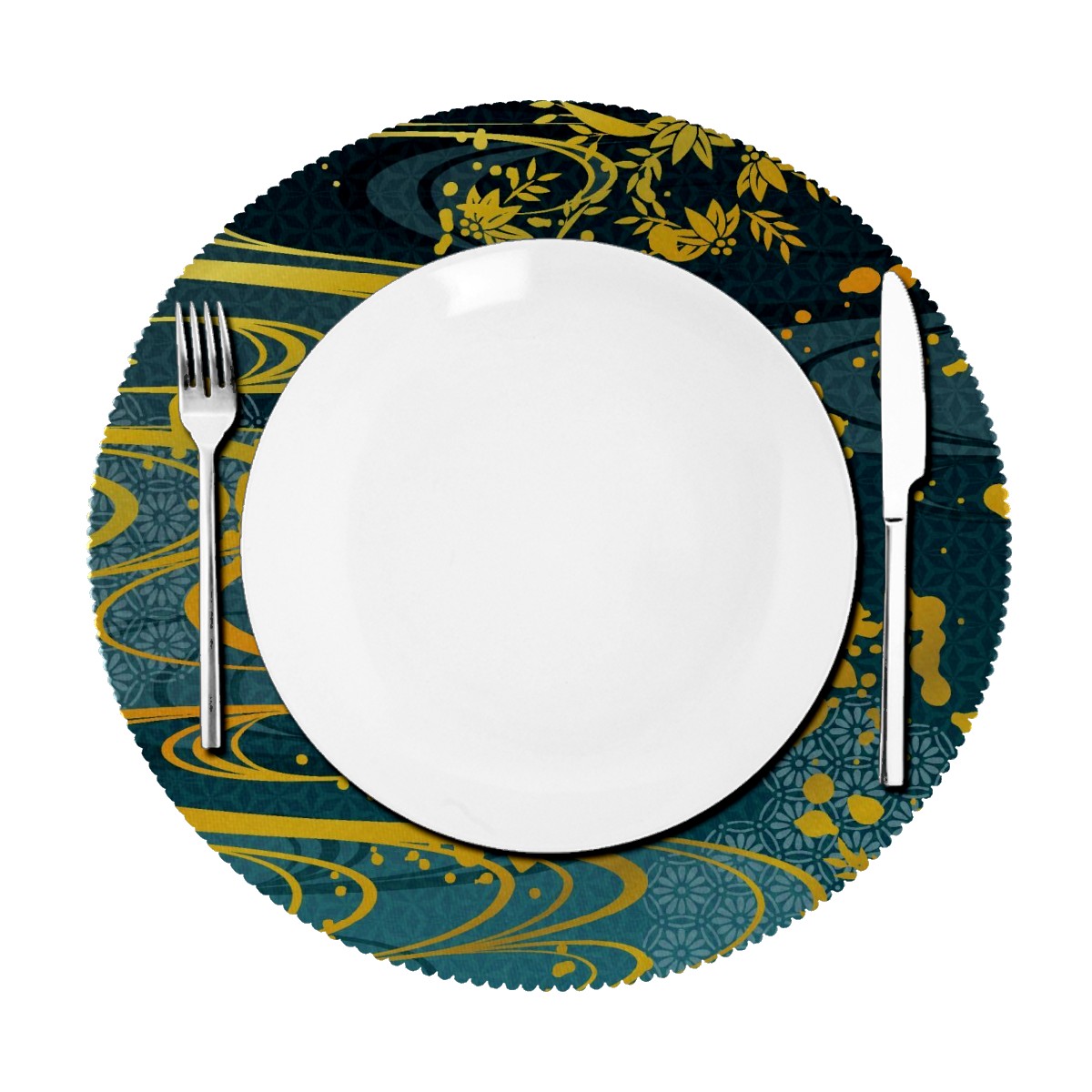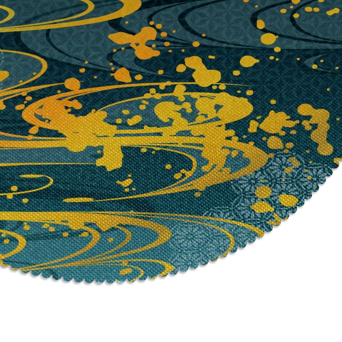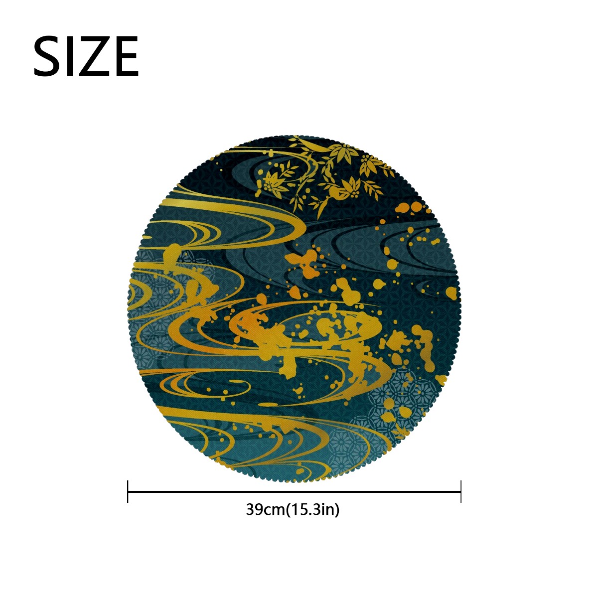 Round Placemats Set of 1 Golden Swirl Japanese Leaves Pattern Dining Table Mats Kitchen Waterproof Washable Place Mats Wipeable Boho Tablemats for Home Decor