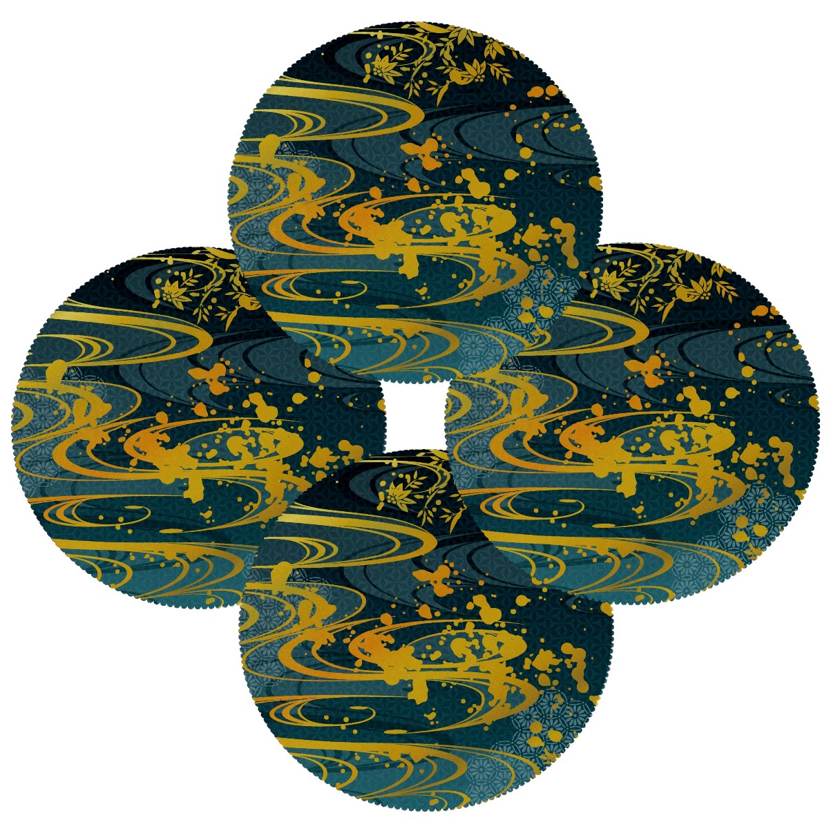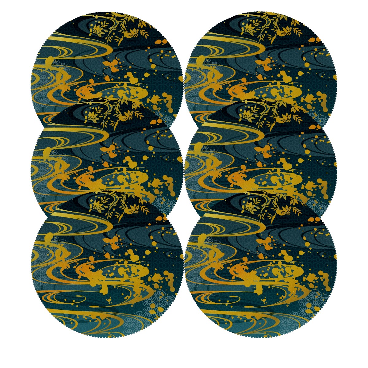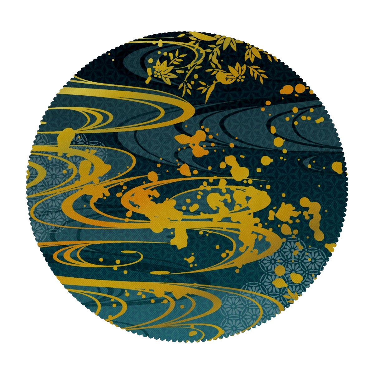 Round Placemats Set of 1 Golden Swirl Japanese Leaves Pattern Dining Table Mats Kitchen Waterproof Washable Place Mats Wipeable Boho Tablemats for Home Decor