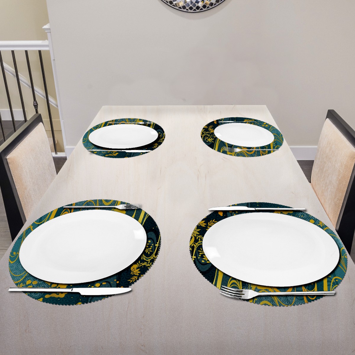 • <p><b>The fashionable design with this table placemat will makes your table look more outstanding and pretty.</b></p> <p><b>Diameter:</b> 15.4 In / 39 cm.</p> <p><b>Packing:</b> 1 PCS/4 PCS/6 PCS.</p> <p><b>Care Instructions:</b></p> <p>1.Wash with water and dry in a cool place. If there are stains on the placemat, you can wipe it with a damp sponge or damp cloth.</p> <p>2.Do not machine wash or sterilize in a microwave oven.</p> <p>3.Note: The package has been rolled up. If you encounter crease problems, please immerse it in warm water and take it out and place a flat object on the mat. The crease will disappear.</p> <p><b>Quality you can trust:</b></p> <p><b>1.Material:High Quality Polyester.</b></p> <p>2.Environmental protection material, no pollution, can be cleaned directly, non-slip, heat-resistant.</p> <p>3.Durable, no deformation,not fade,wrinkle resistant,wear resistant,easy to clean.</p> <p>4.Personalized design. One-Side High Quality Printing Technology.Vivid color and clear images.&nbsp;</p> <p><b>Home Decoration: Suitable for kitchen table,dinner hall,restaurant,hotel,business office,cafe,BBQ,picnic,party,etc.Both practical and decorative.</b></p> <p><b>Best Birthday/Christmas/Halloween/easter/thanksgiving/wedding/engagement anniversary gift to your baby/children/kids/family/boys/girls/parents/friends/girlfriend/boyfriend/wife, etc.</b></p>