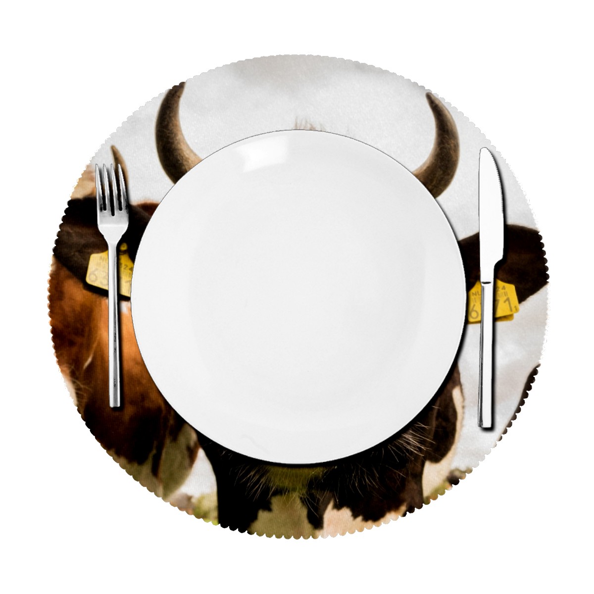 Round Placemats Set of 1 Farm Cow Print Dining Table Mats Kitchen Waterproof Washable Place Mats Wipeable Boho Tablemats for Home Decor