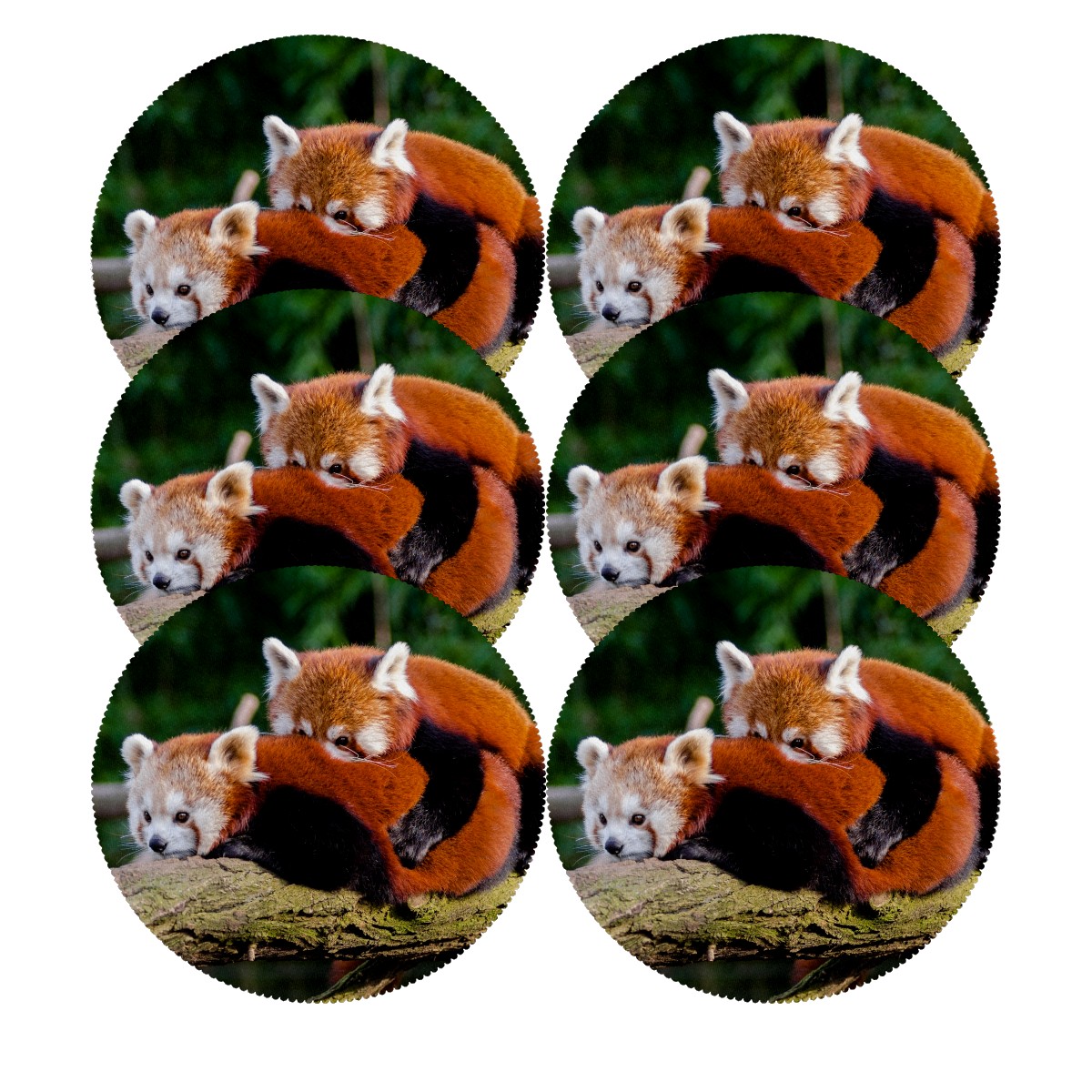 Round Placemats Set of 1 Cute Raccoon Mom And Son Dining Table Mats Kitchen Waterproof Washable Place Mats Wipeable Boho Tablemats for Home Decor