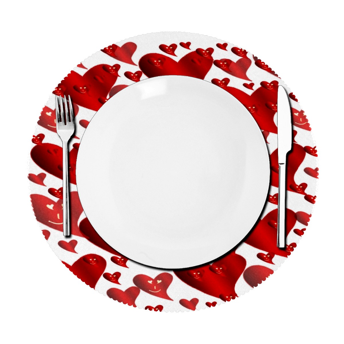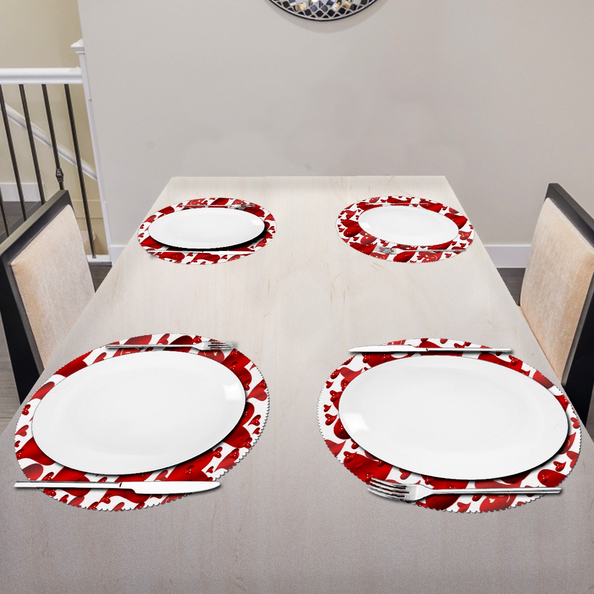 Round Placemats Set of 1 Cute Red Love Heart Valentine Day Dining Table Mats Kitchen Waterproof Washable Place Mats Wipeable Boho Tablemats for Home Decor
