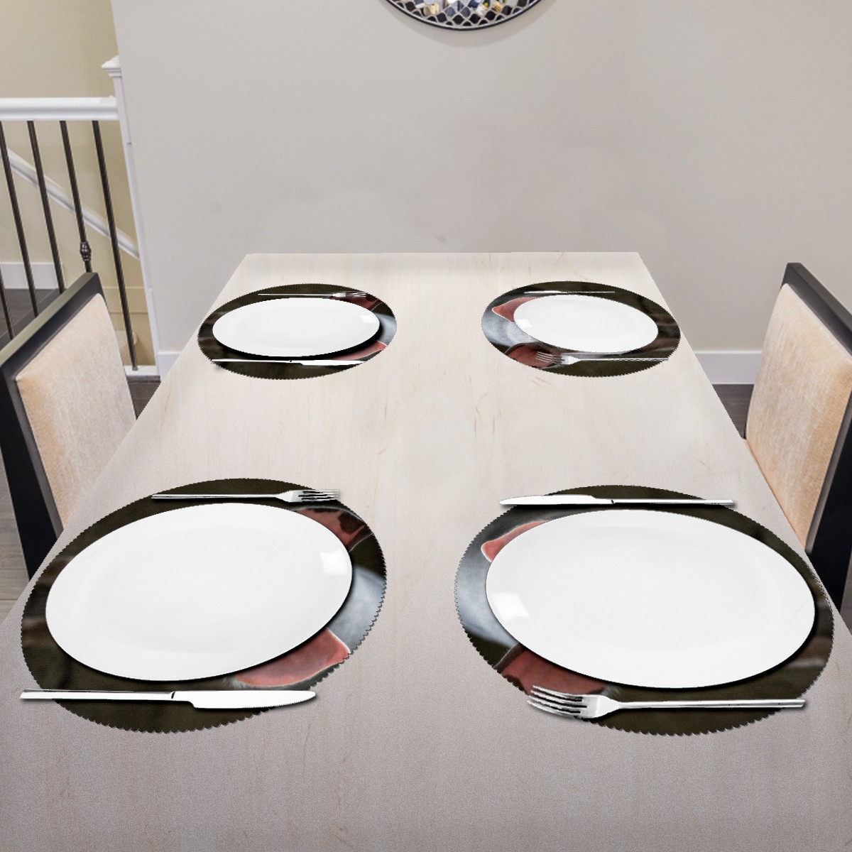 • <p><b>The fashionable design with this table placemat will makes your table look more outstanding and pretty.</b></p> <p><b>Diameter:</b> 15.4 In / 39 cm.</p> <p><b>Packing:</b> 1 PCS/4 PCS/6 PCS.</p> <p><b>Care Instructions:</b></p> <p>1.Wash with water and dry in a cool place. If there are stains on the placemat, you can wipe it with a damp sponge or damp cloth.</p> <p>2.Do not machine wash or sterilize in a microwave oven.</p> <p>3.Note: The package has been rolled up. If you encounter crease problems, please immerse it in warm water and take it out and place a flat object on the mat. The crease will disappear.</p> <p><b>Quality you can trust:</b></p> <p><b>1.Material:High Quality Polyester.</b></p> <p>2.Environmental protection material, no pollution, can be cleaned directly, non-slip, heat-resistant.</p> <p>3.Durable, no deformation,not fade,wrinkle resistant,wear resistant,easy to clean.</p> <p>4.Personalized design. One-Side High Quality Printing Technology.Vivid color and clear images.&nbsp;</p> <p><b>Home Decoration: Suitable for kitchen table,dinner hall,restaurant,hotel,business office,cafe,BBQ,picnic,party,etc.Both practical and decorative.</b></p> <p><b>Best Birthday/Christmas/Halloween/easter/thanksgiving/wedding/engagement anniversary gift to your baby/children/kids/family/boys/girls/parents/friends/girlfriend/boyfriend/wife, etc.</b></p>