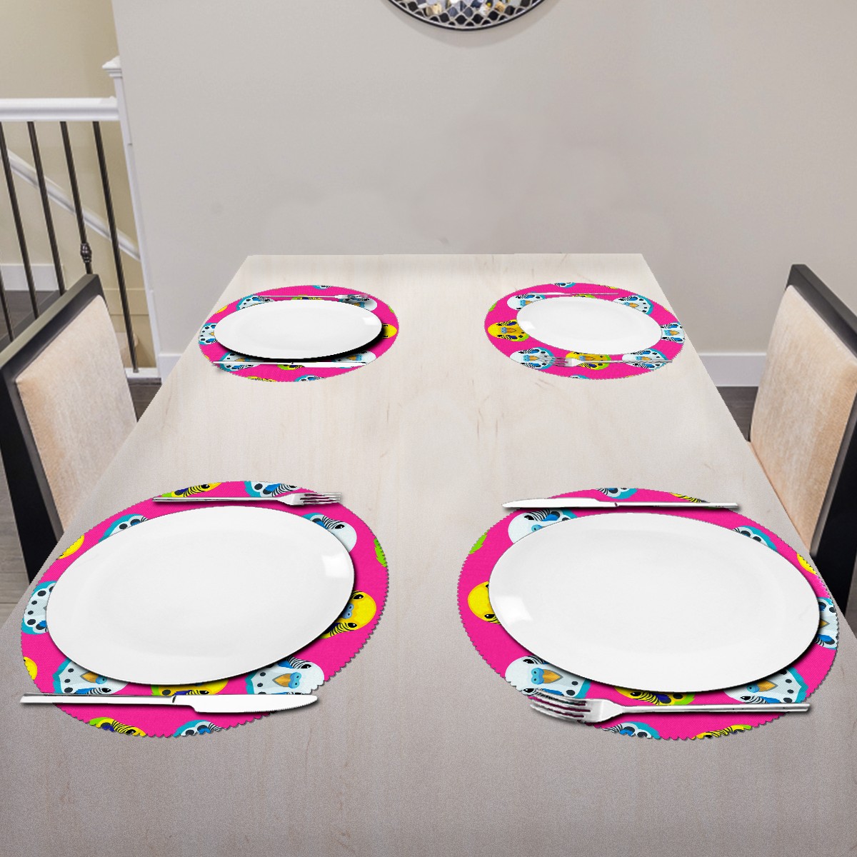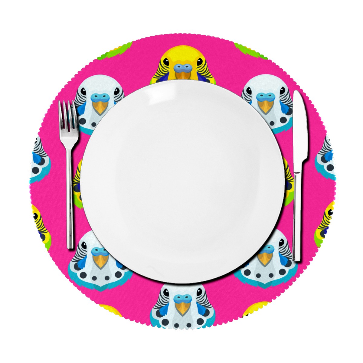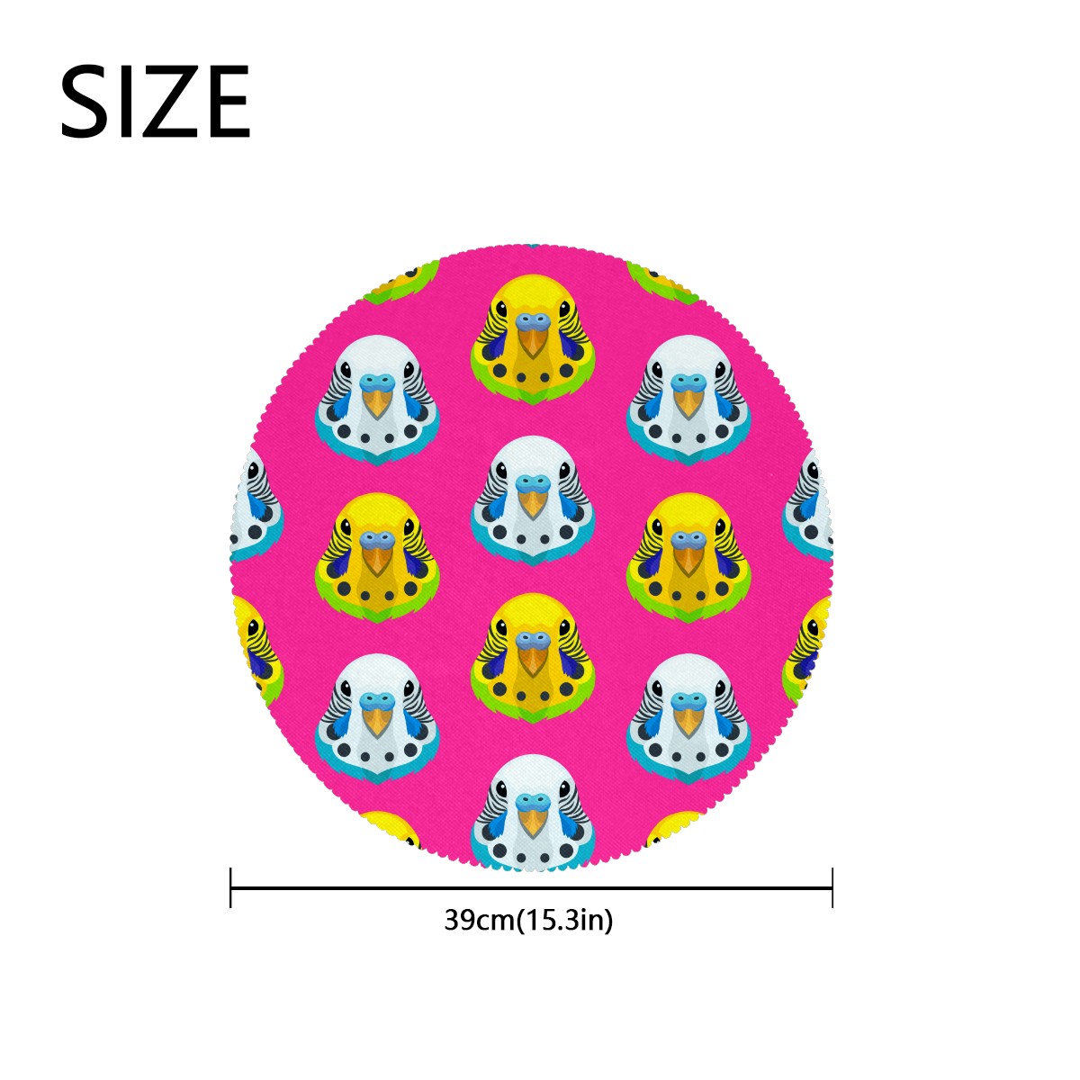 Round Placemats Set of 1 Cute Budgie Parrot Bird Pink Dining Table Mats Kitchen Waterproof Washable Place Mats Wipeable Boho Tablemats for Home Decor