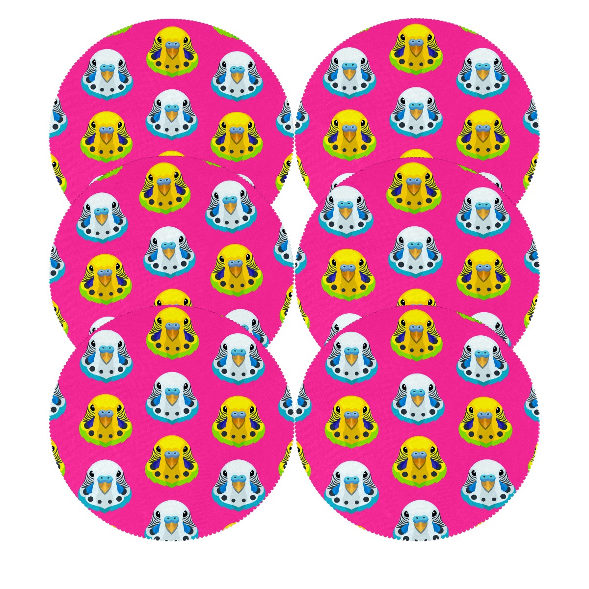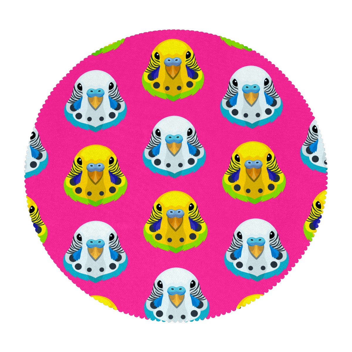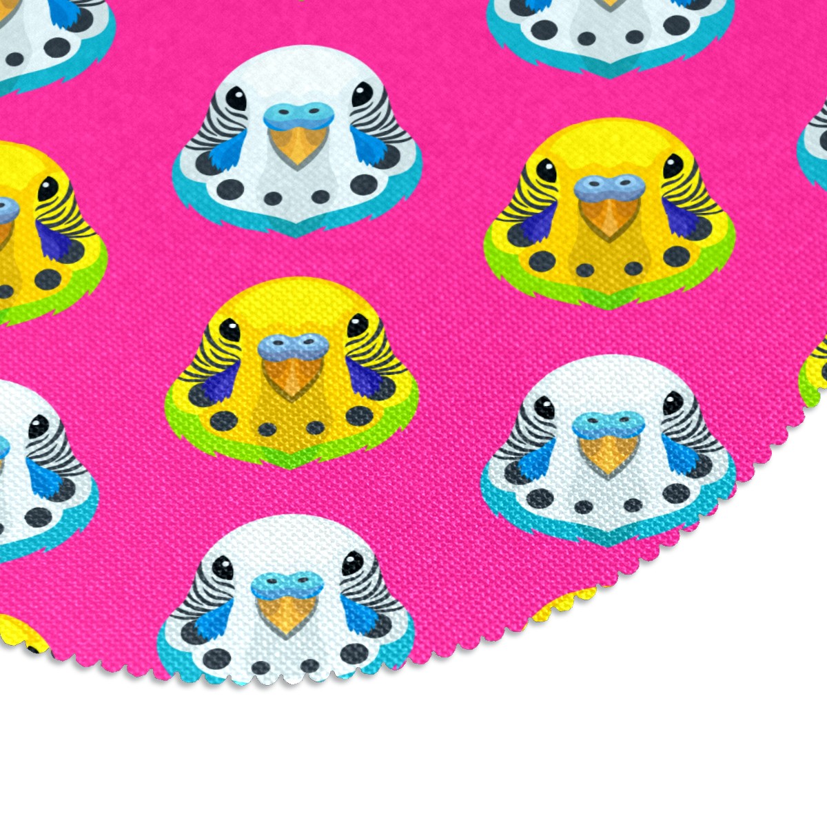 Round Placemats Set of 1 Cute Budgie Parrot Bird Pink Dining Table Mats Kitchen Waterproof Washable Place Mats Wipeable Boho Tablemats for Home Decor
