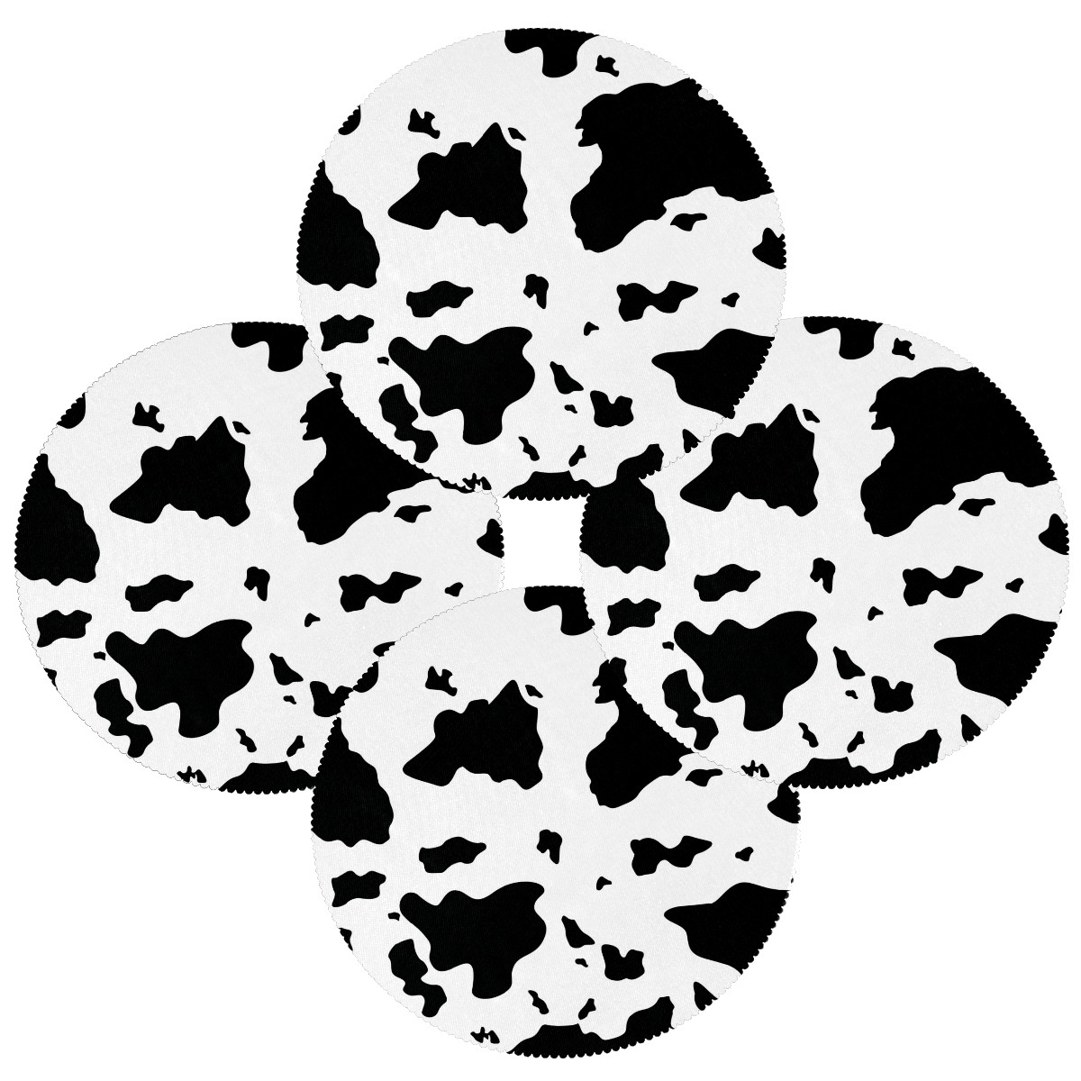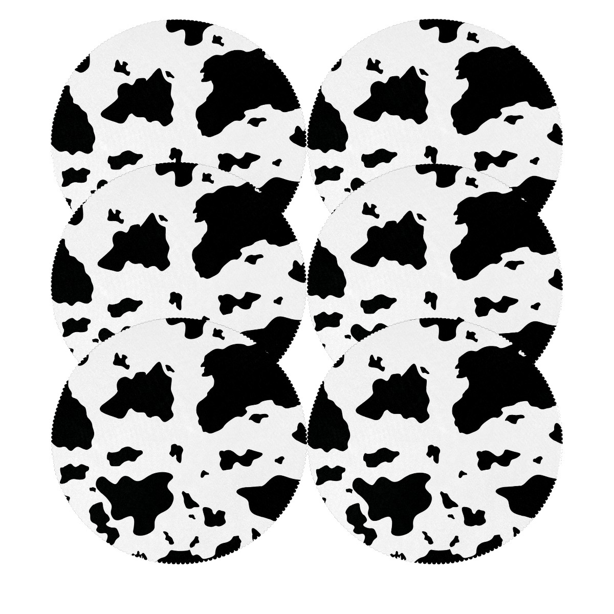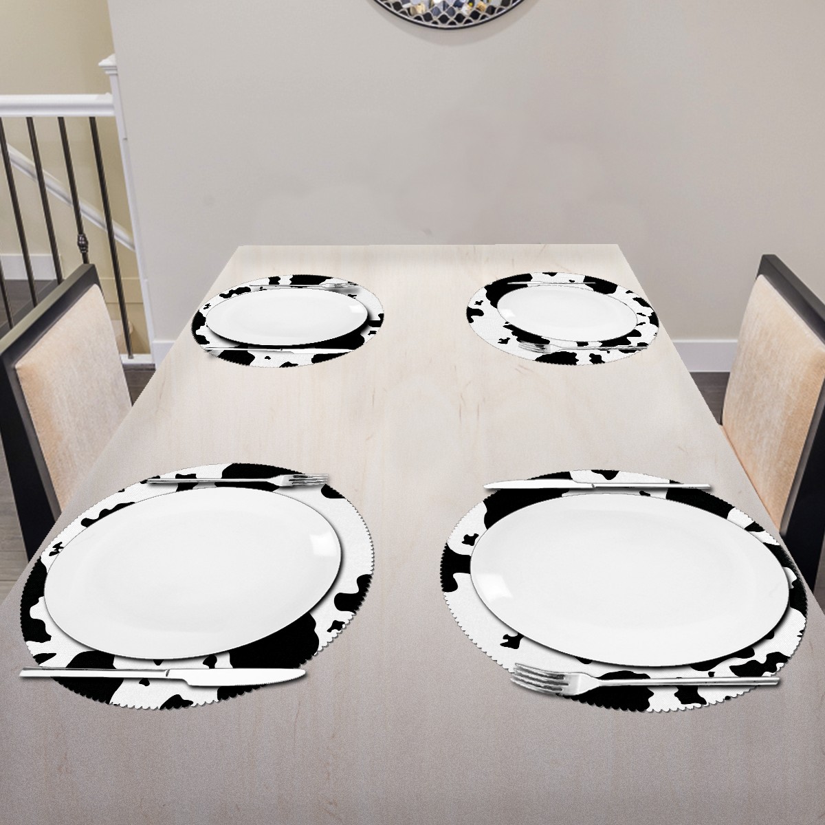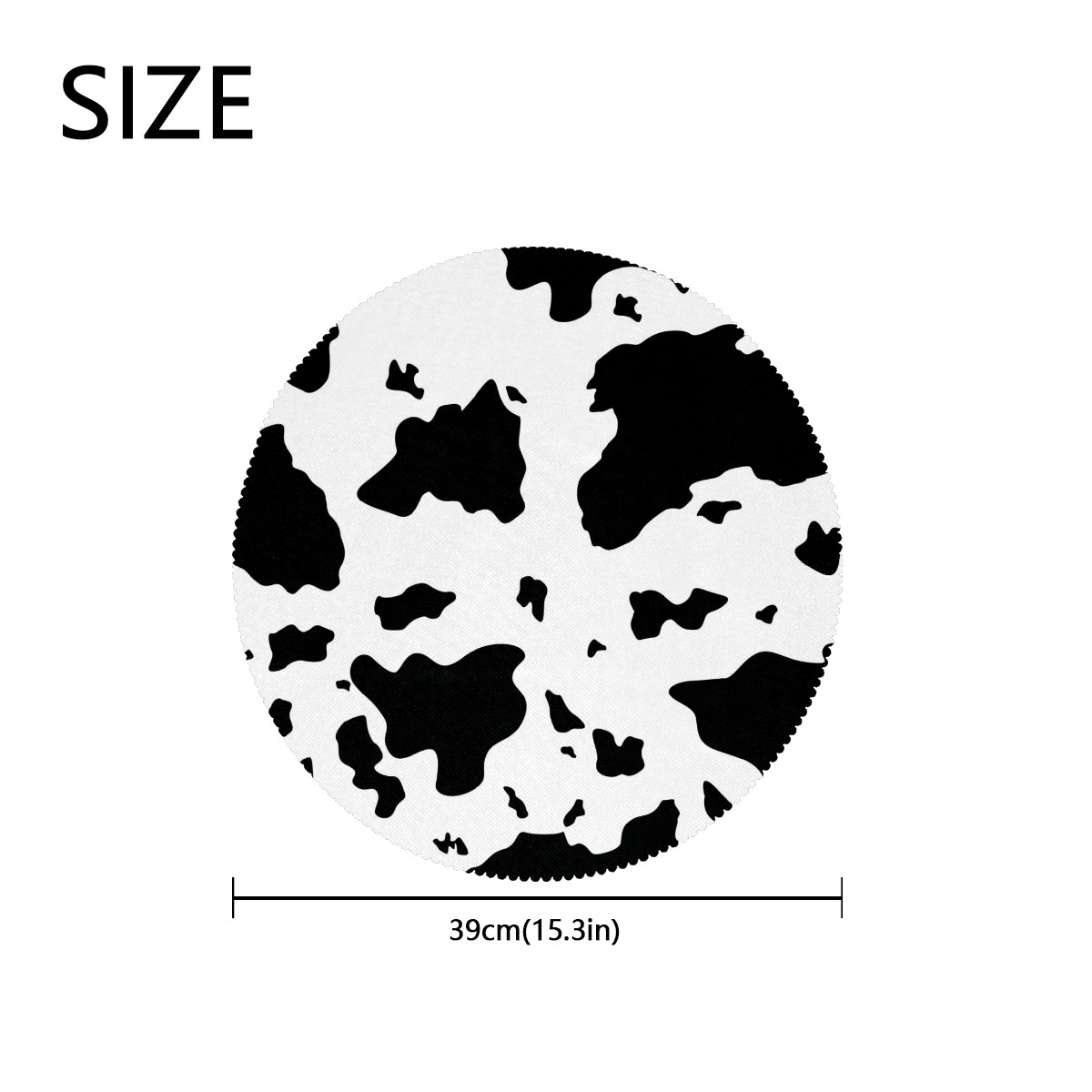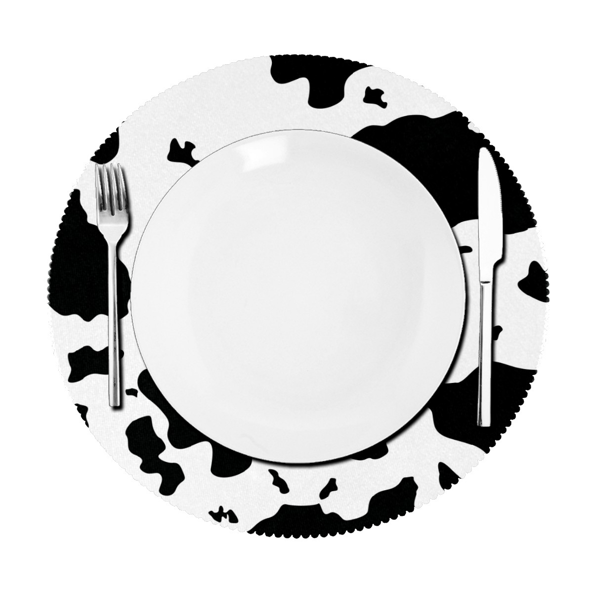 Round Placemats Set of 1 Cow Print Black White Dining Table Mats Kitchen Waterproof Washable Place Mats Wipeable Boho Tablemats for Home Decor