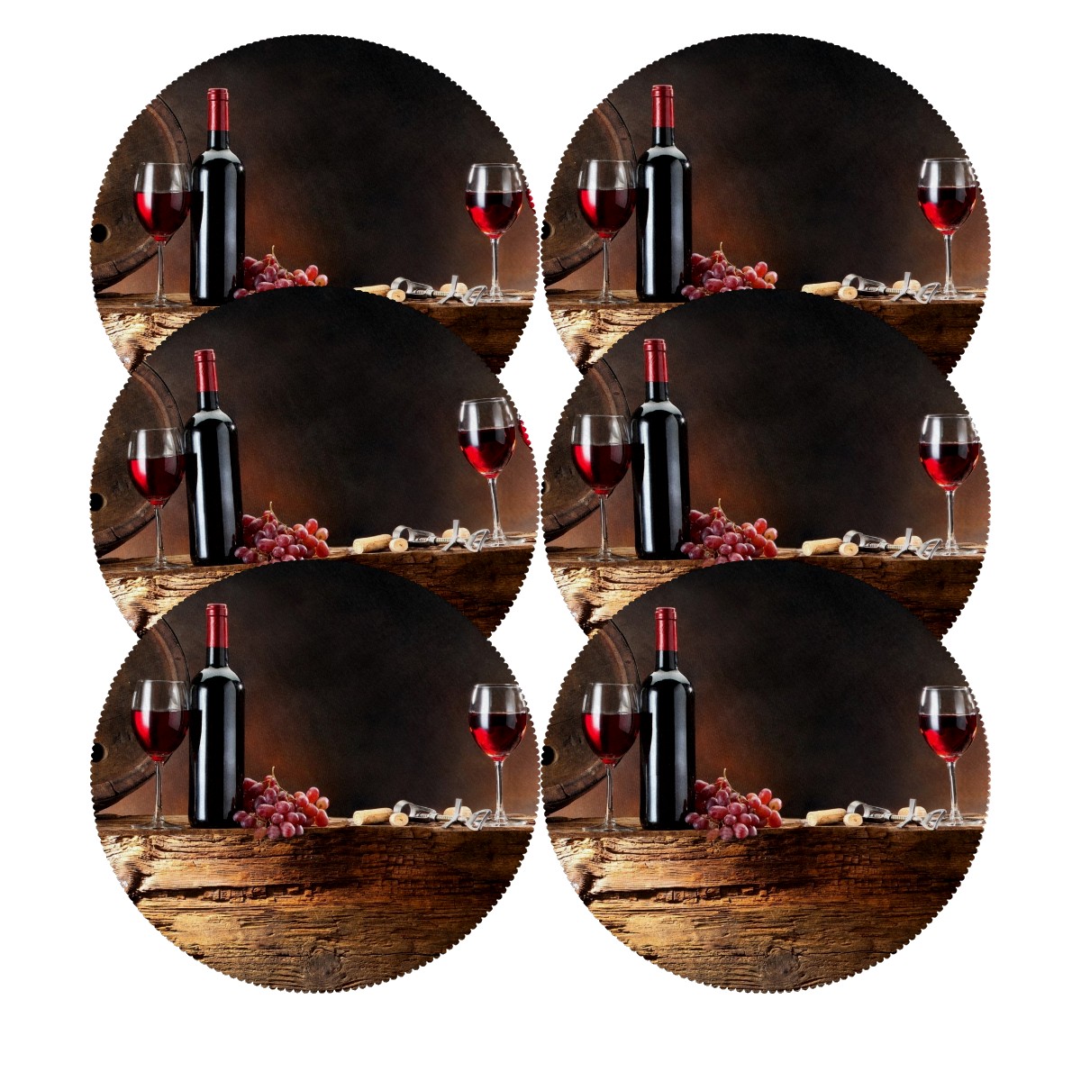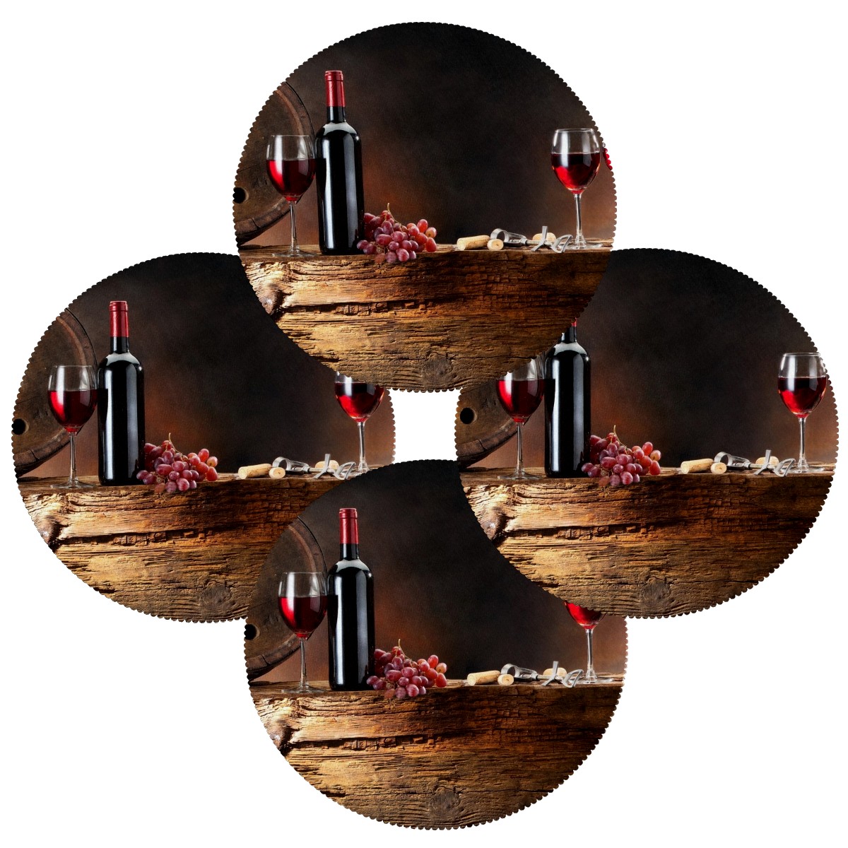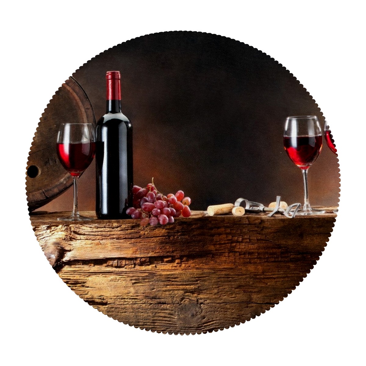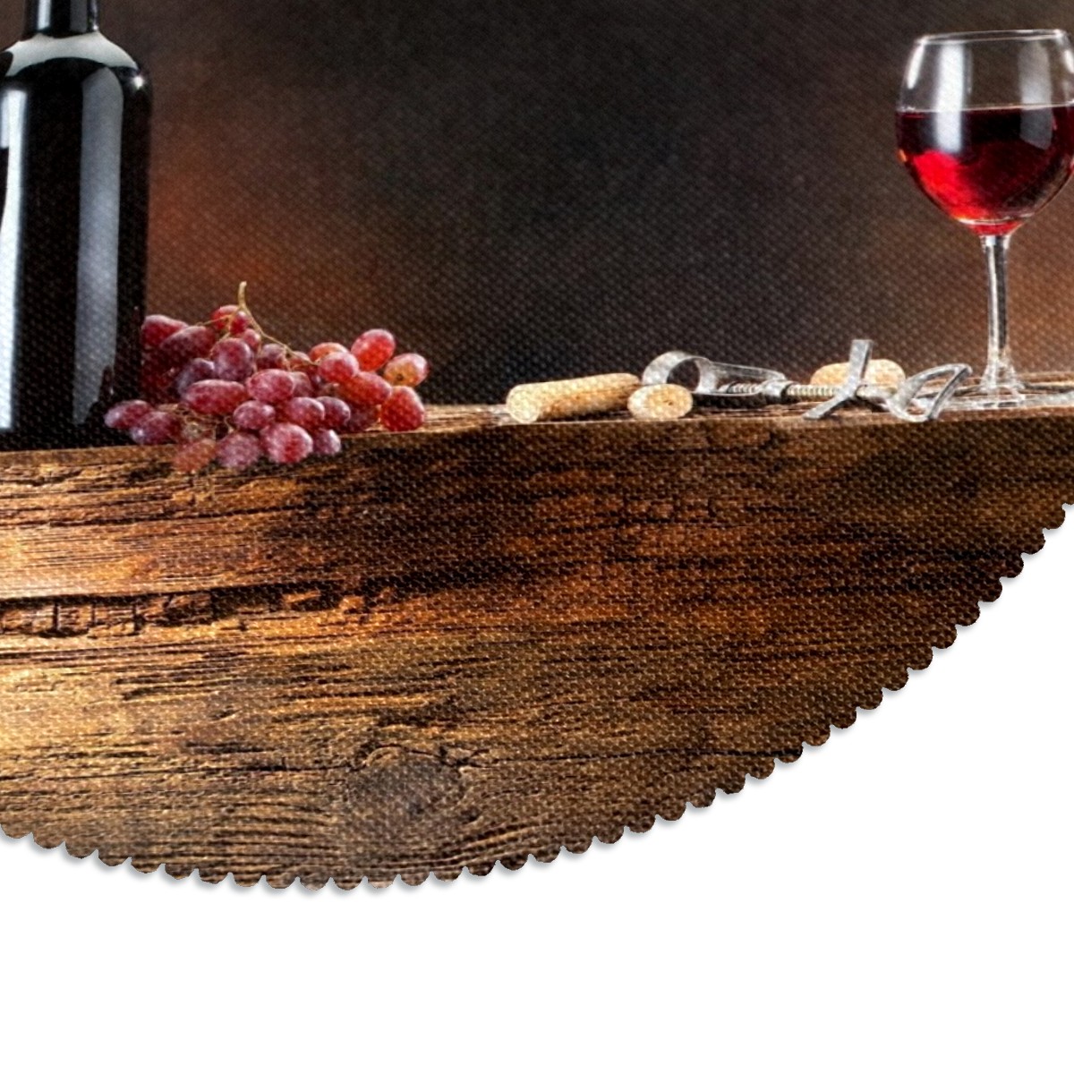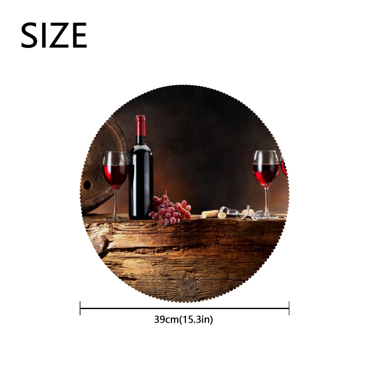 Round Placemats Set of 1 Red Wine Grapes French Dining Table Mats Kitchen Waterproof Washable Place Mats Wipeable Boho Tablemats for Home Decor
